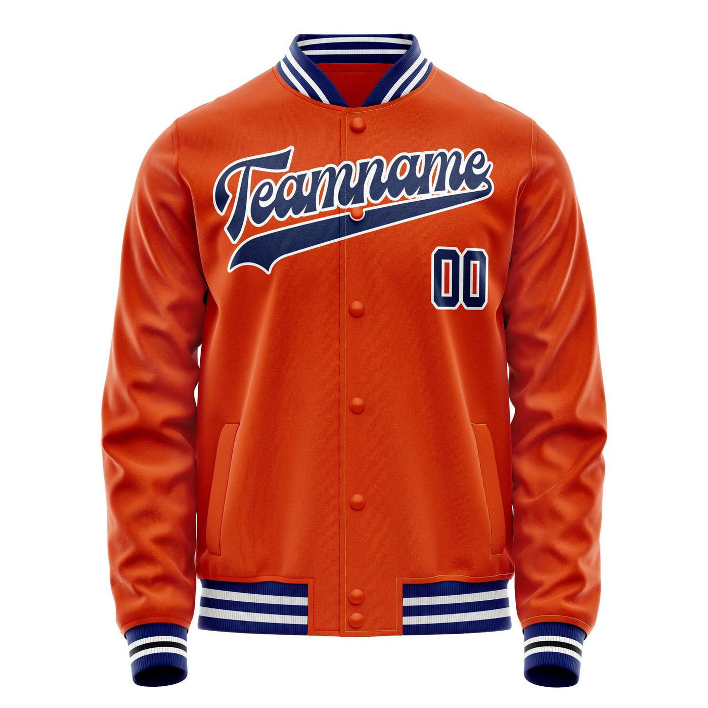 Custom Orange Navy Solid Color Varsity Letterman Jacket