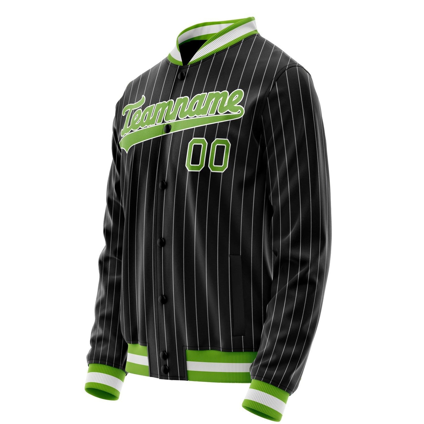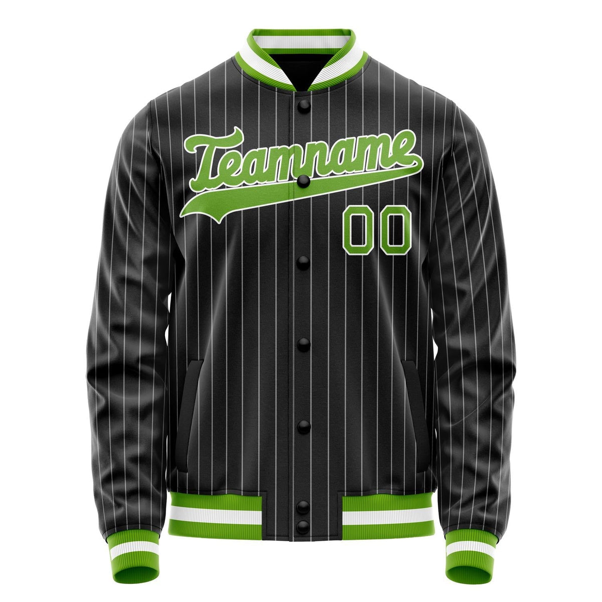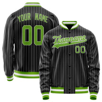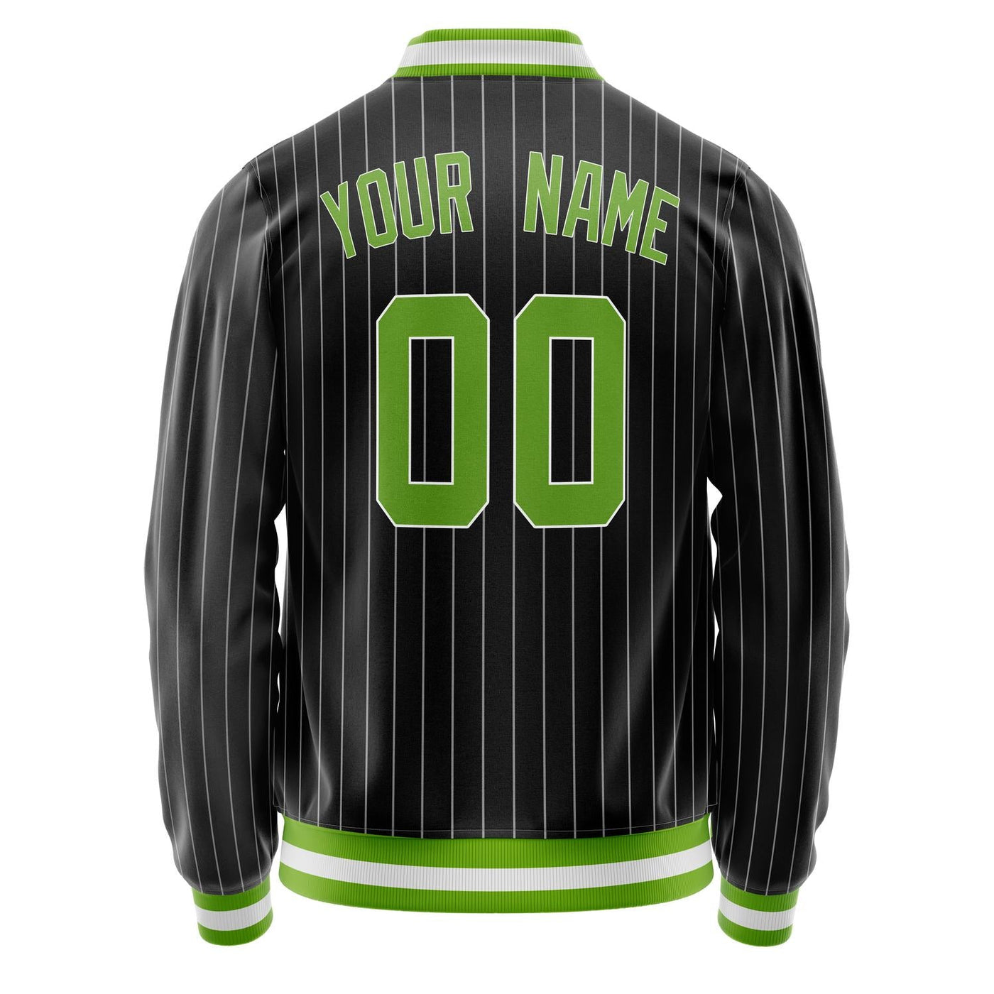 Custom Black Neon-Green Gray Pinstripe Varsity Letterman Jacket