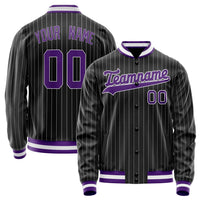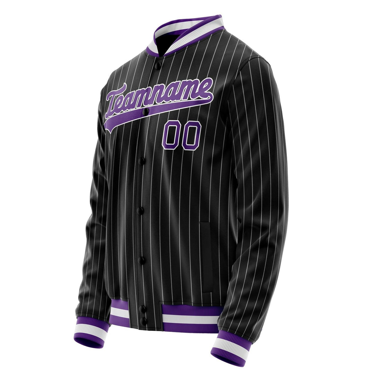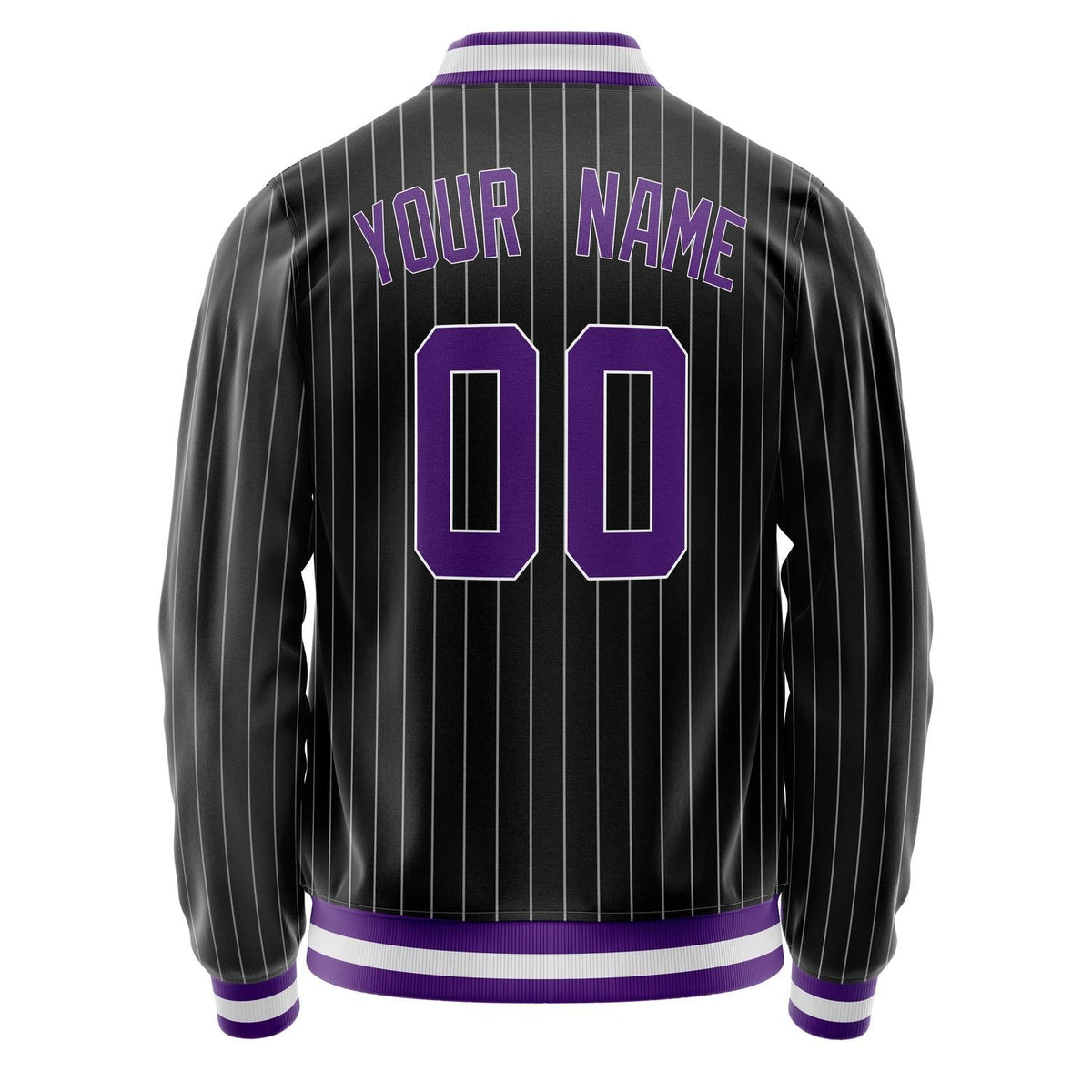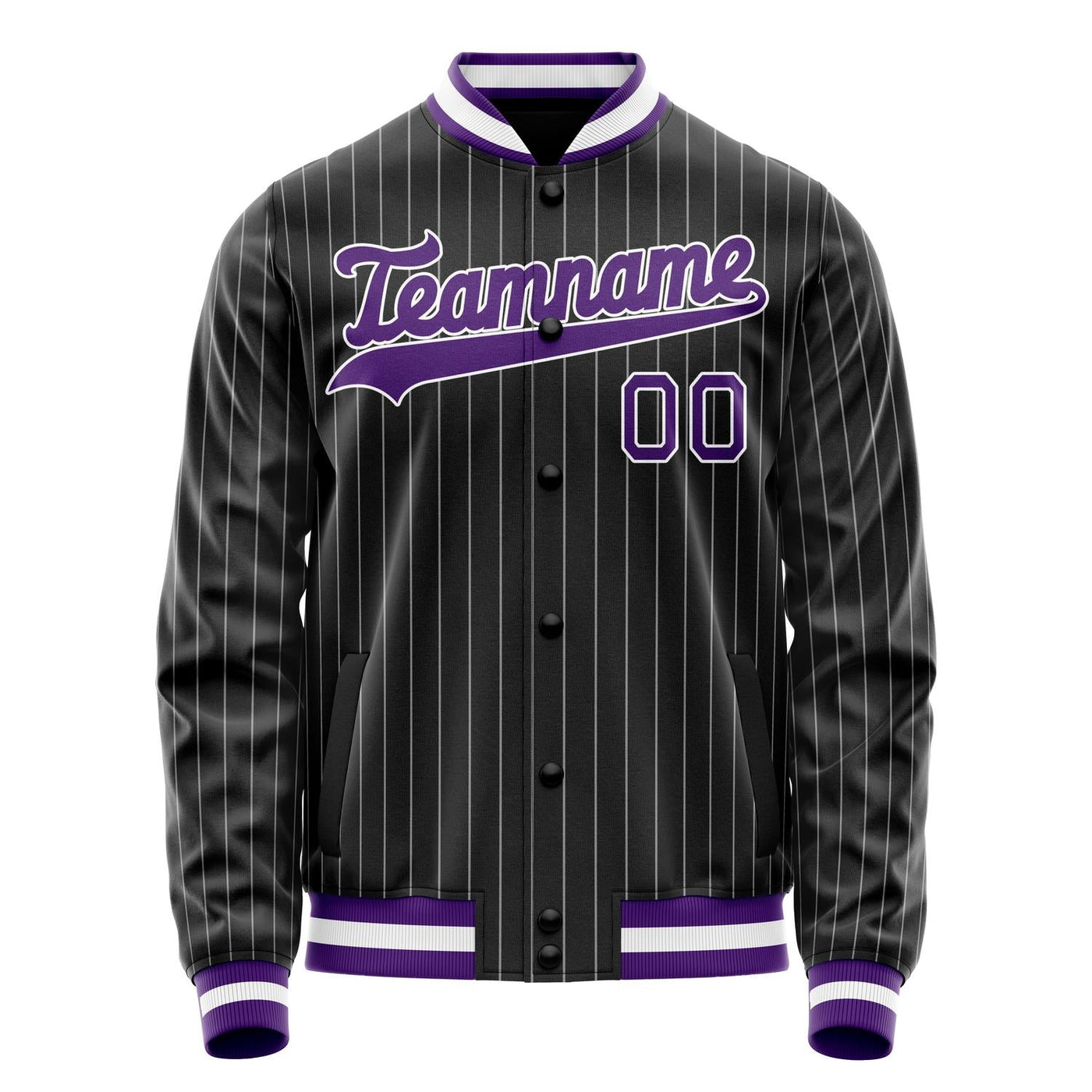 Custom Black Purple Gray Pinstripe Varsity Letterman Jacket