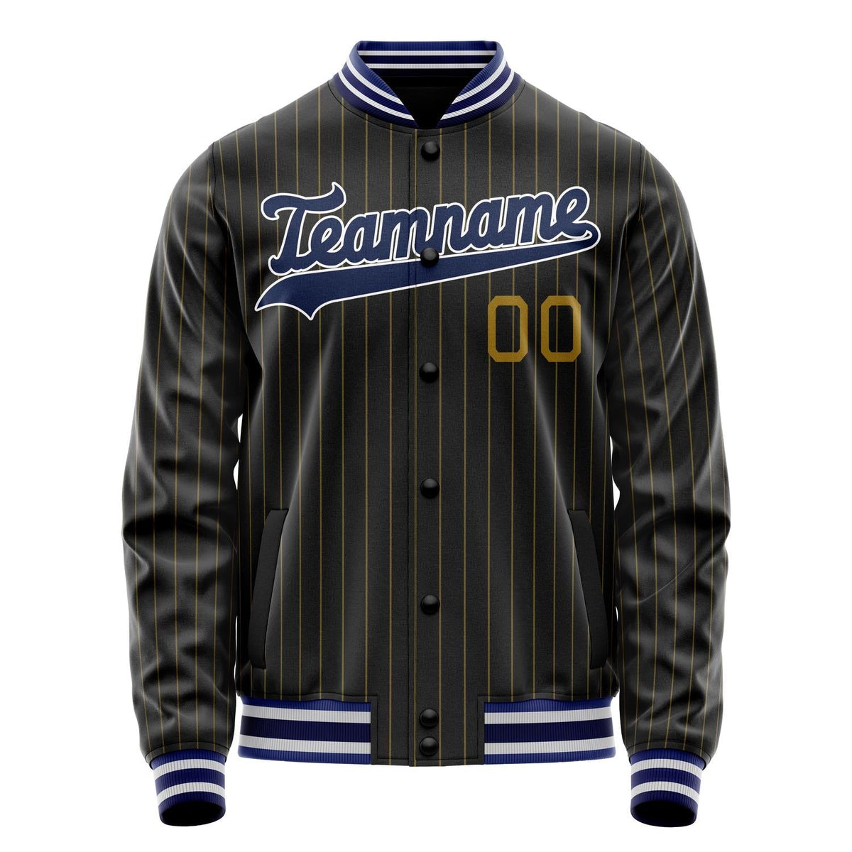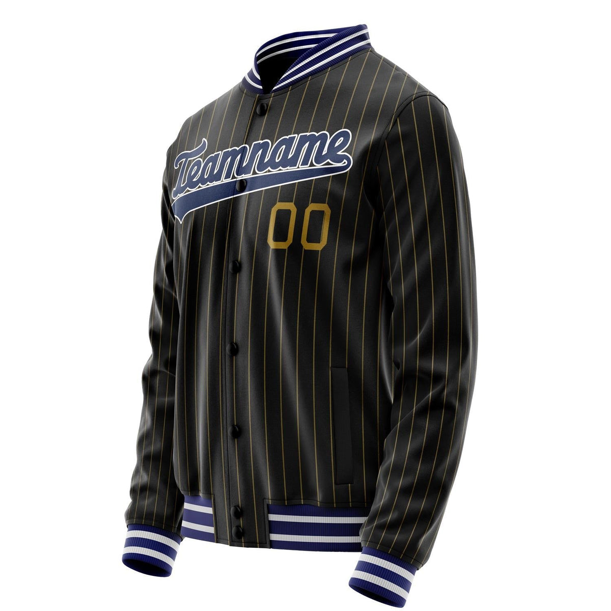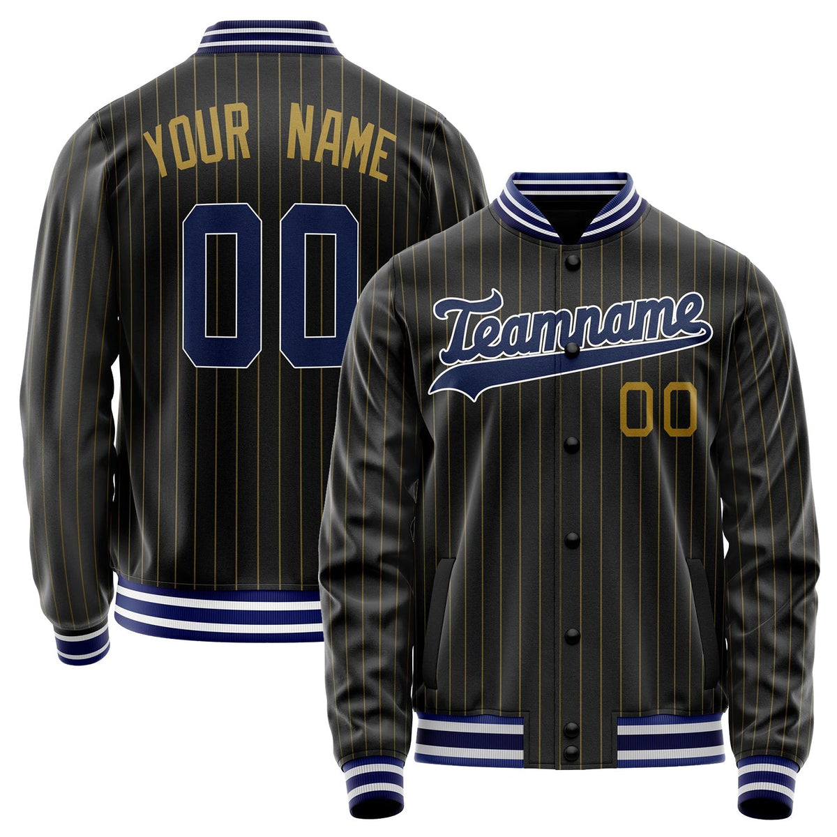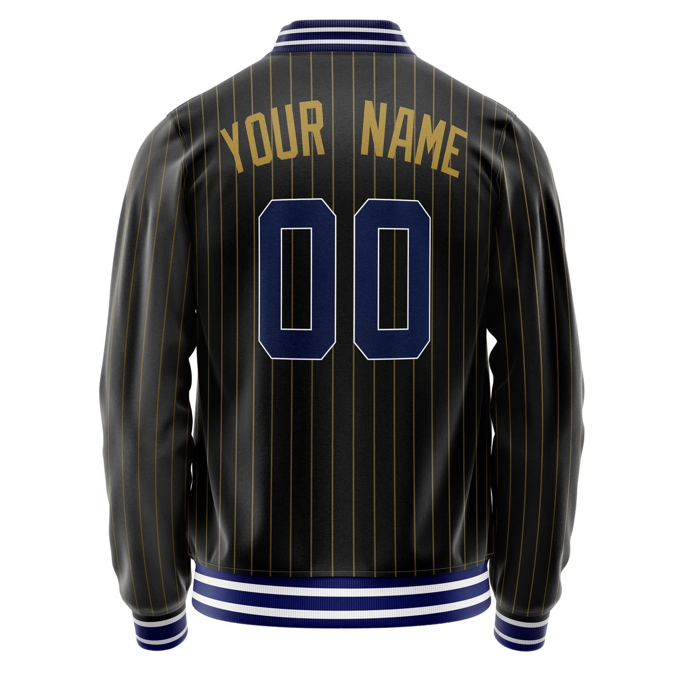 Custom Black Royal Old Gold Pinstripe Varsity Letterman Jacket