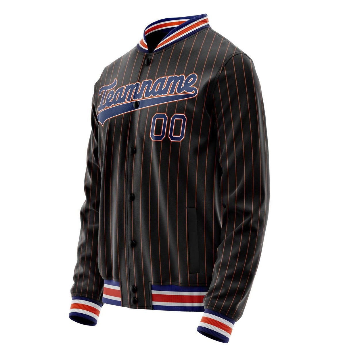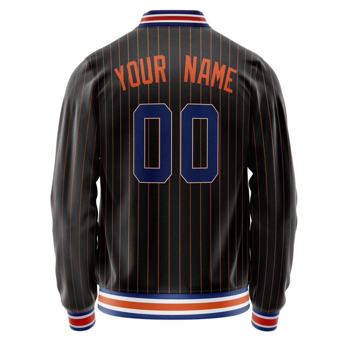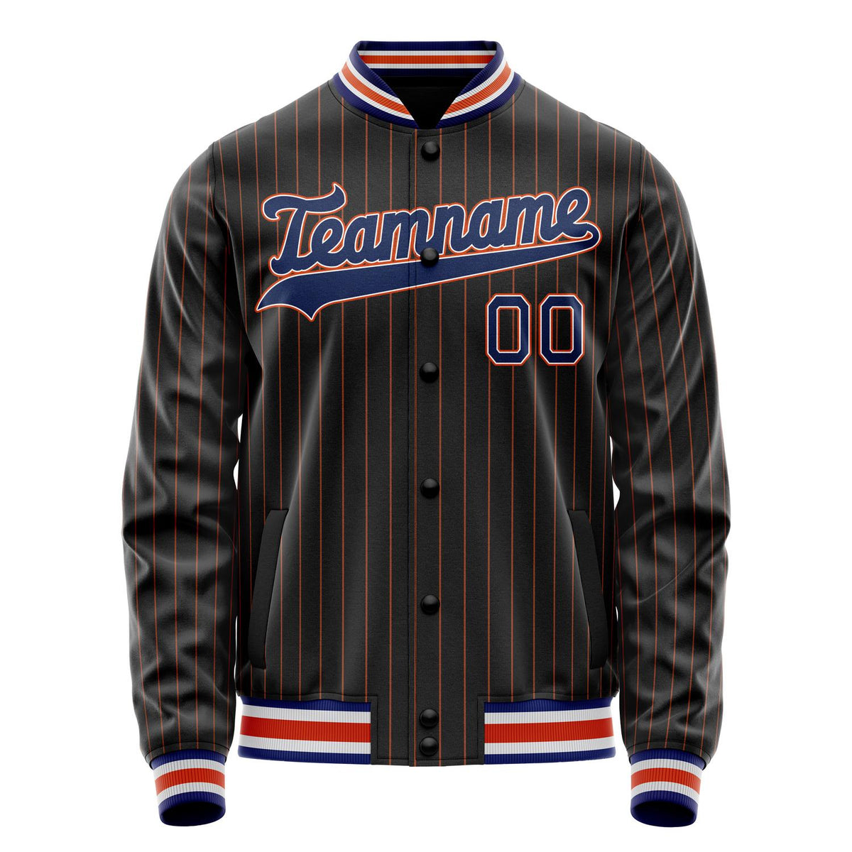 Custom Black Royal Orange Pinstripe Varsity Letterman Jacket