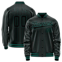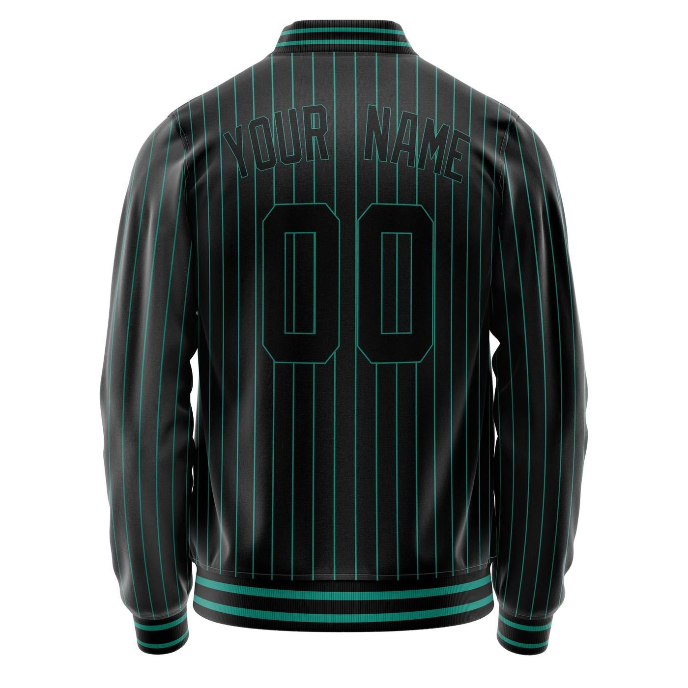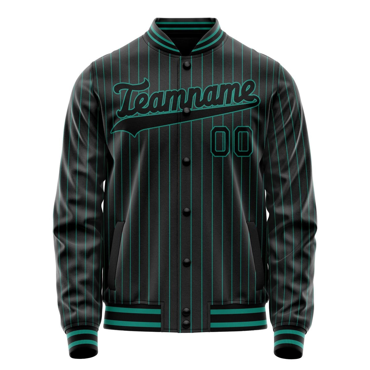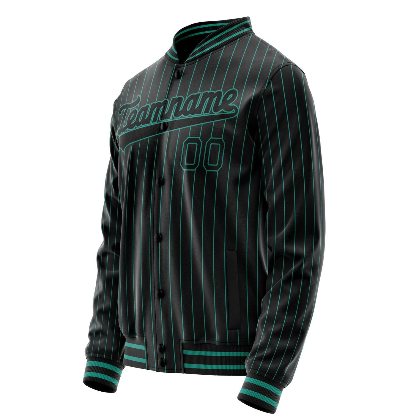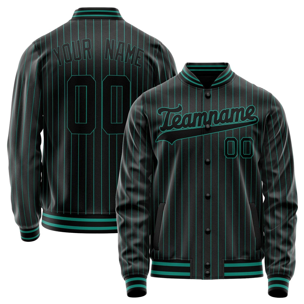Custom Black Teal Teal Pinstripe Varsity Letterman Jacket