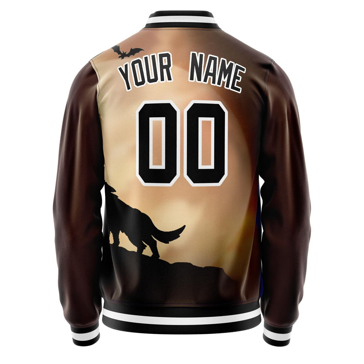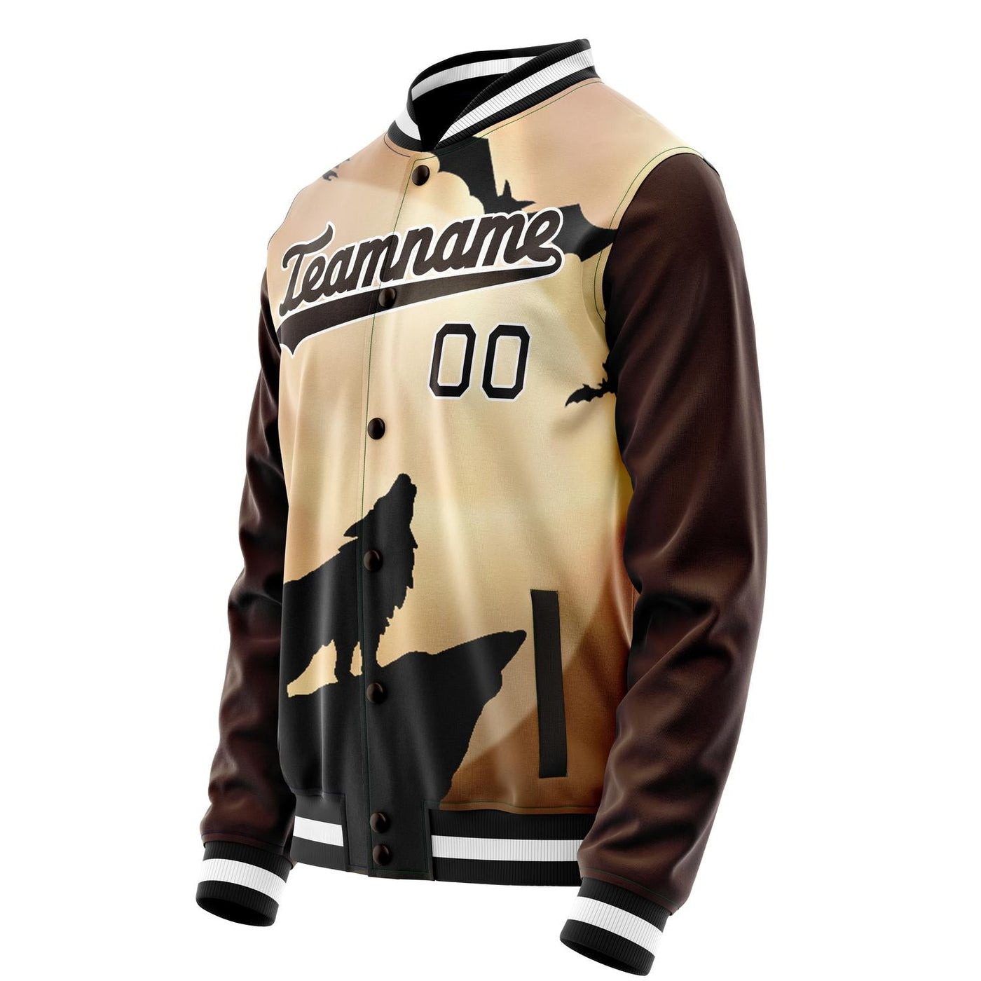 Custom Brown Black Wolf Fullmoon Party 3D Varsity Letterman Jacket