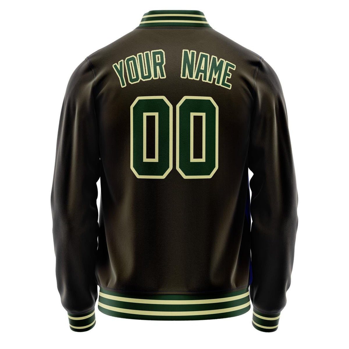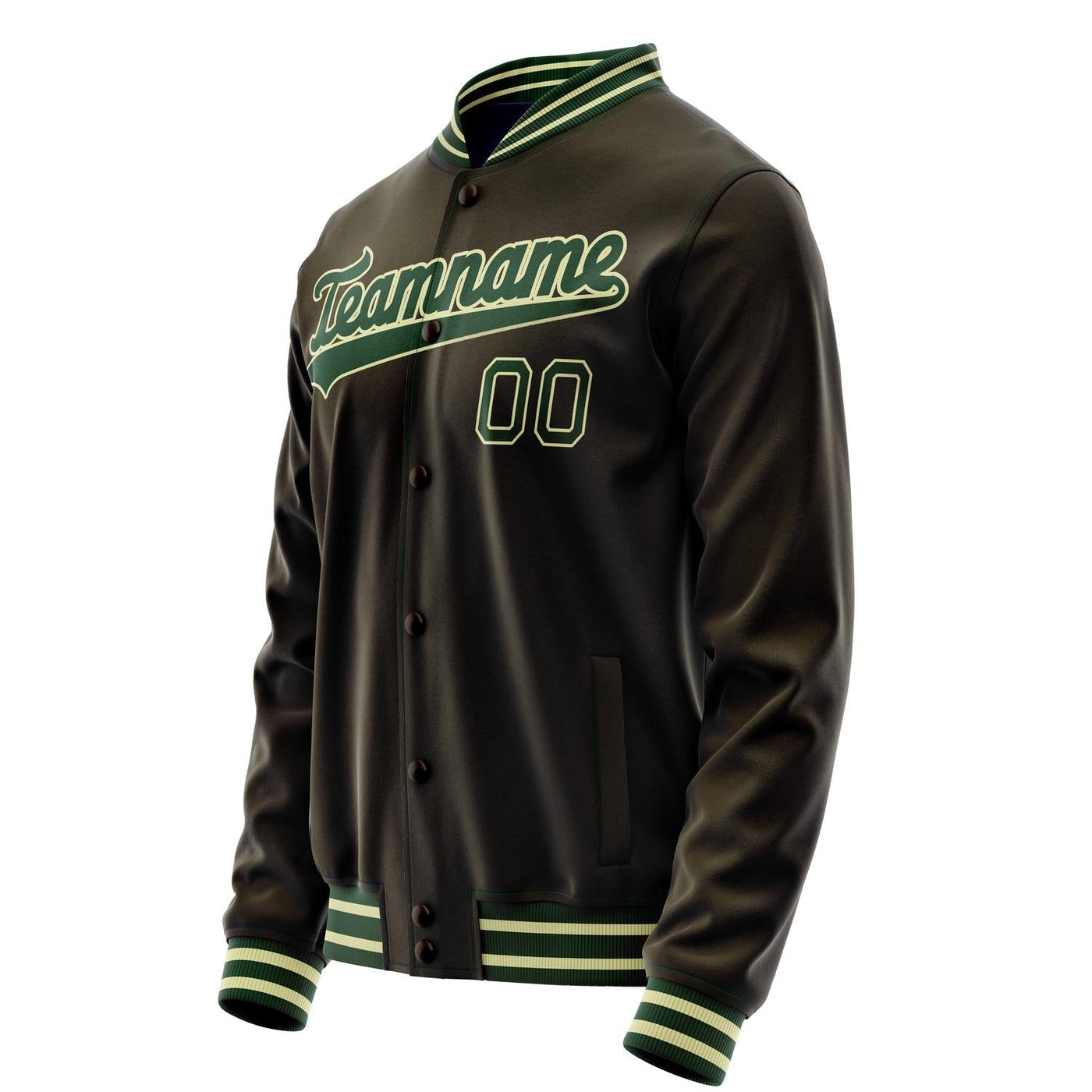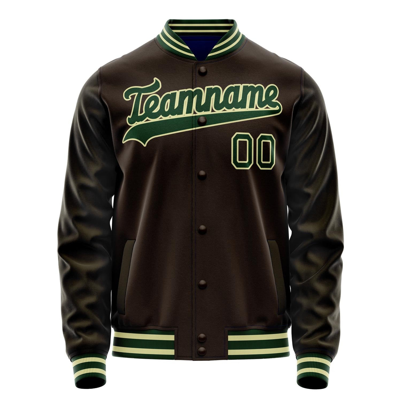 Custom Brown Kelly-Green Solid Color Varsity Letterman Jacket