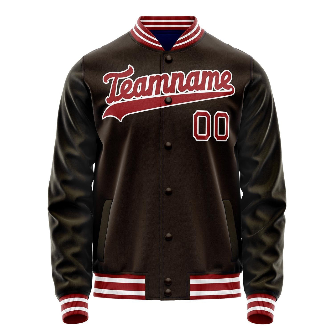 Custom Brown Red Solid Color Varsity Letterman Jacket
