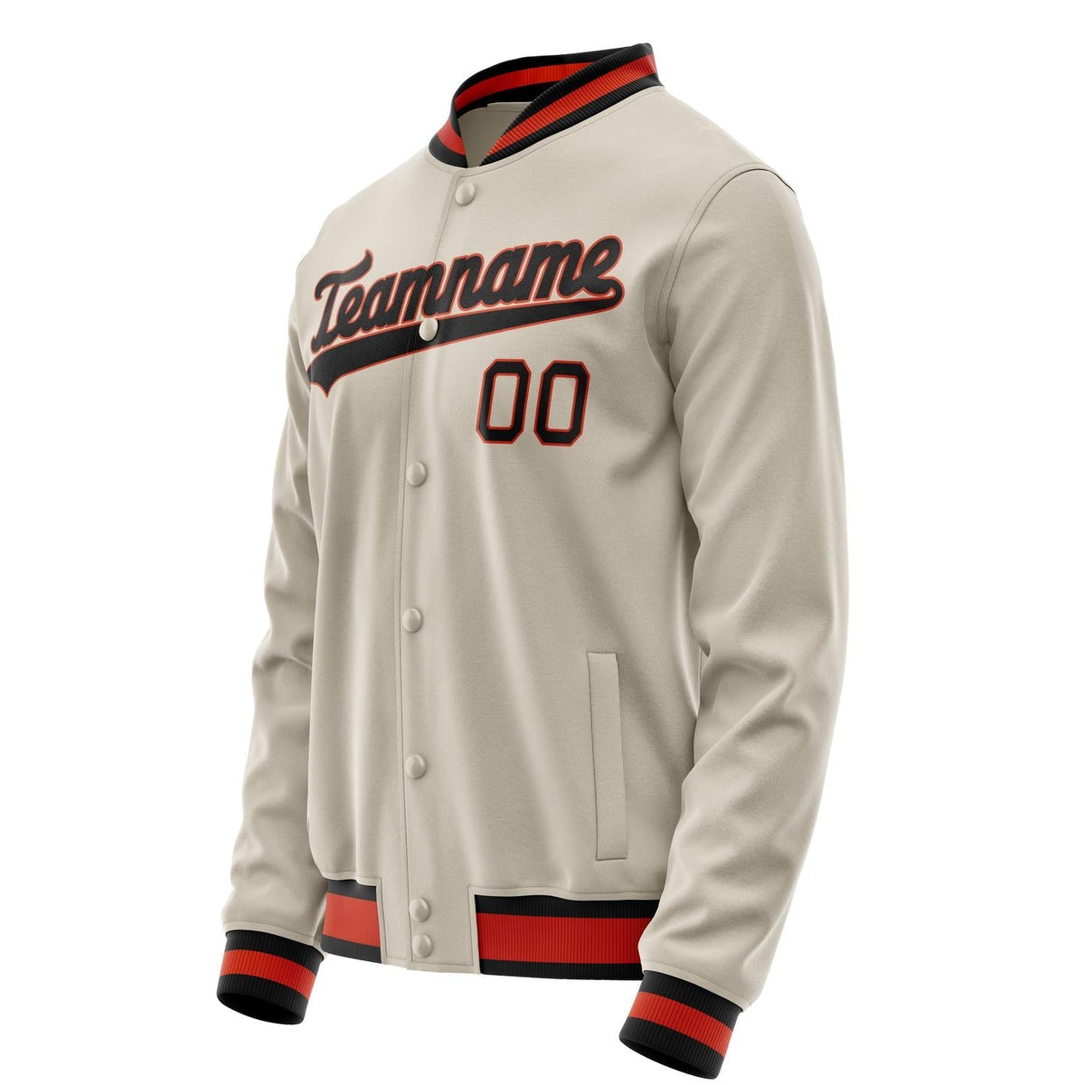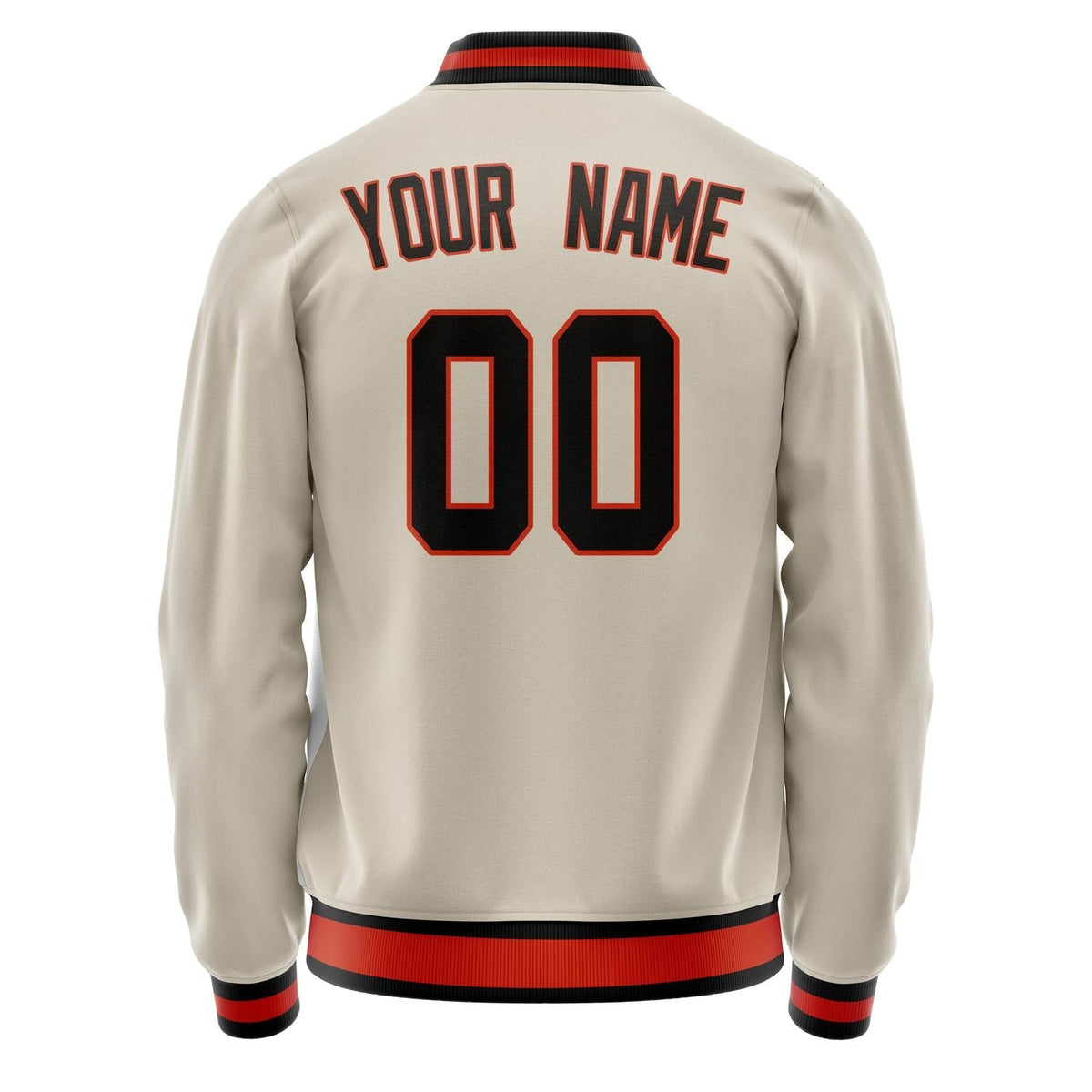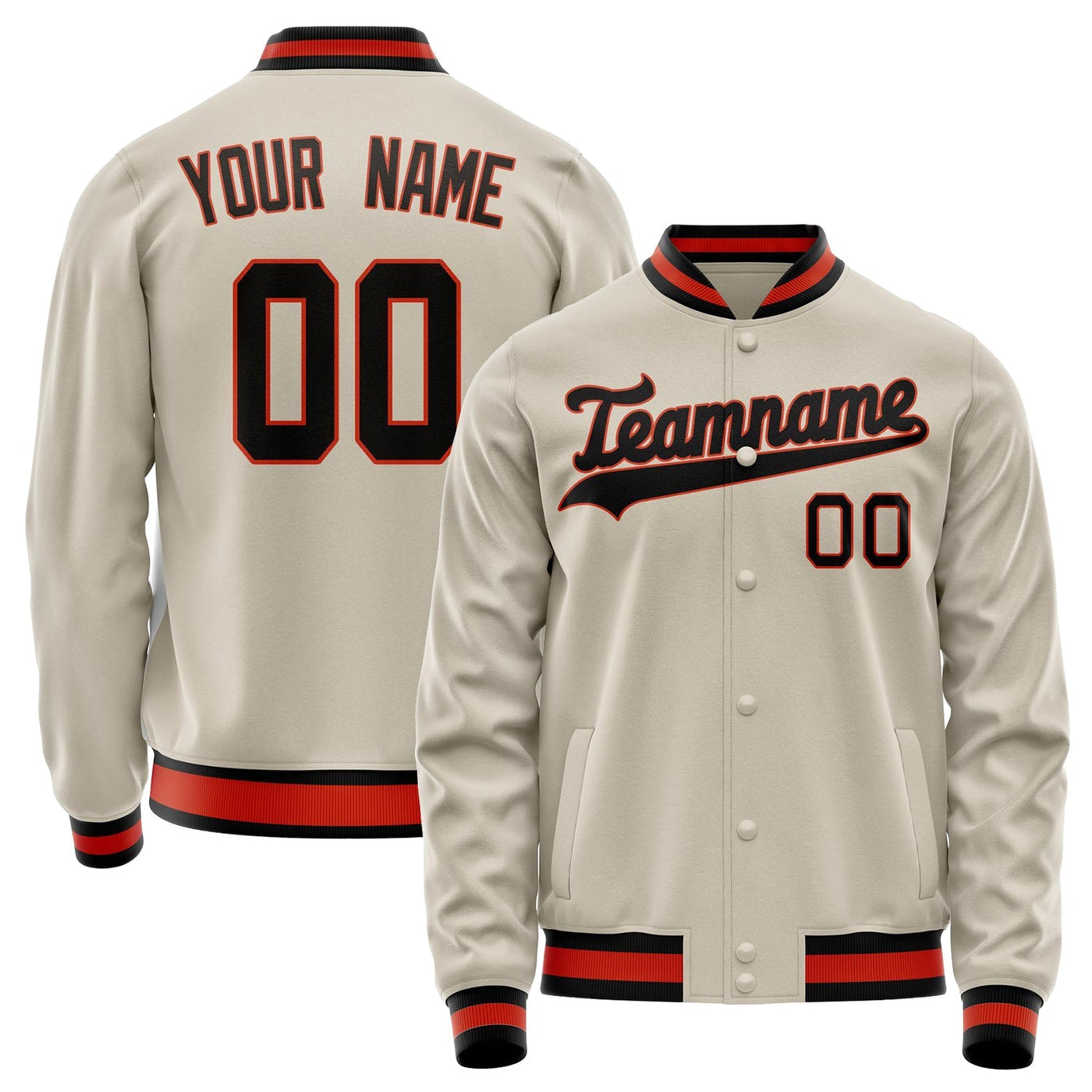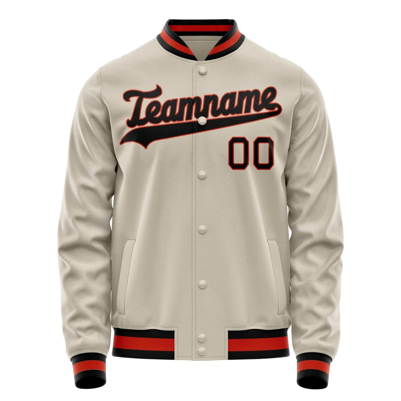 Custom Cream Black Solid Color Varsity Letterman Jacket