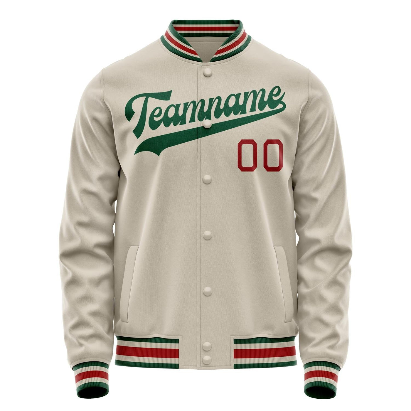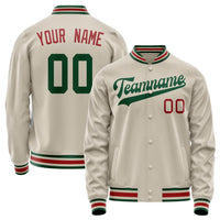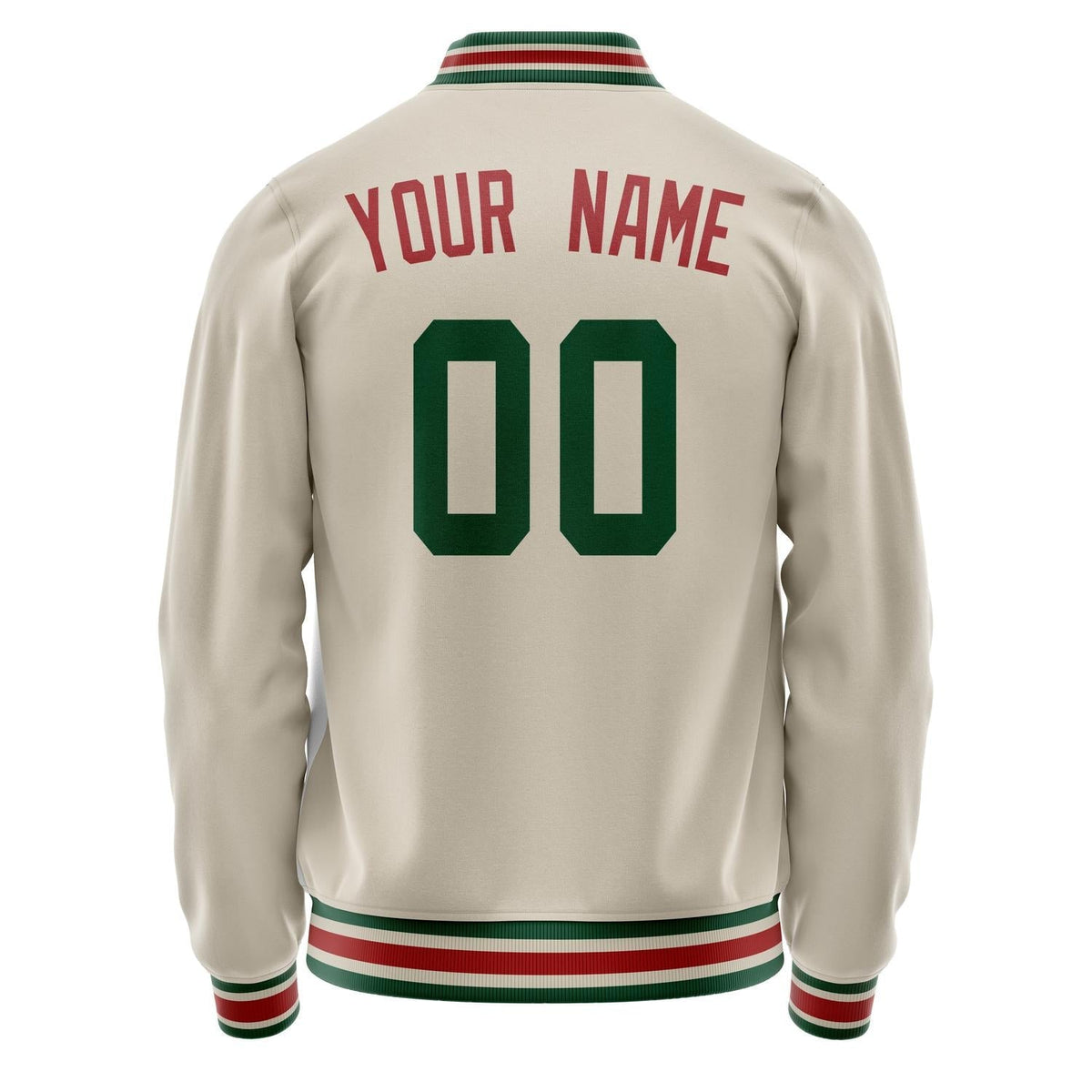 Custom Cream Kelly-Green Solid Color Varsity Letterman Jacket