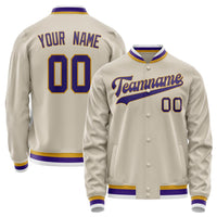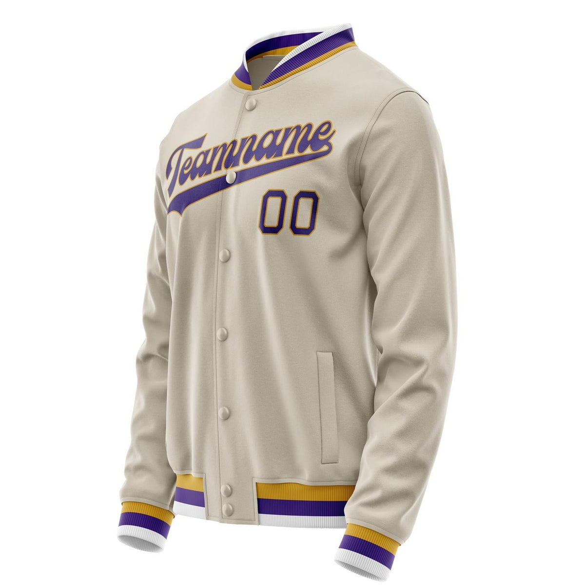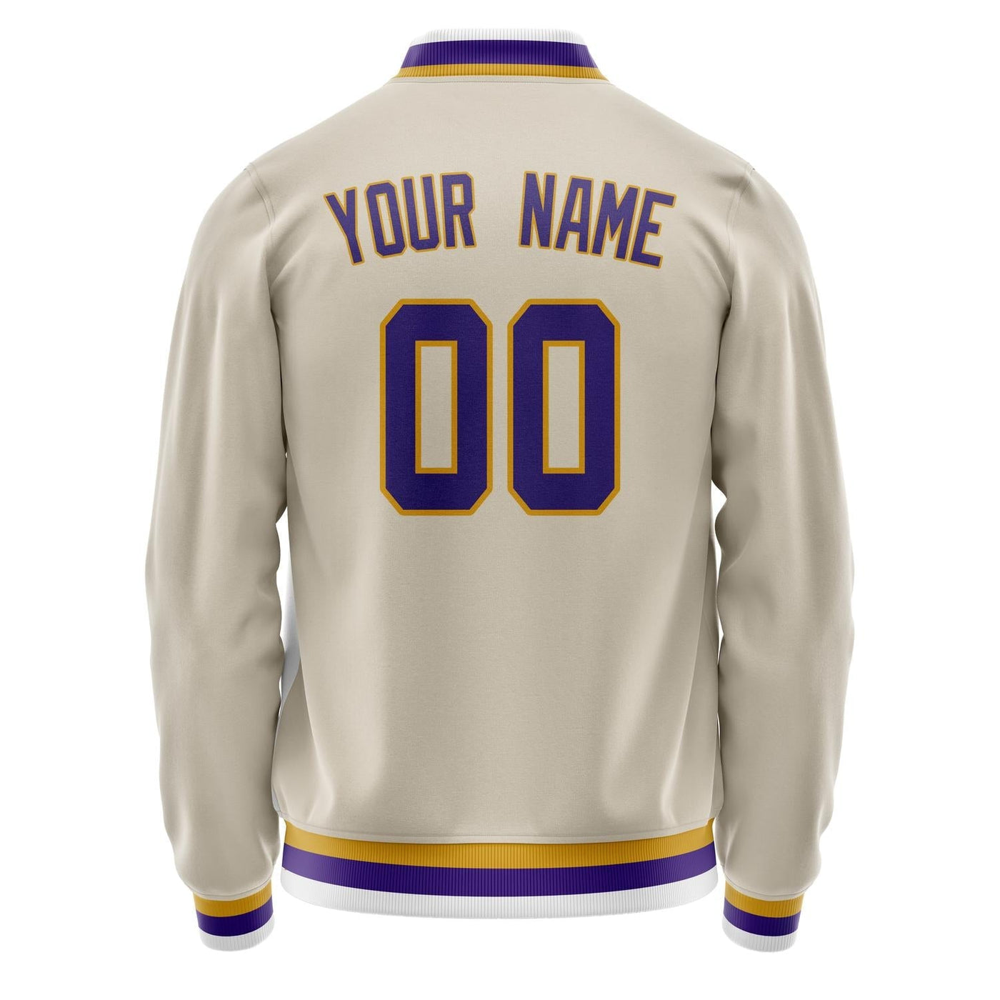 Custom Cream Purple Solid Color Varsity Letterman Jacket