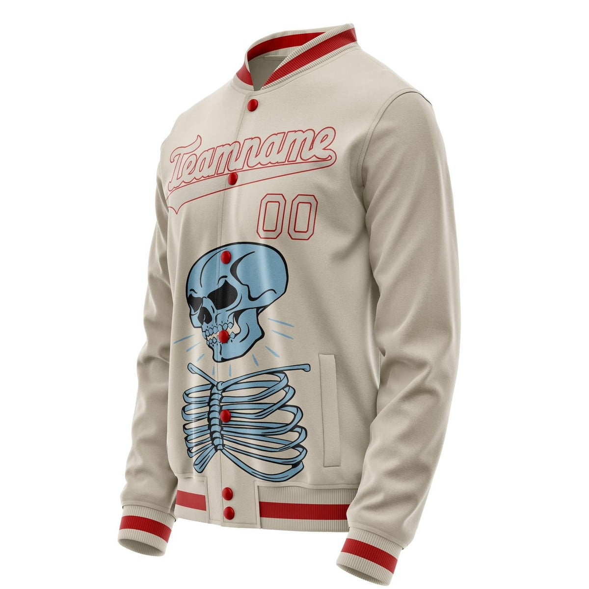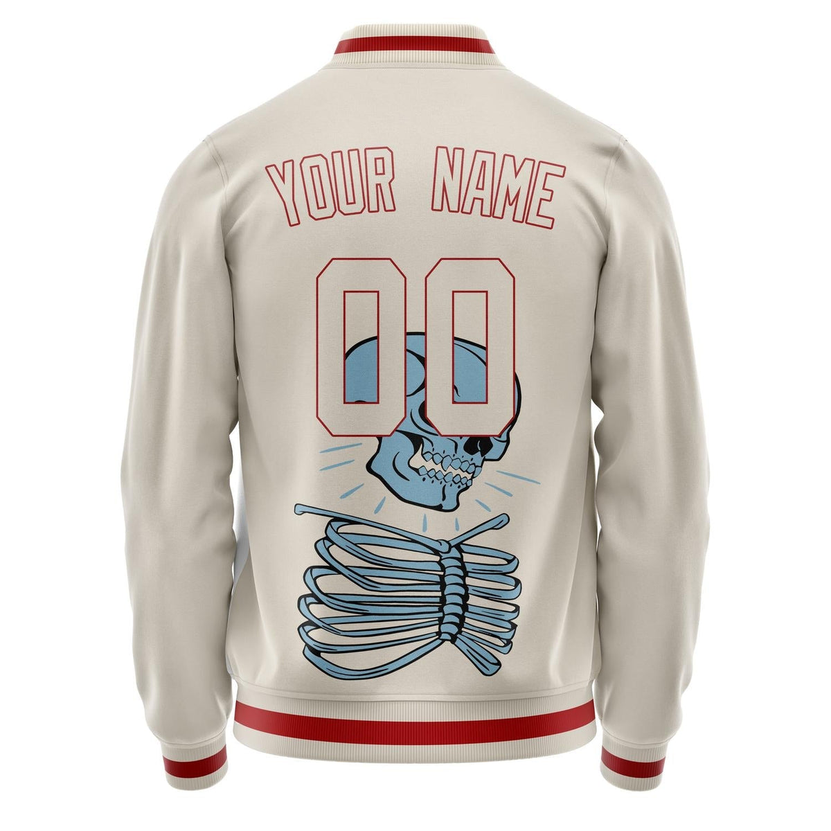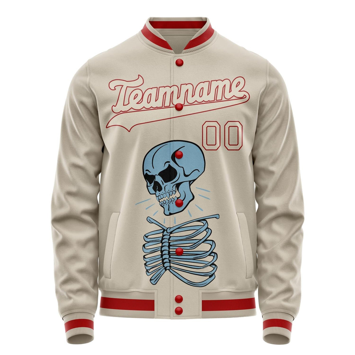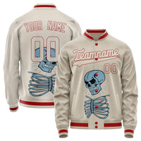 Custom Cream Red 3D Pattern Skull Varsity Letterman Jacket