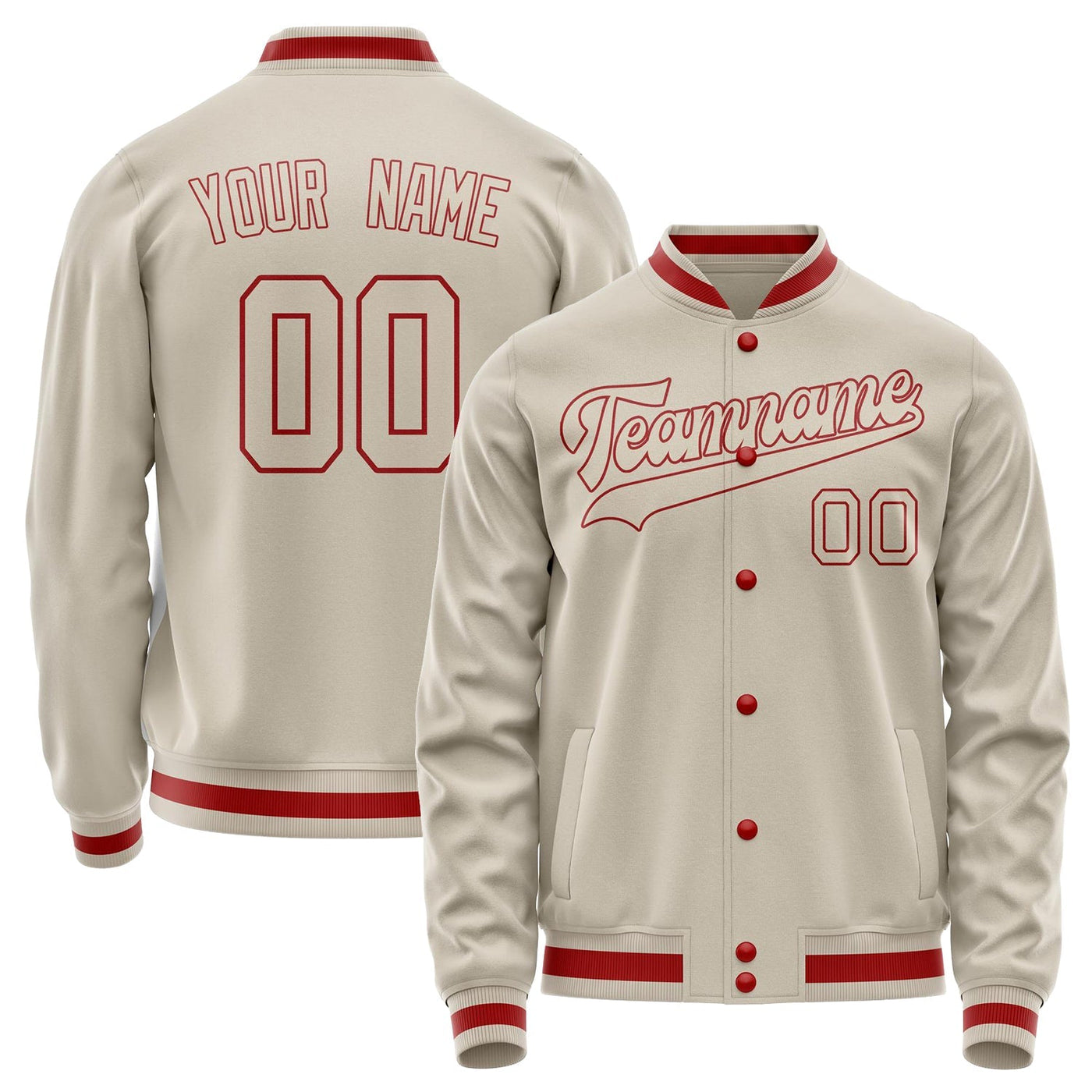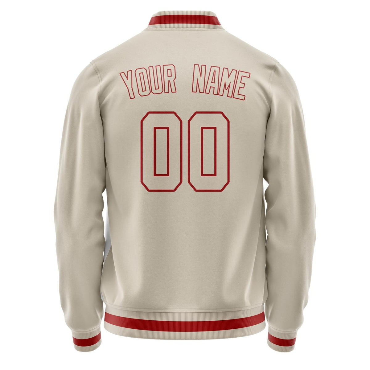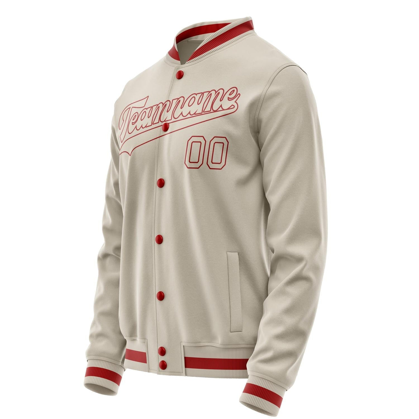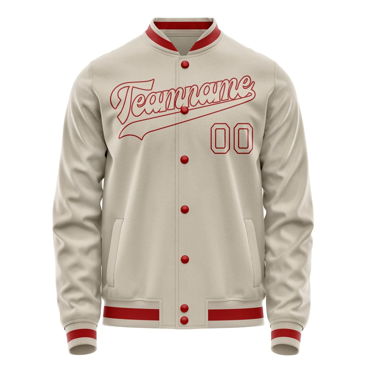 Custom Cream Red Solid Color Varsity Letterman Jacket