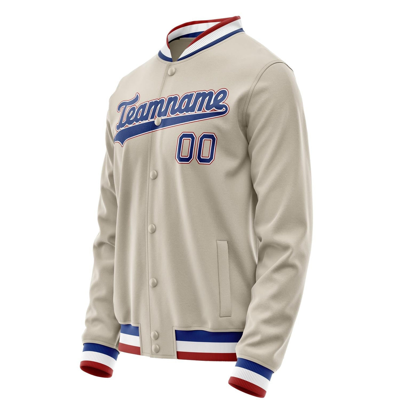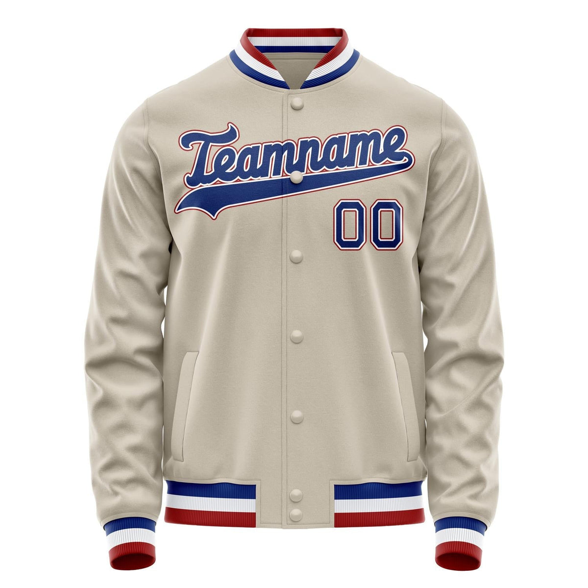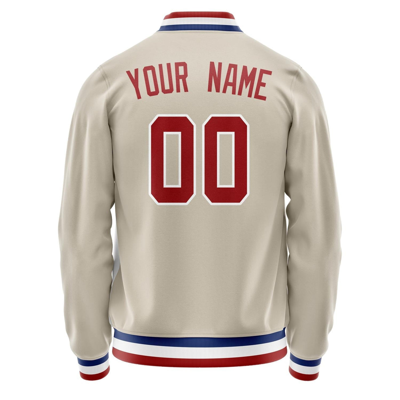 Custom Cream Red Solid Color Varsity Letterman Jacket