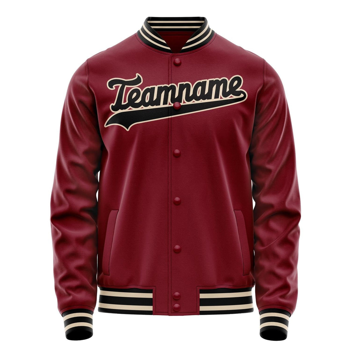 Custom Crimson Black Solid Color Varsity Letterman Jacket