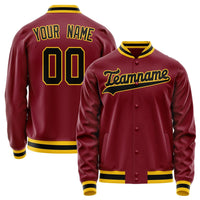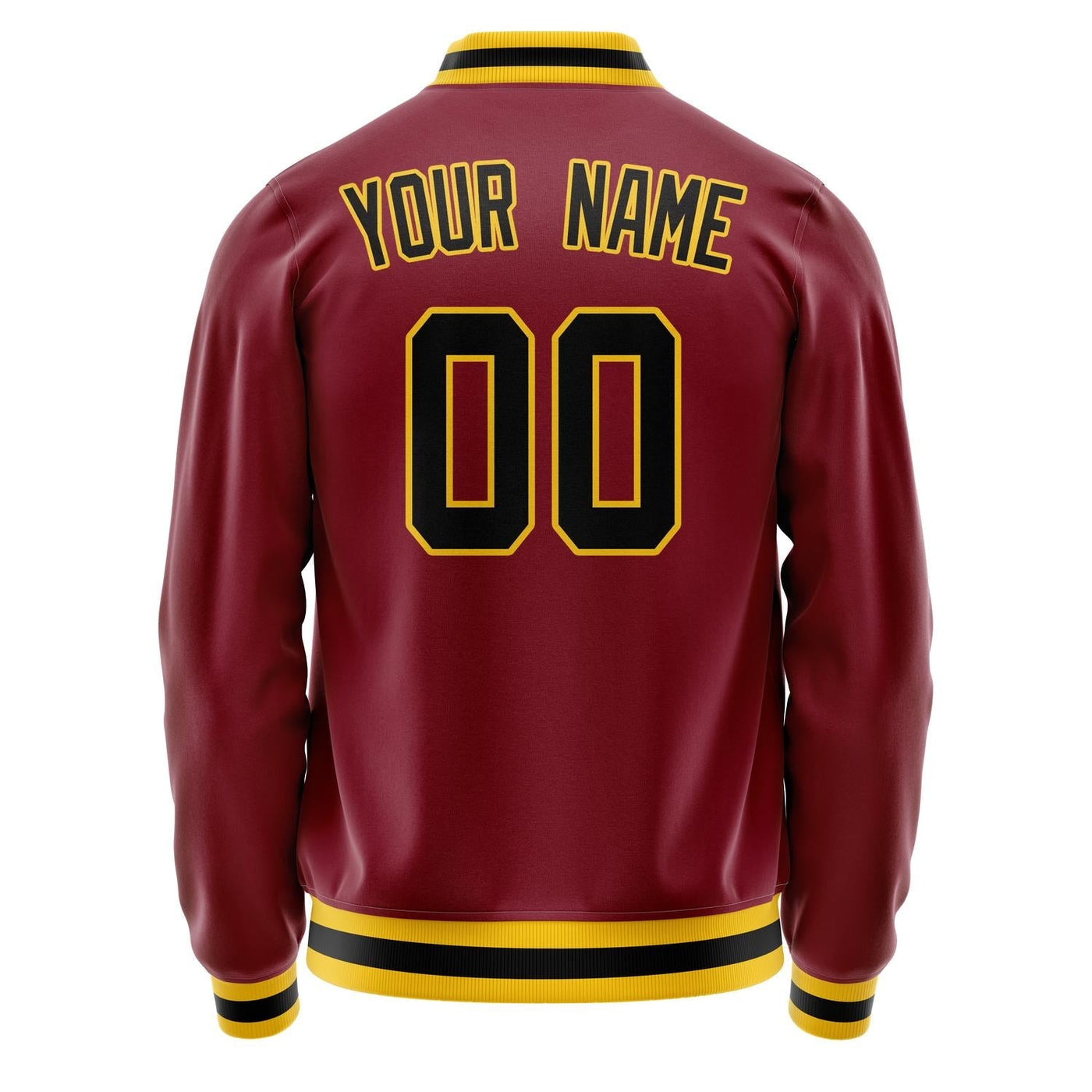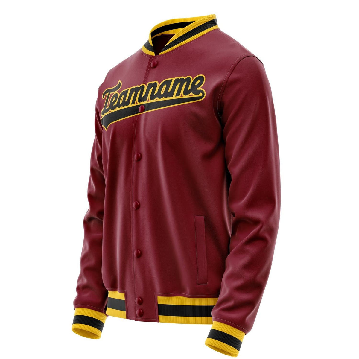 Custom Crimson Black Solid Color Varsity Letterman Jacket