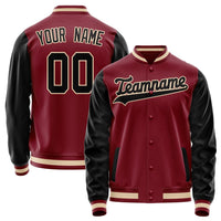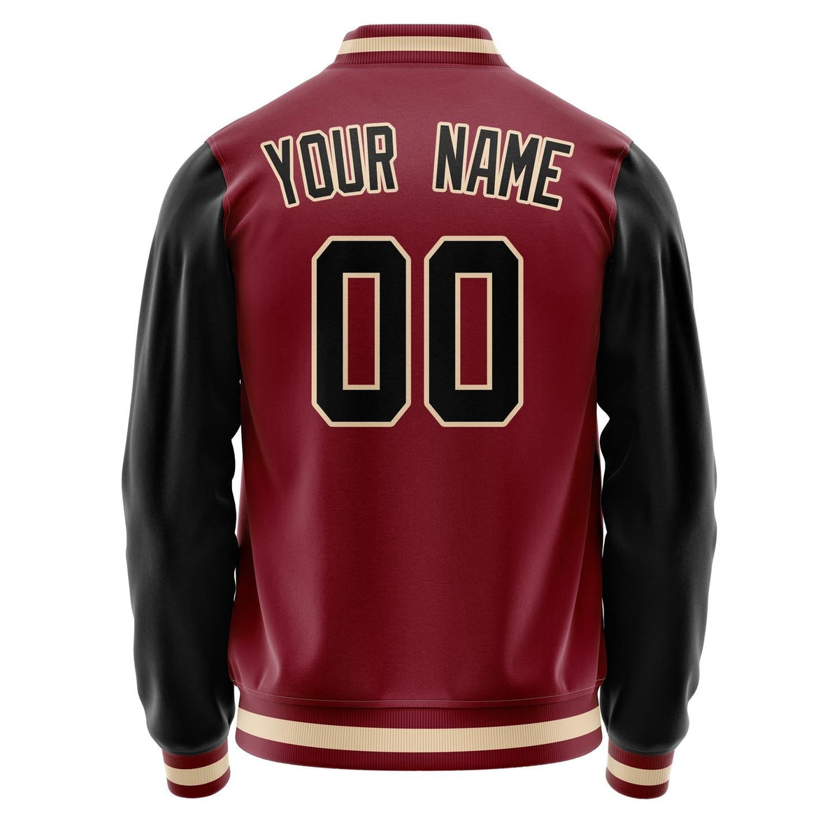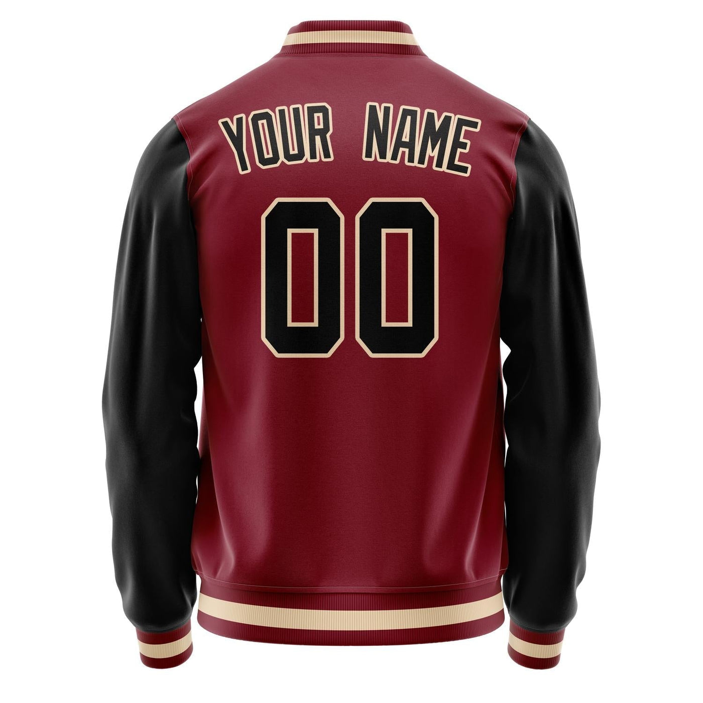 Custom Crimson Black Solid Color Varsity Letterman Jacket