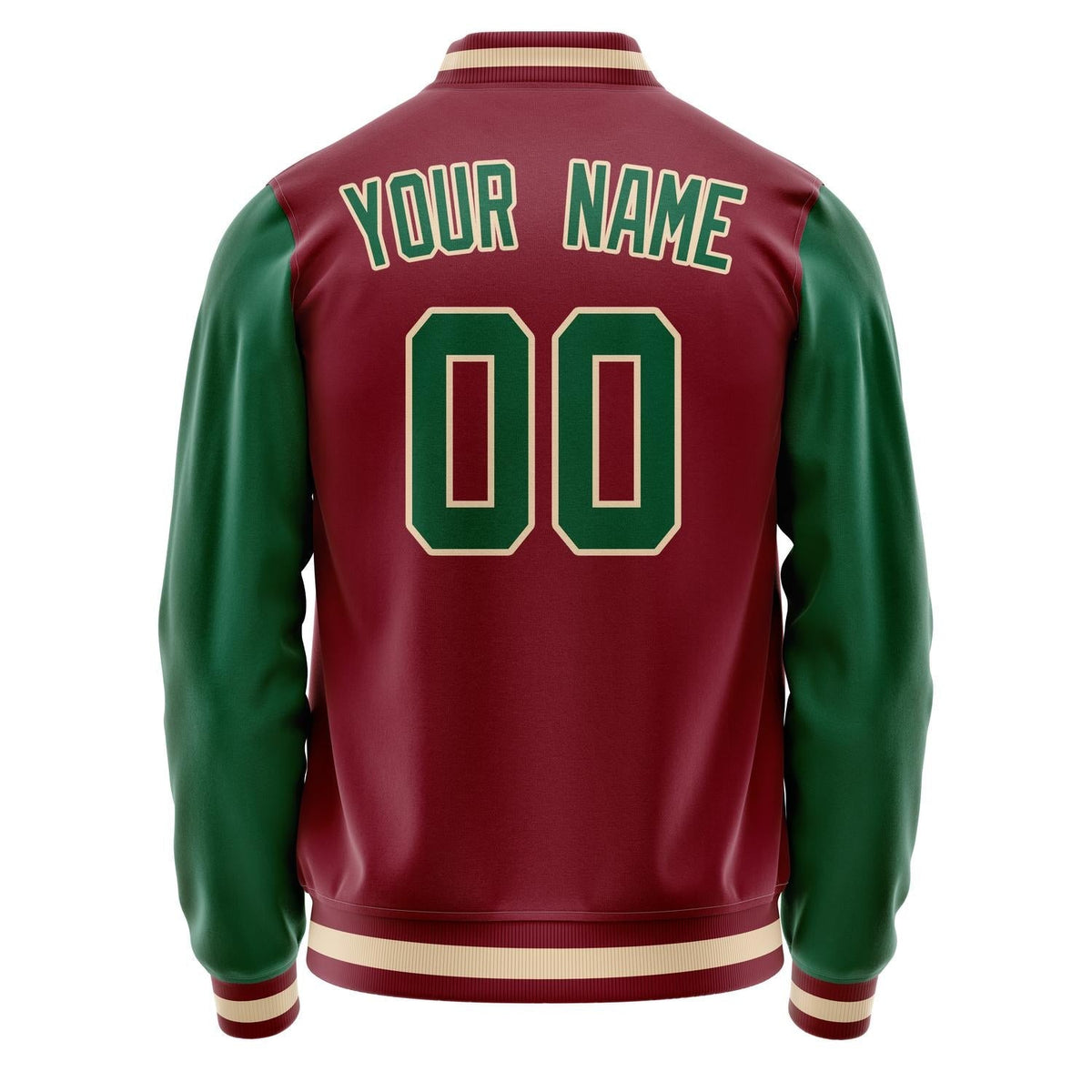 Custom Crimson Kelly-Green Solid Color Varsity Letterman Jacket