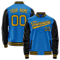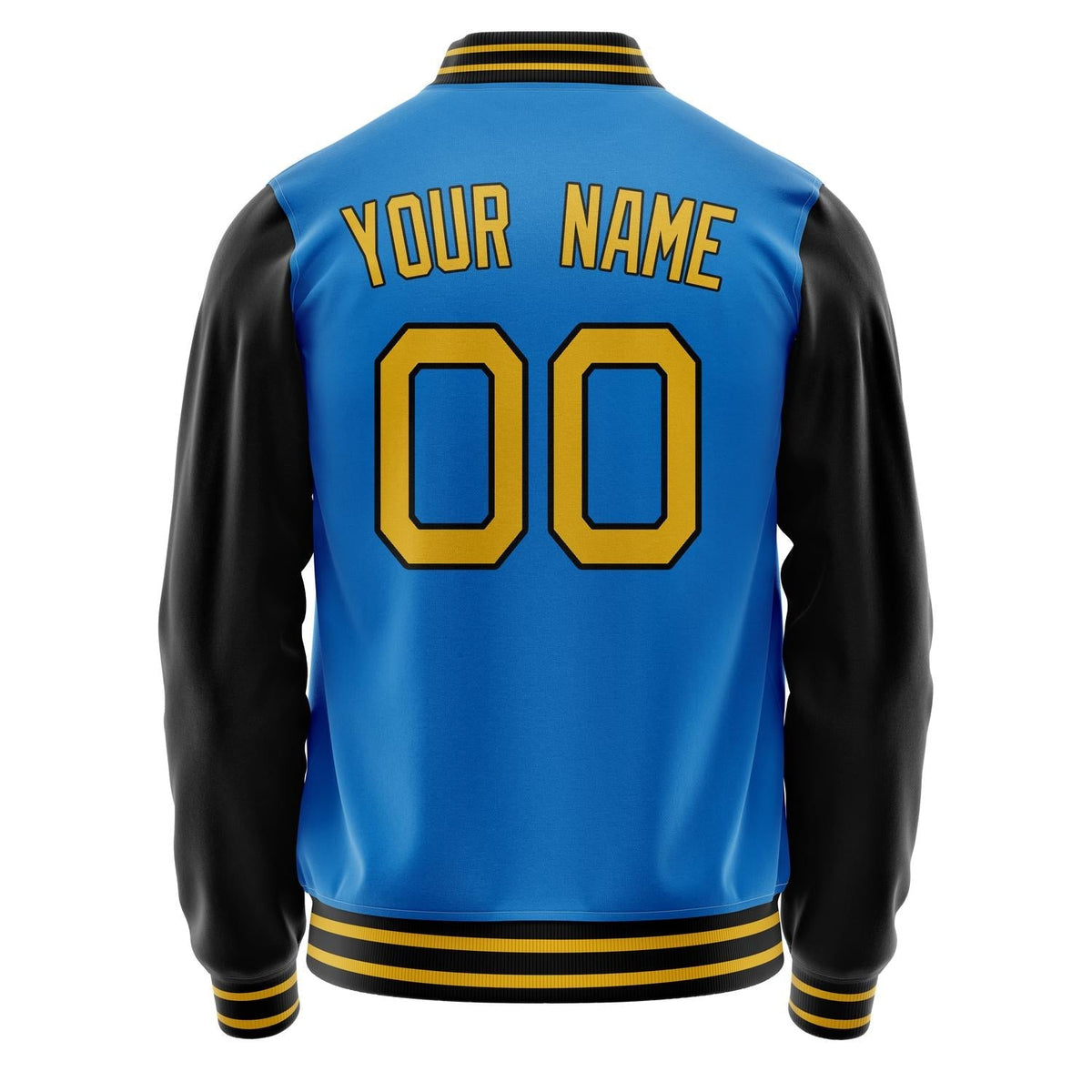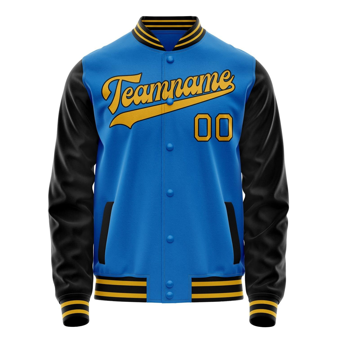 Custom Electric-Blue Black Solid Color Varsity Letterman Jacket