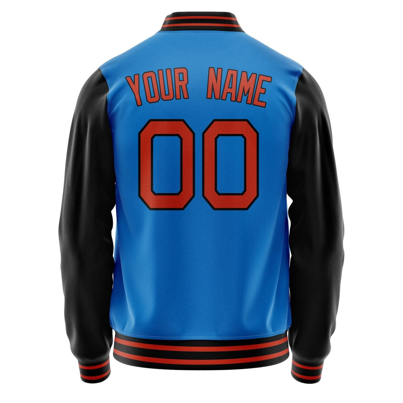 Custom Electric-Blue Black Solid Color Varsity Letterman Jacket