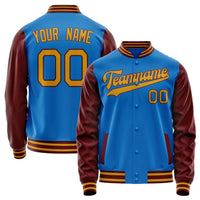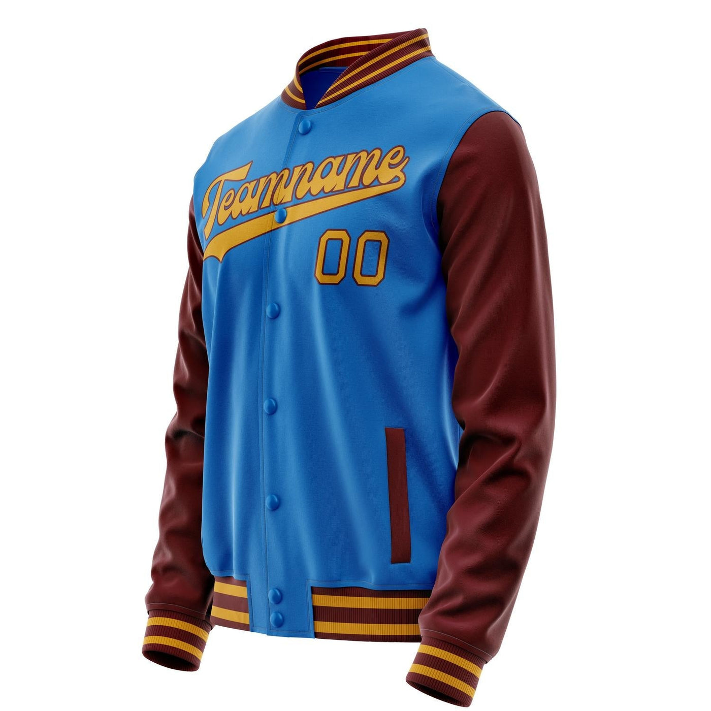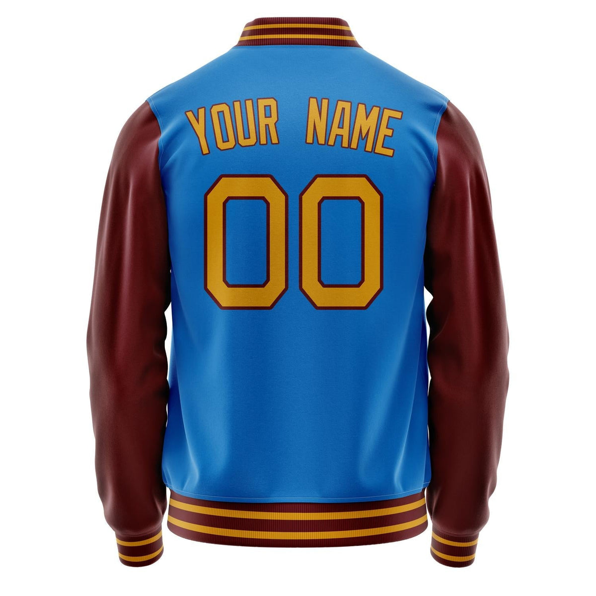 Custom Electric-Blue Brown Solid Color Varsity Letterman Jacket