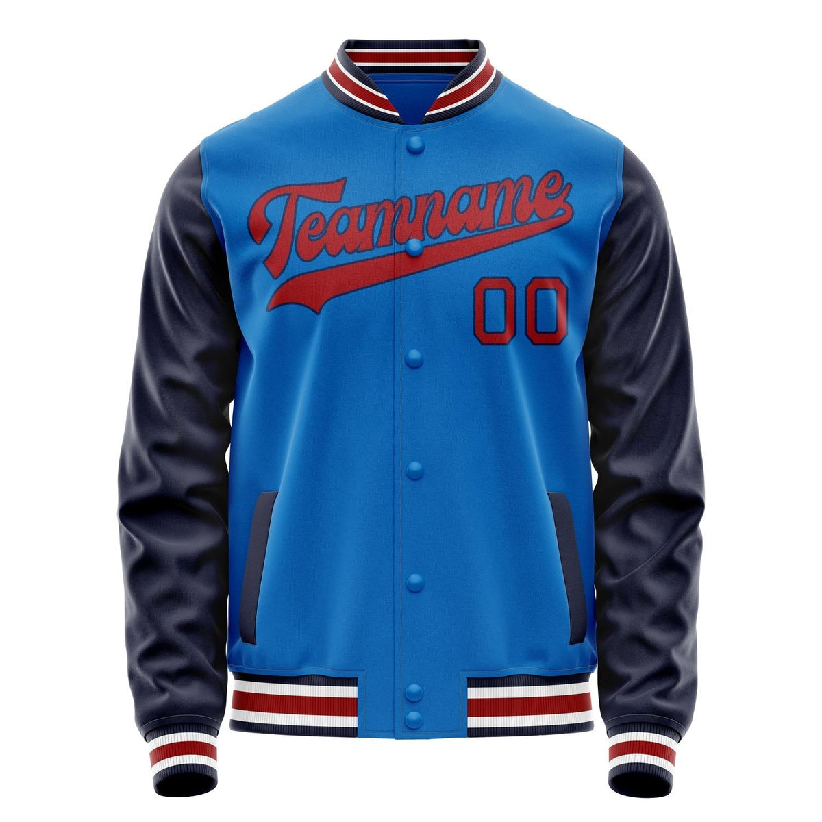 Custom Electric-Blue Red Solid Color Varsity Letterman Jacket
