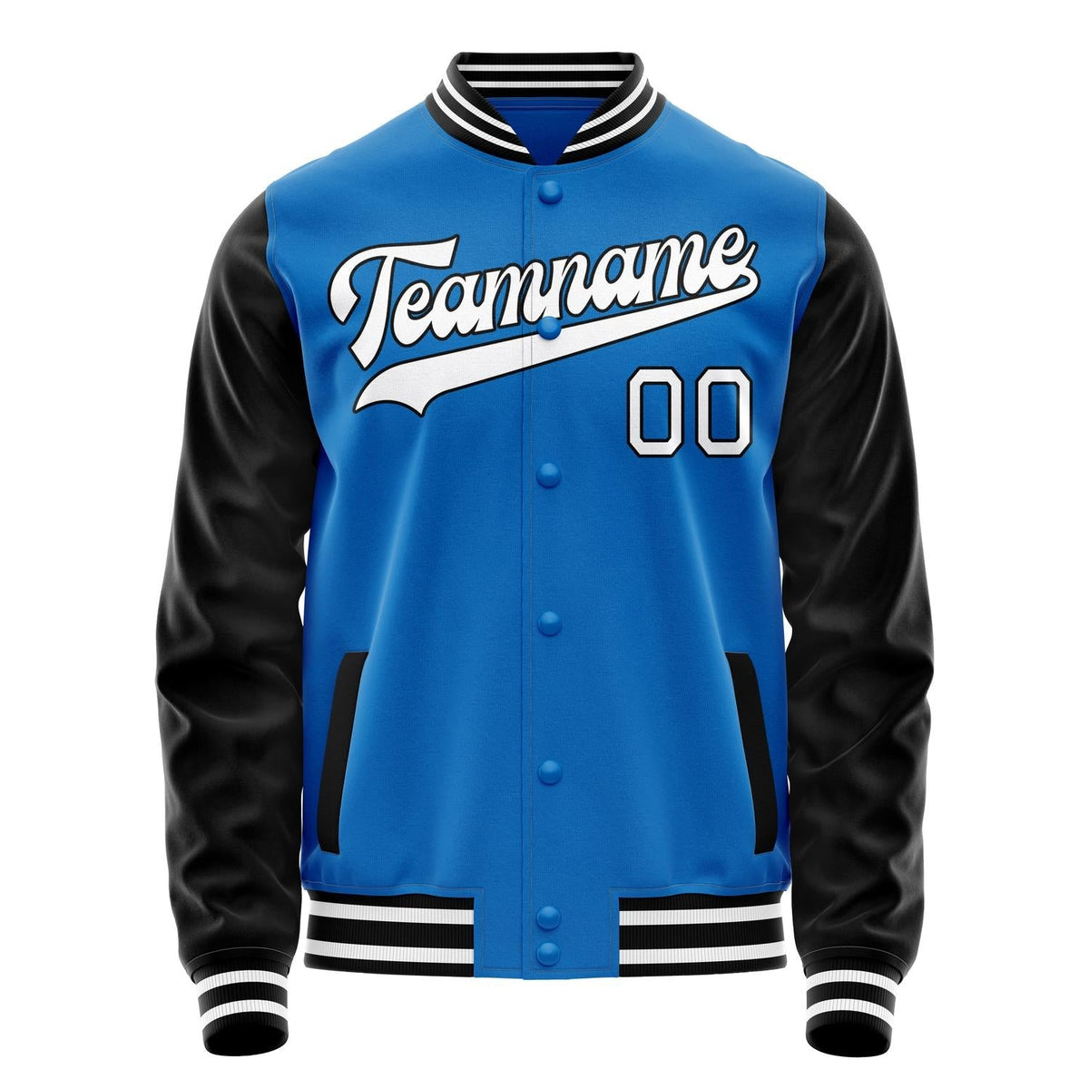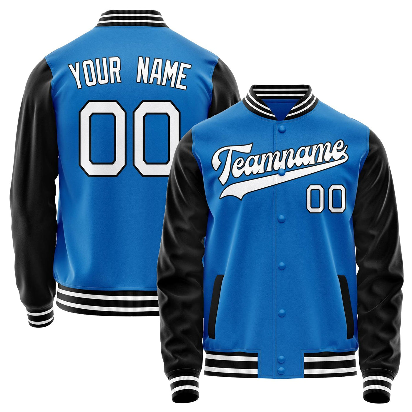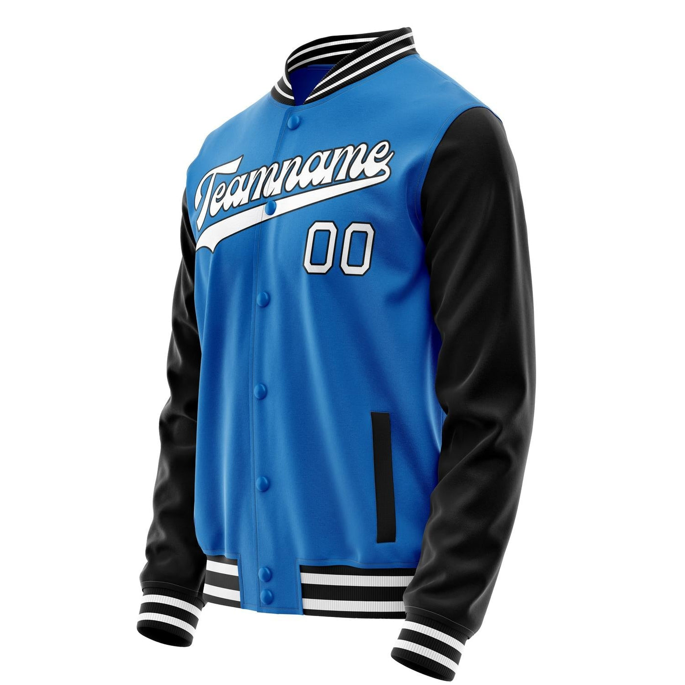 Custom Electric-Blue White Solid Color Varsity Letterman Jacket
