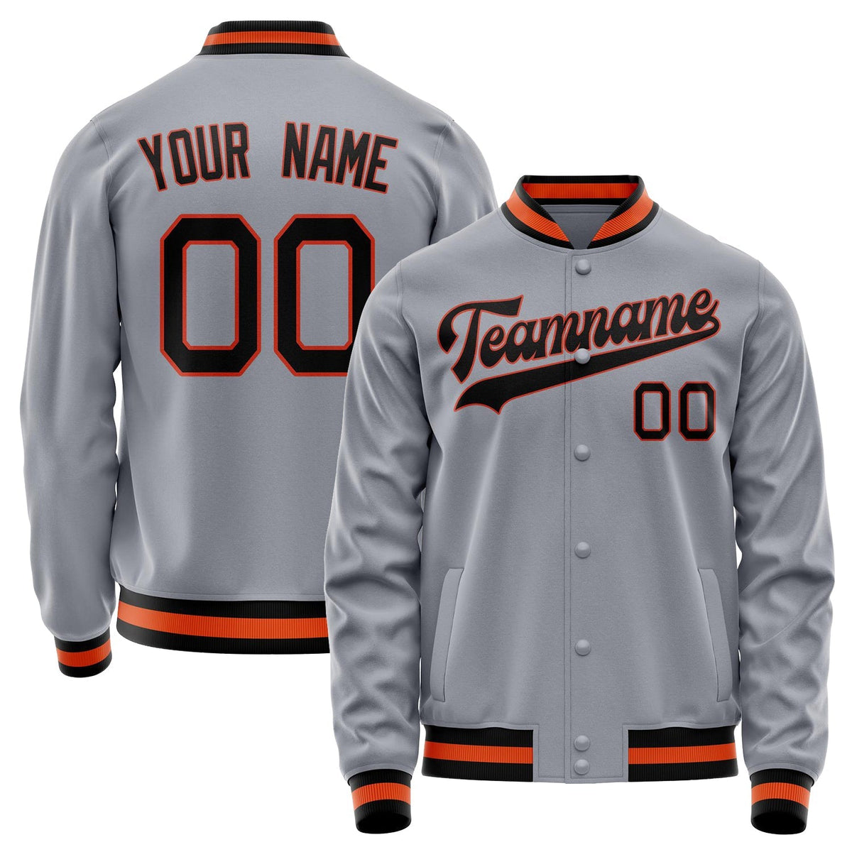 Custom Gray Black Solid Color Varsity Letterman Jacket