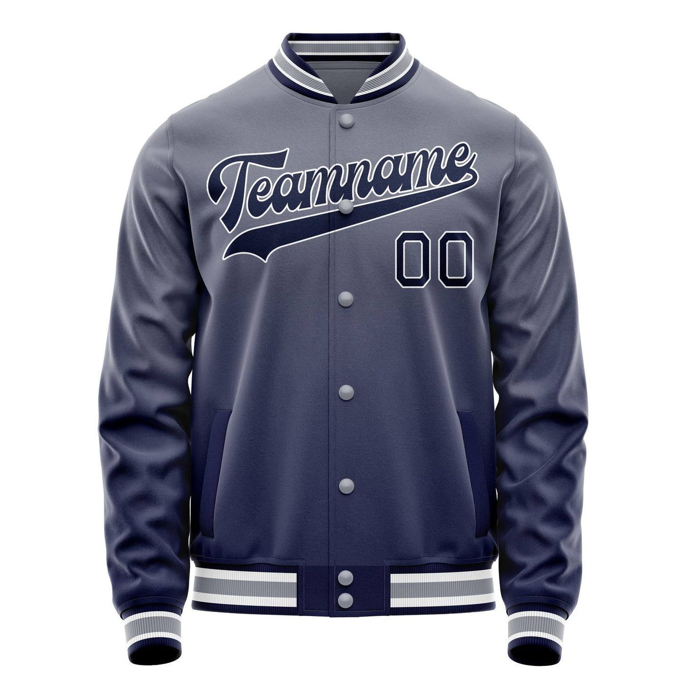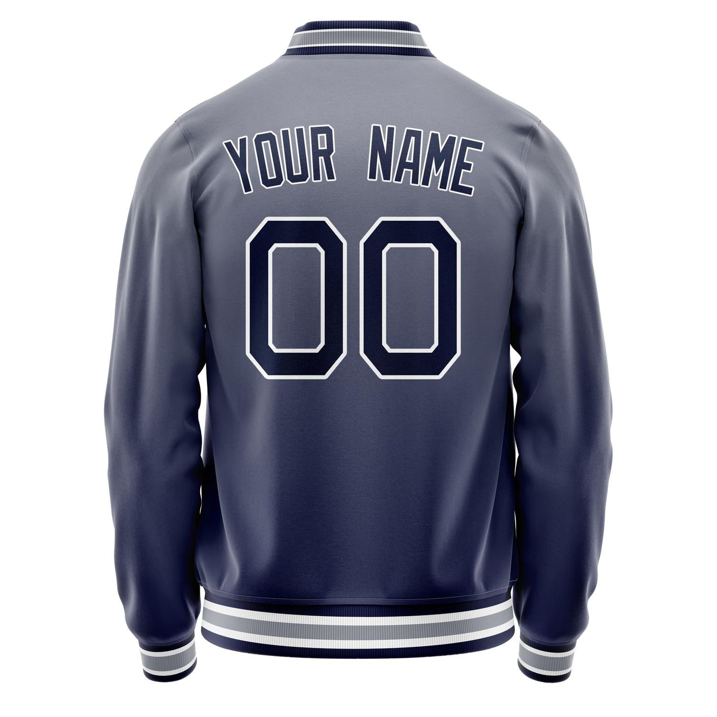 Custom Gray Navy Gradient Varsity Letterman Jacket