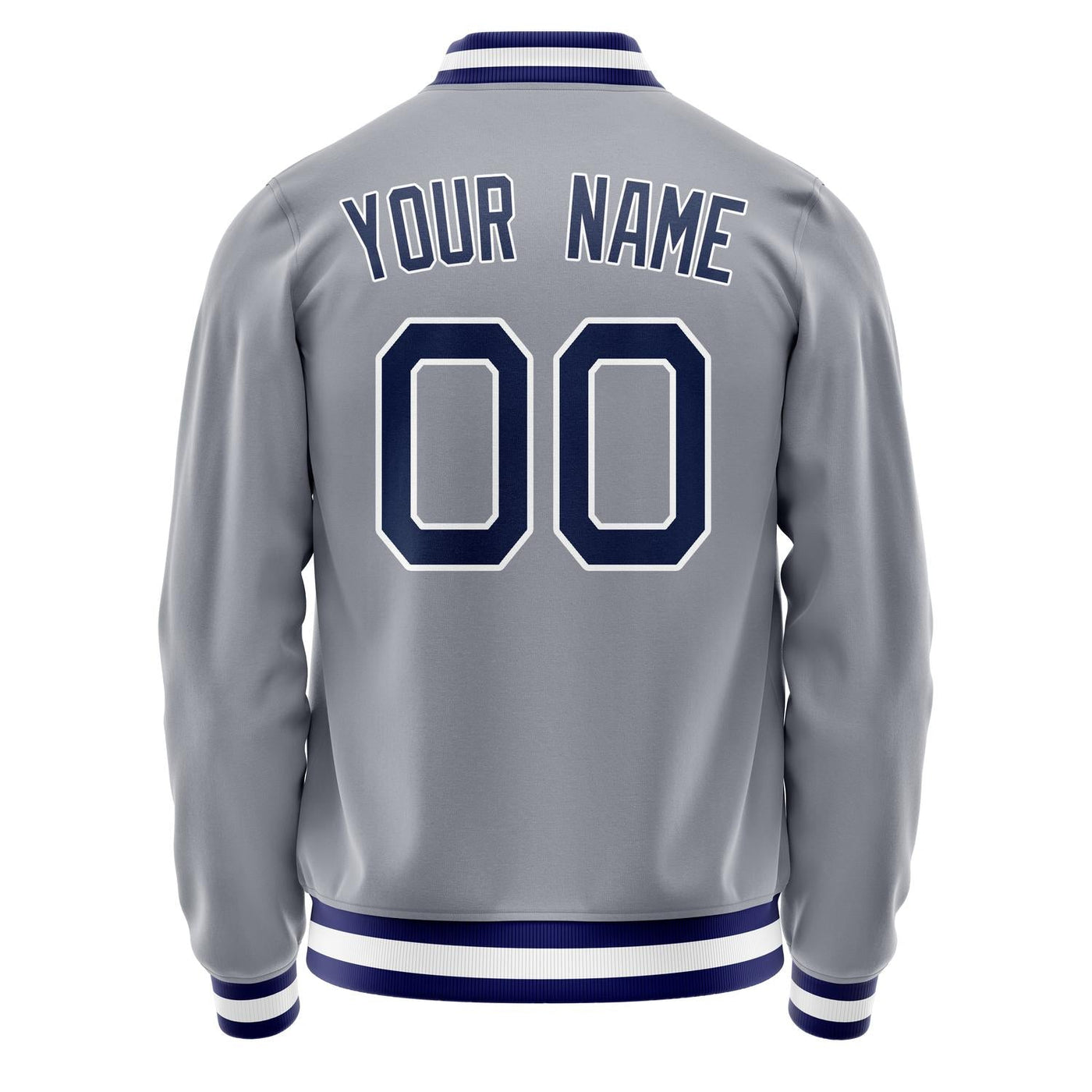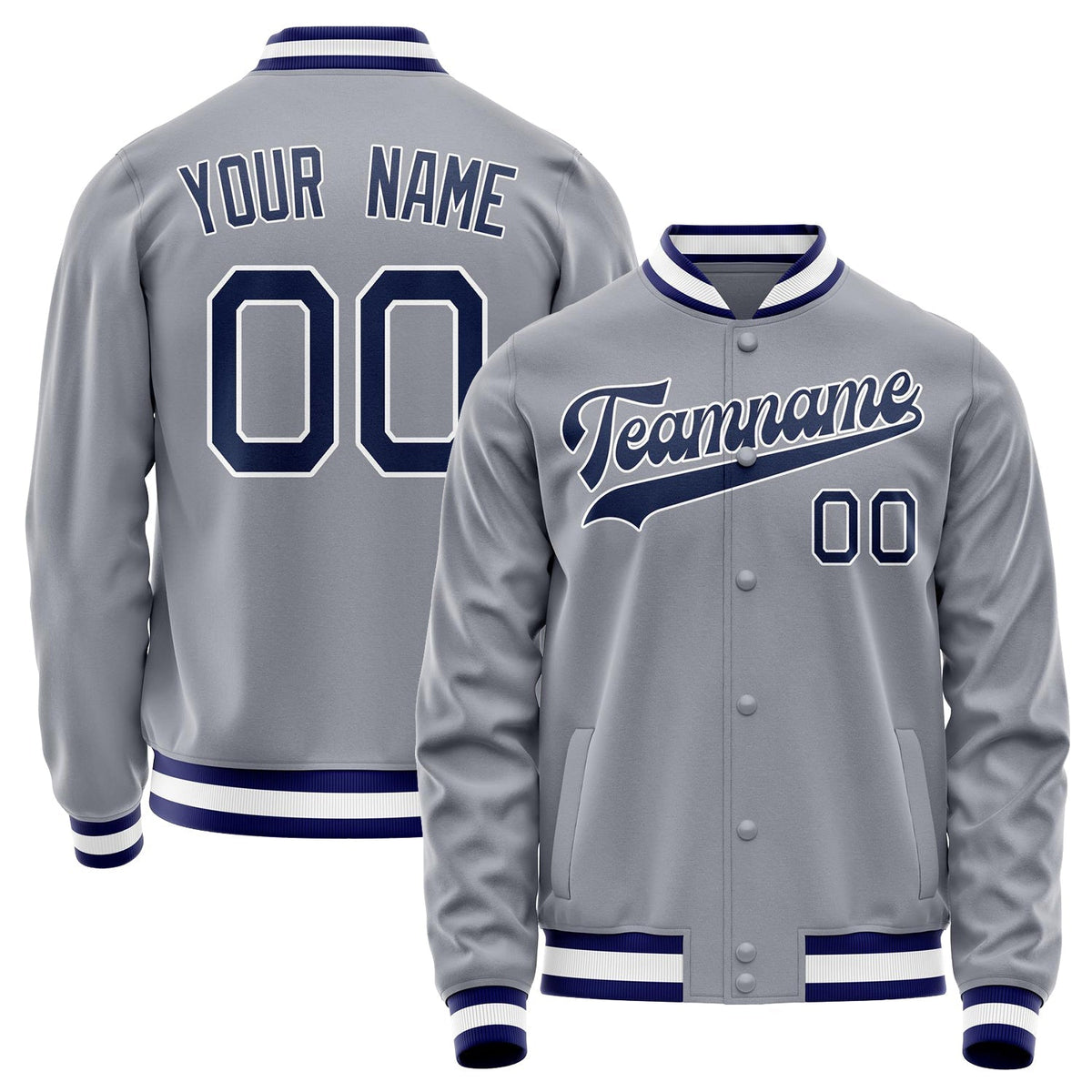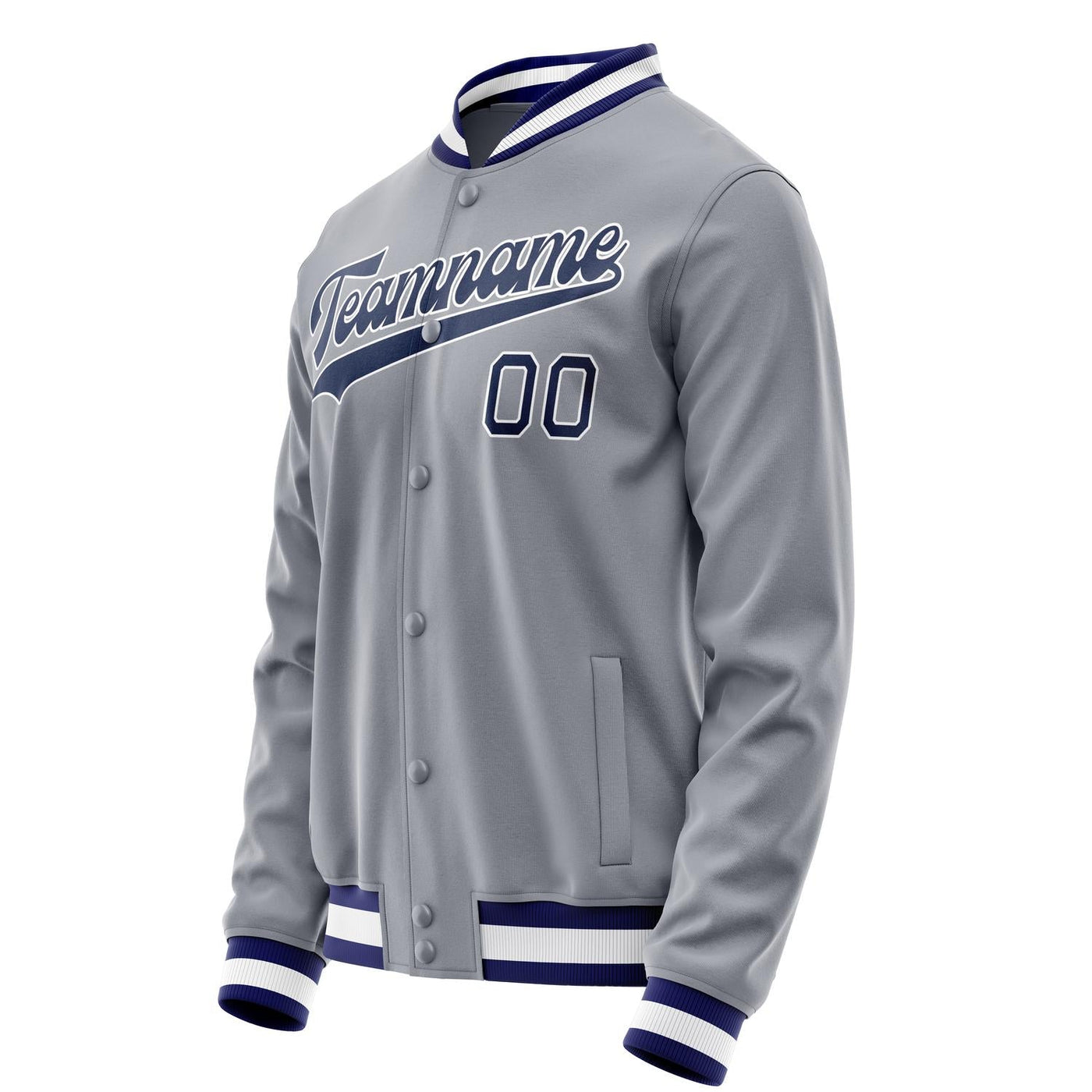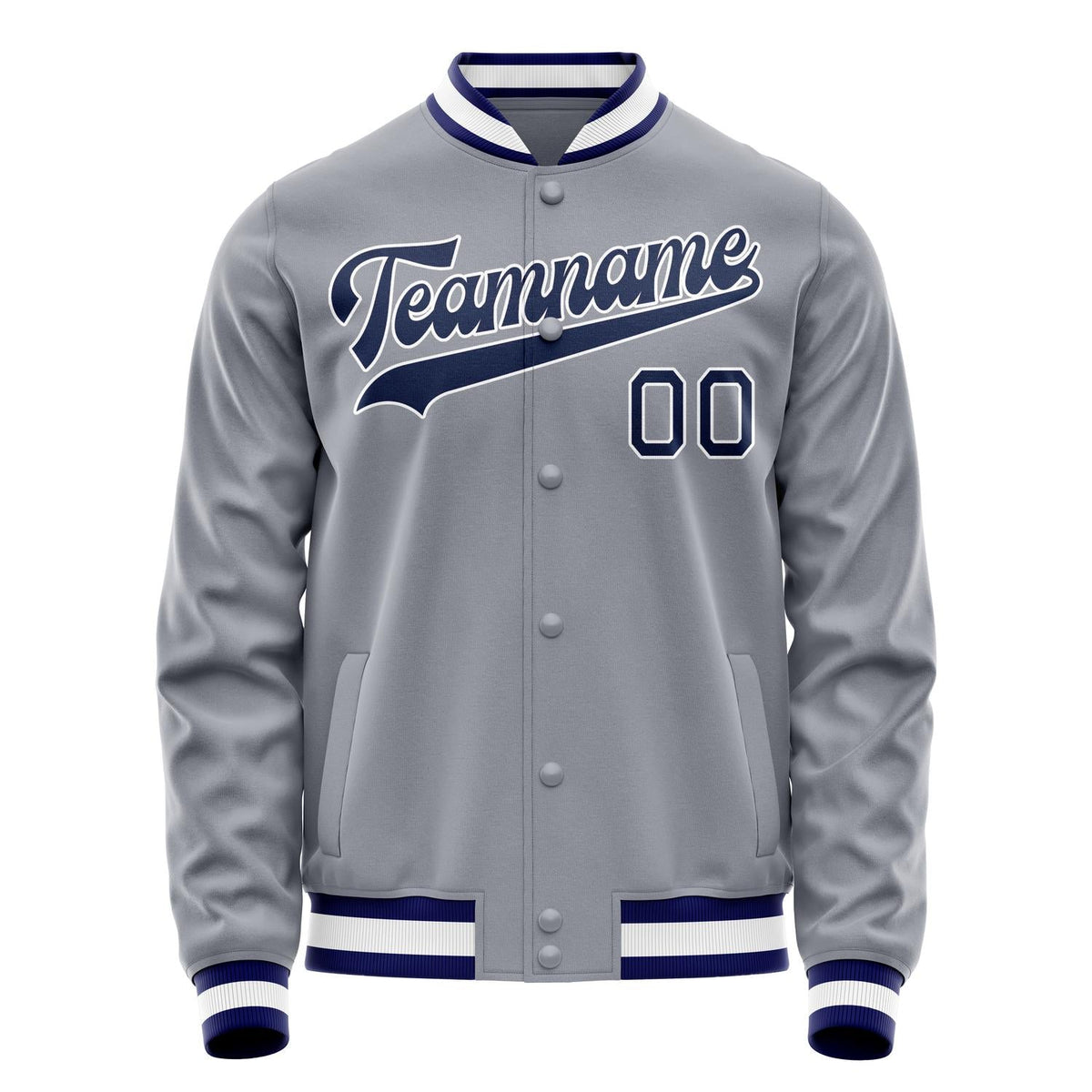 Custom Gray Navy Solid Color Varsity Letterman Jacket