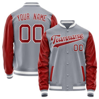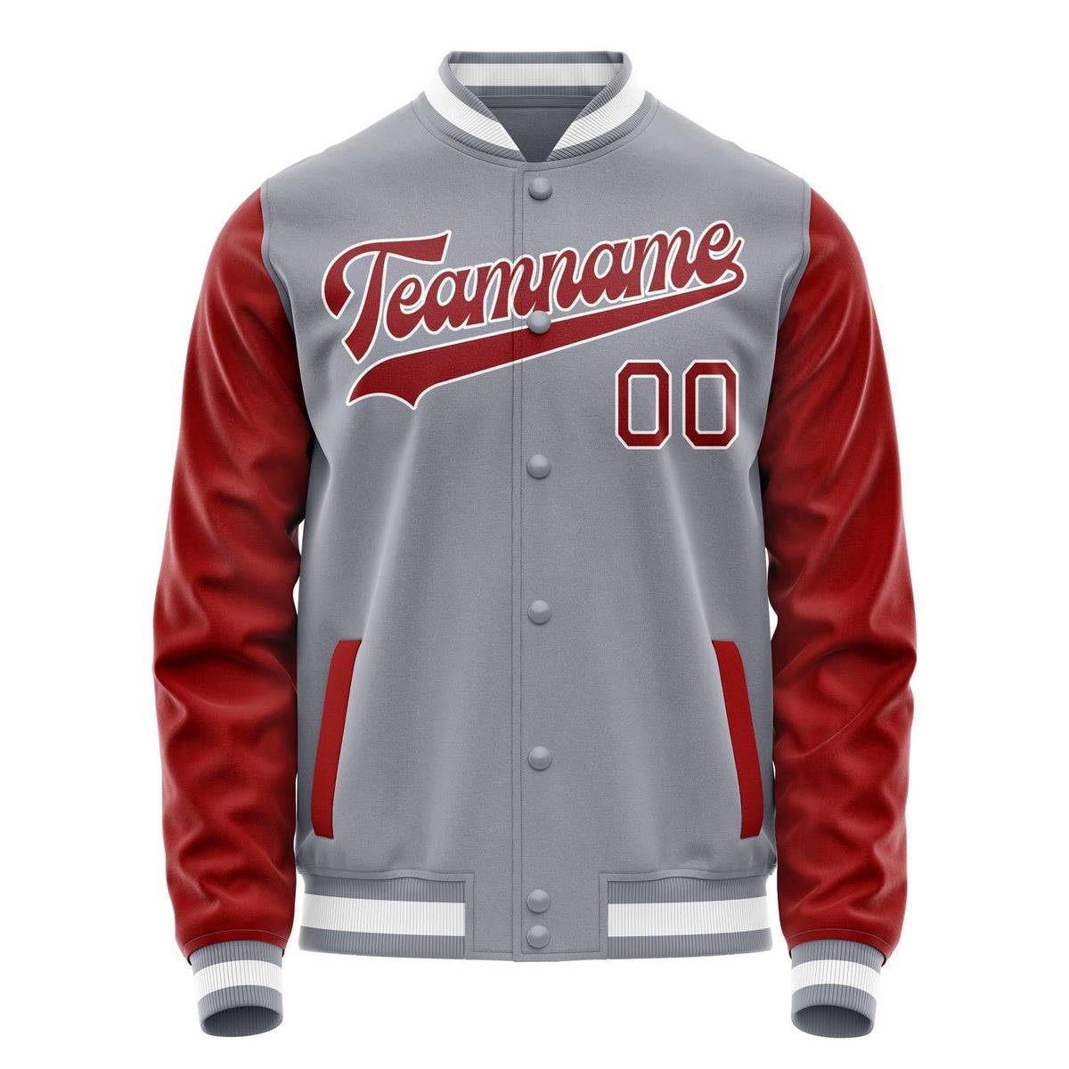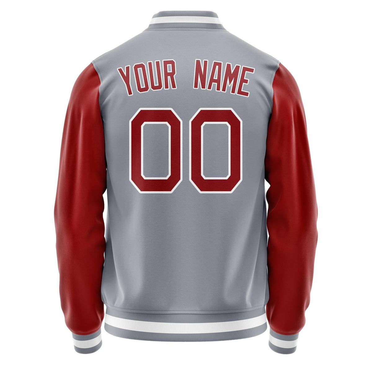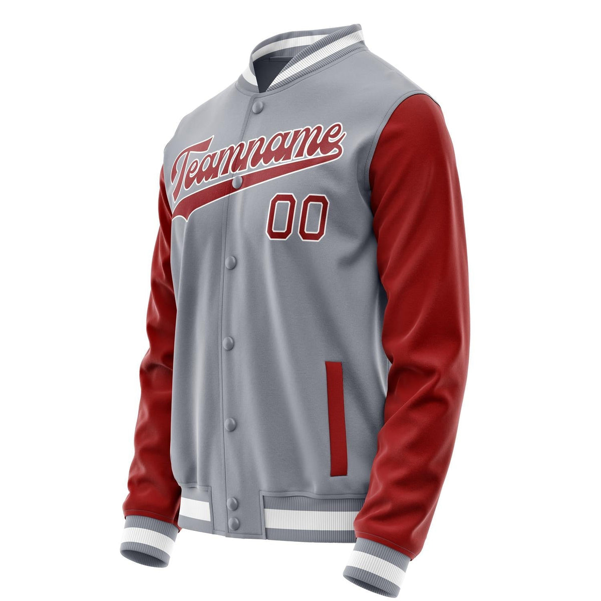 Custom Gray Red Solid Color Varsity Letterman Jacket