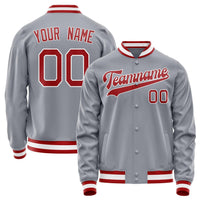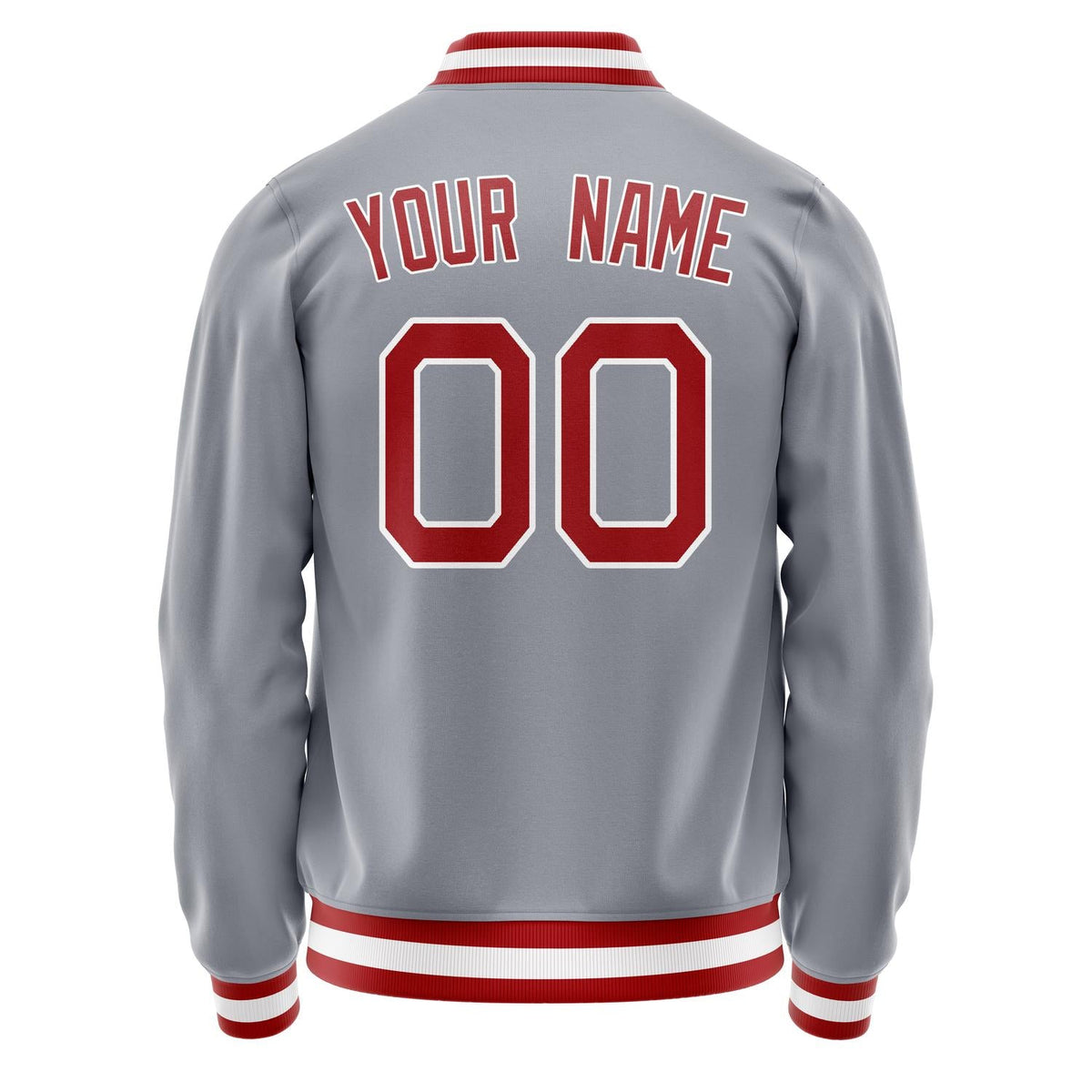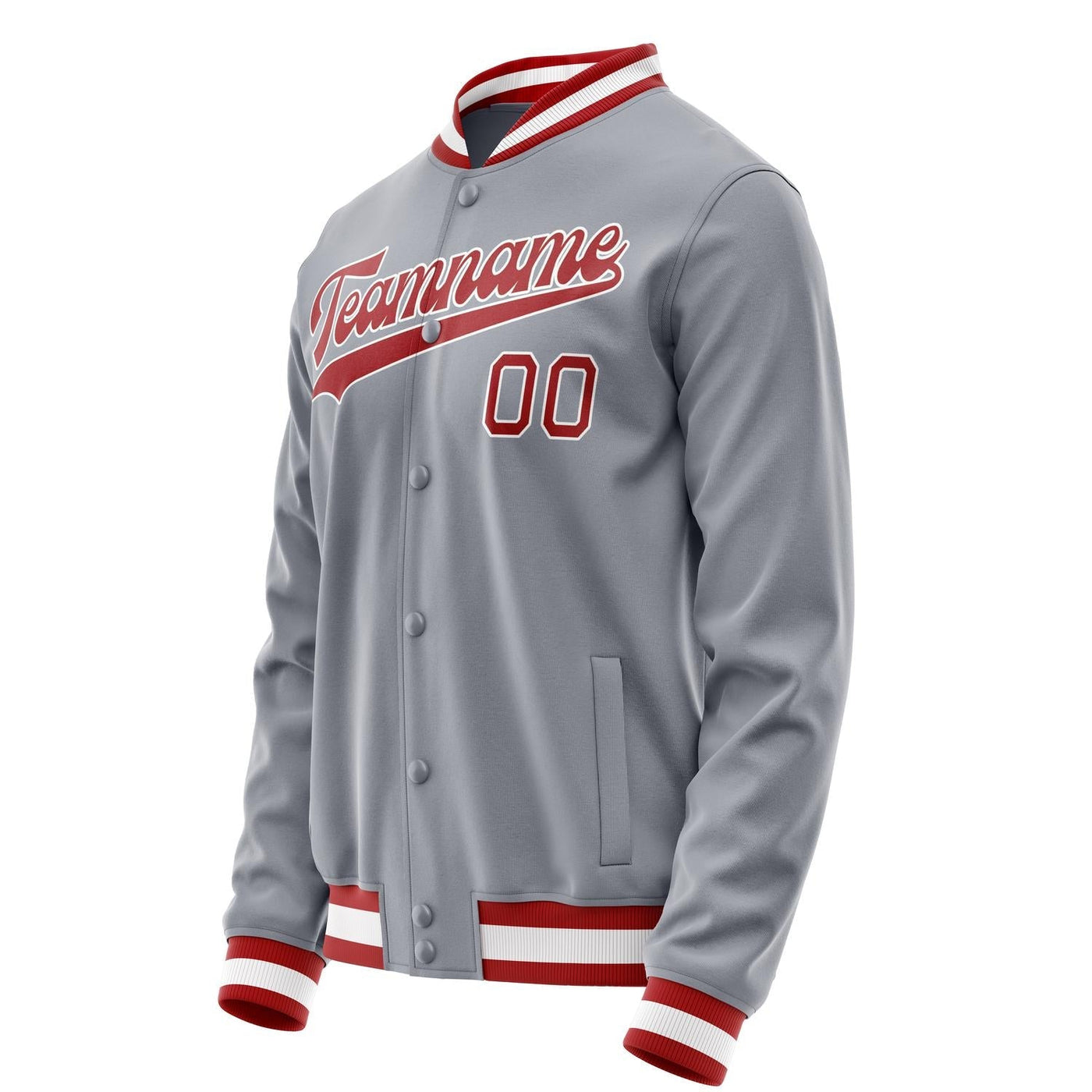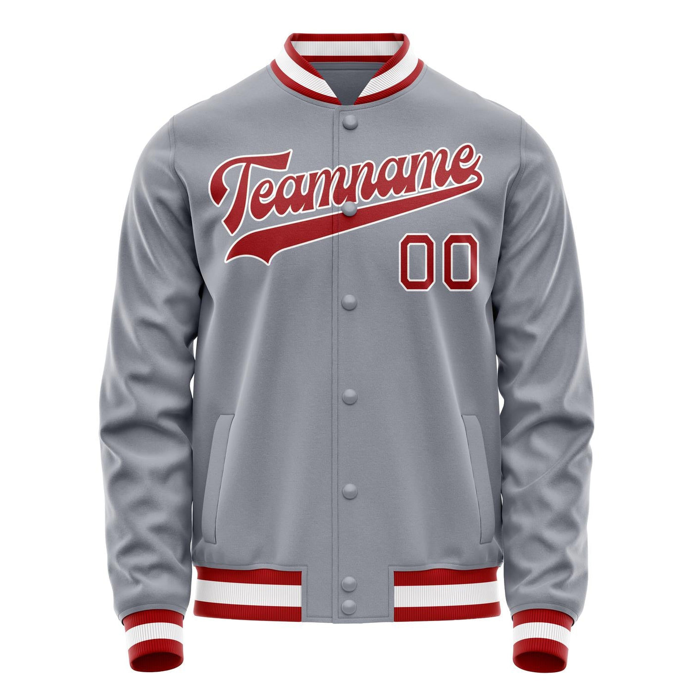 Custom Gray Red Solid Color Varsity Letterman Jacket
