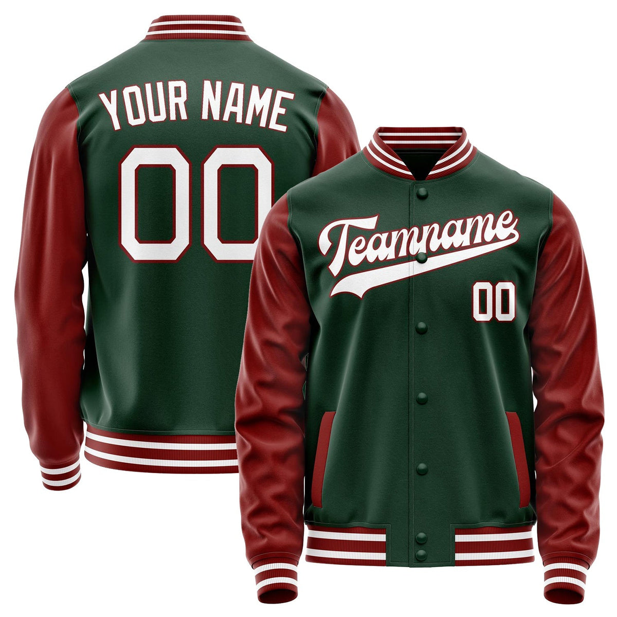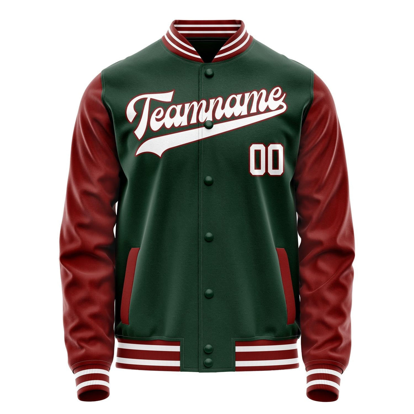 Custom Green Crimson Solid Color Varsity Letterman Jacket