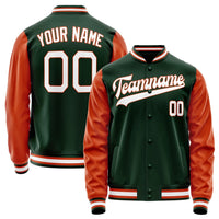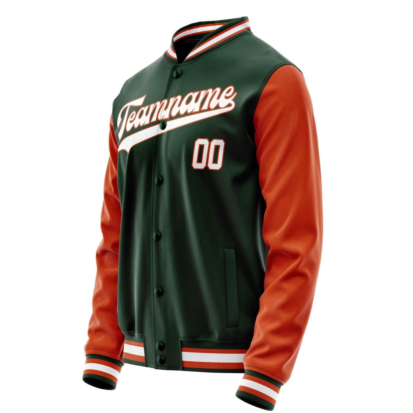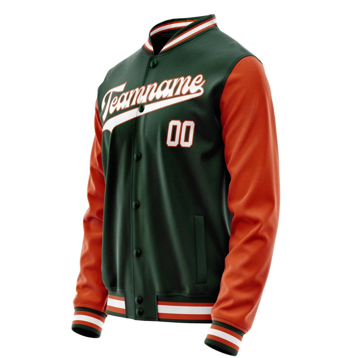 Custom Green Orange Solid Color Varsity Letterman Jacket
