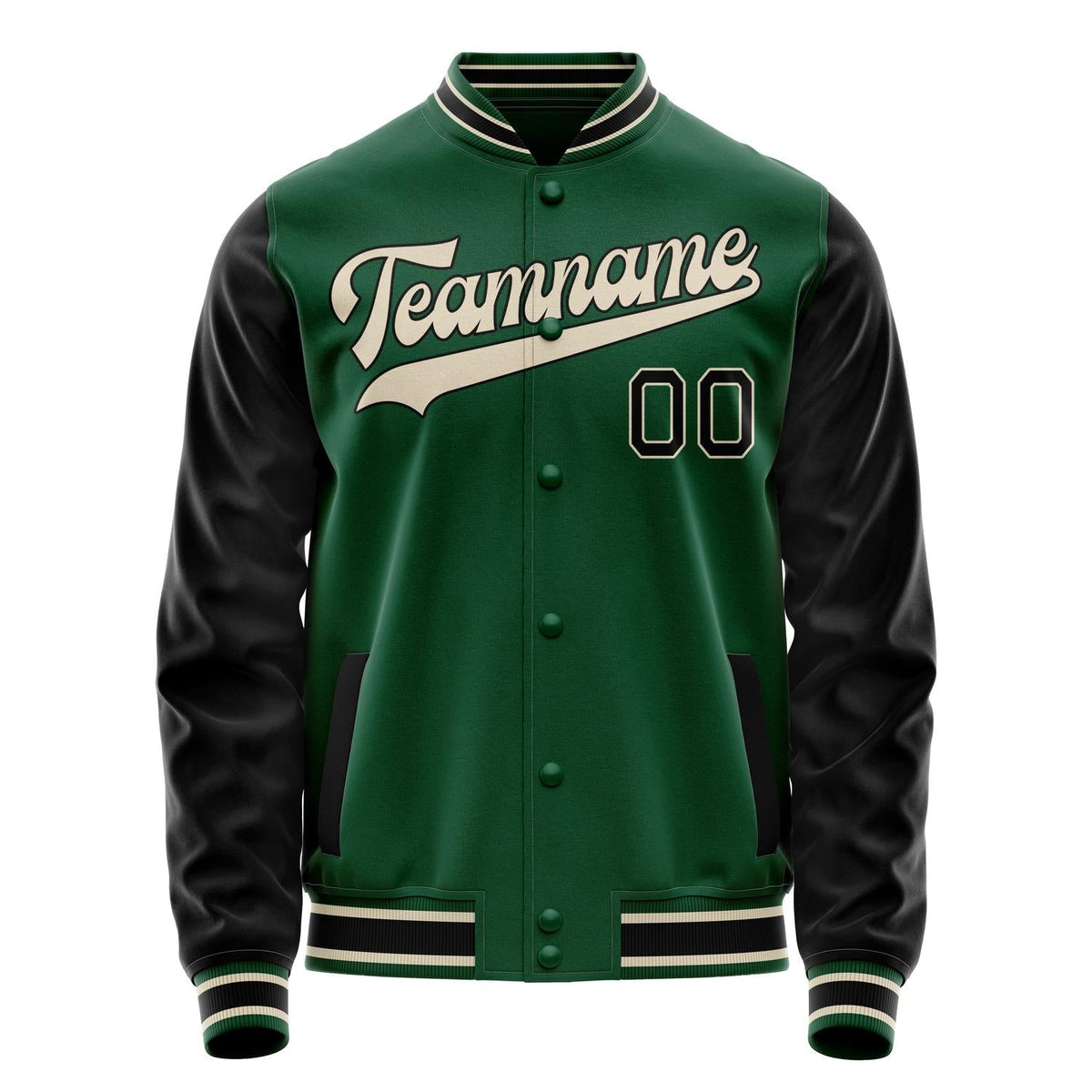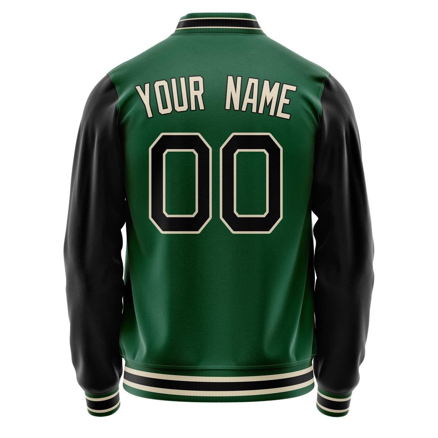 Custom Kelly-Green Black Solid Color Varsity Letterman Jacket