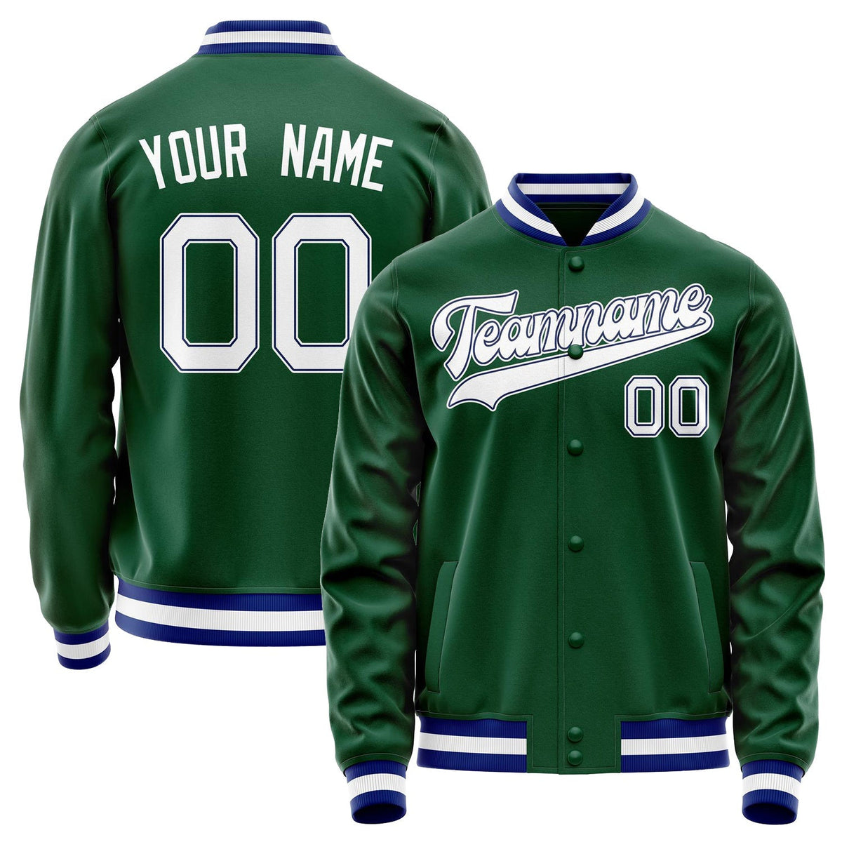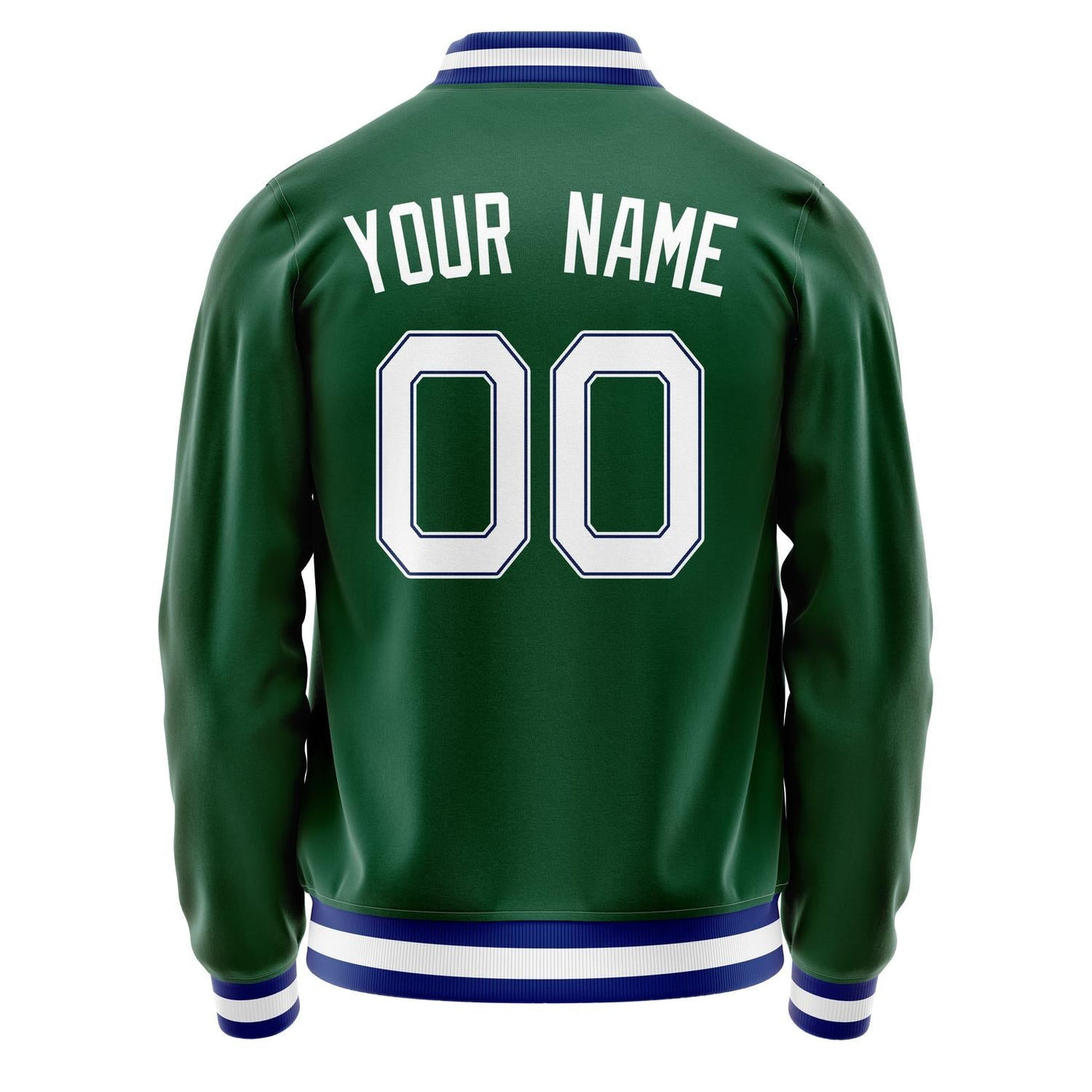 Custom Kelly-Green White Solid Color Varsity Letterman Jacket