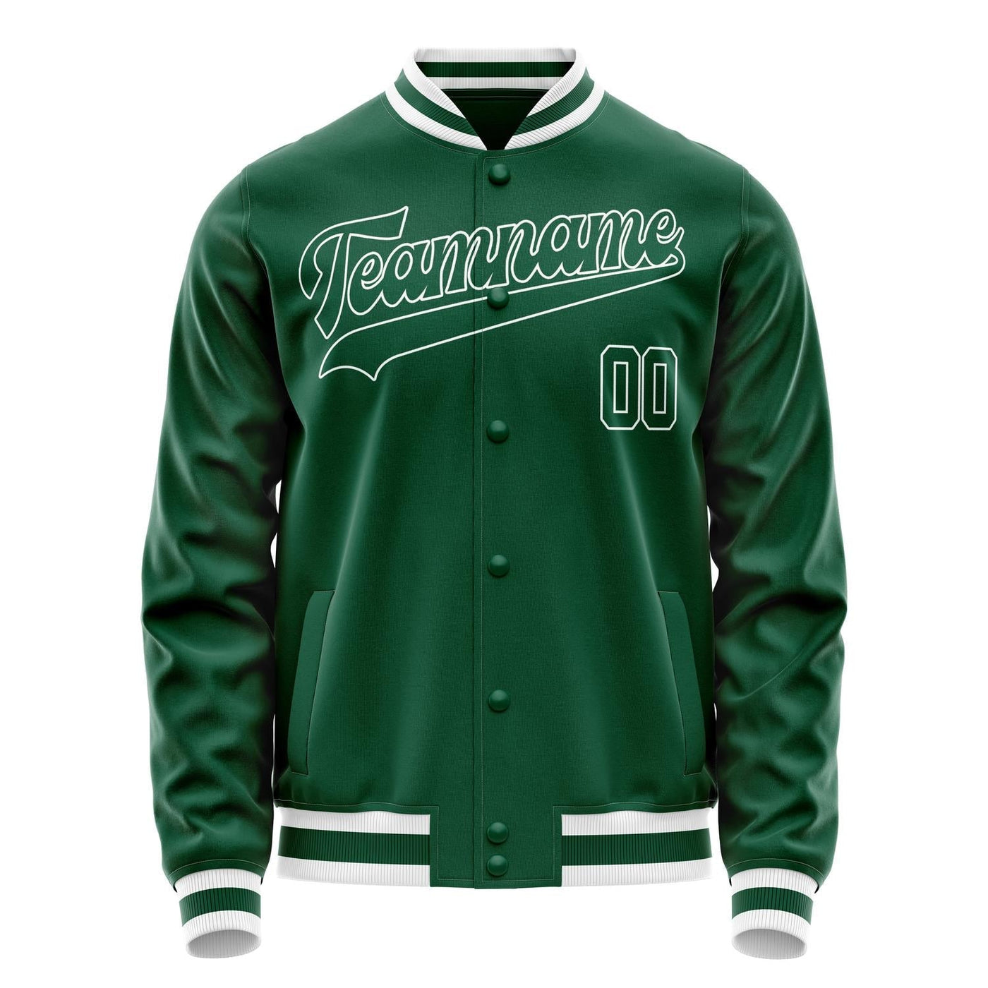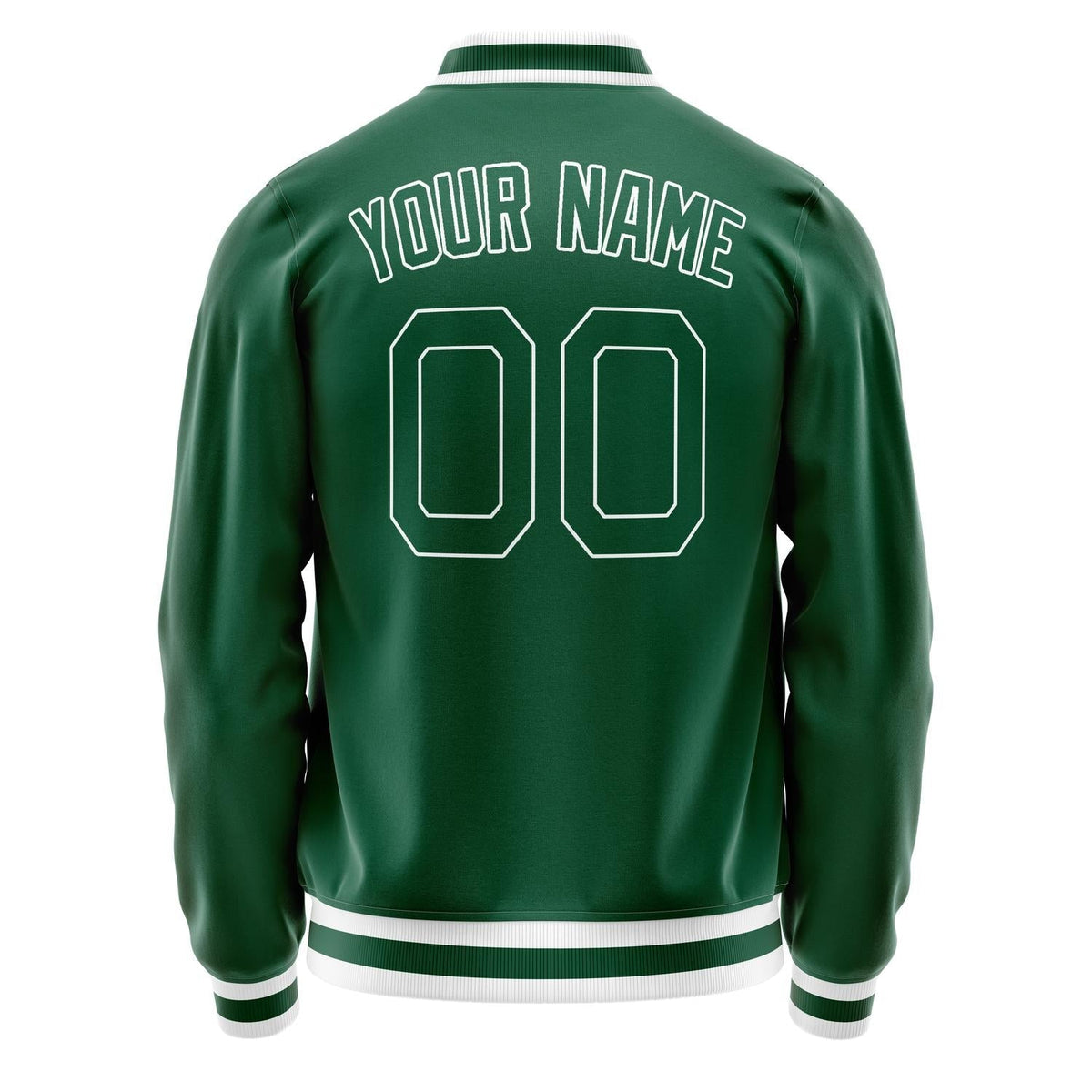 Custom Kelly-Green White Solid Color Varsity Letterman Jacket