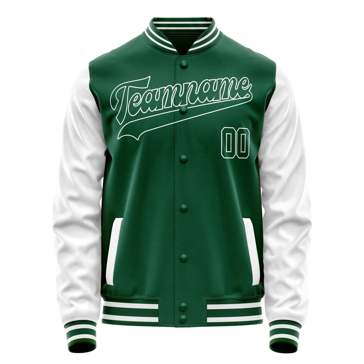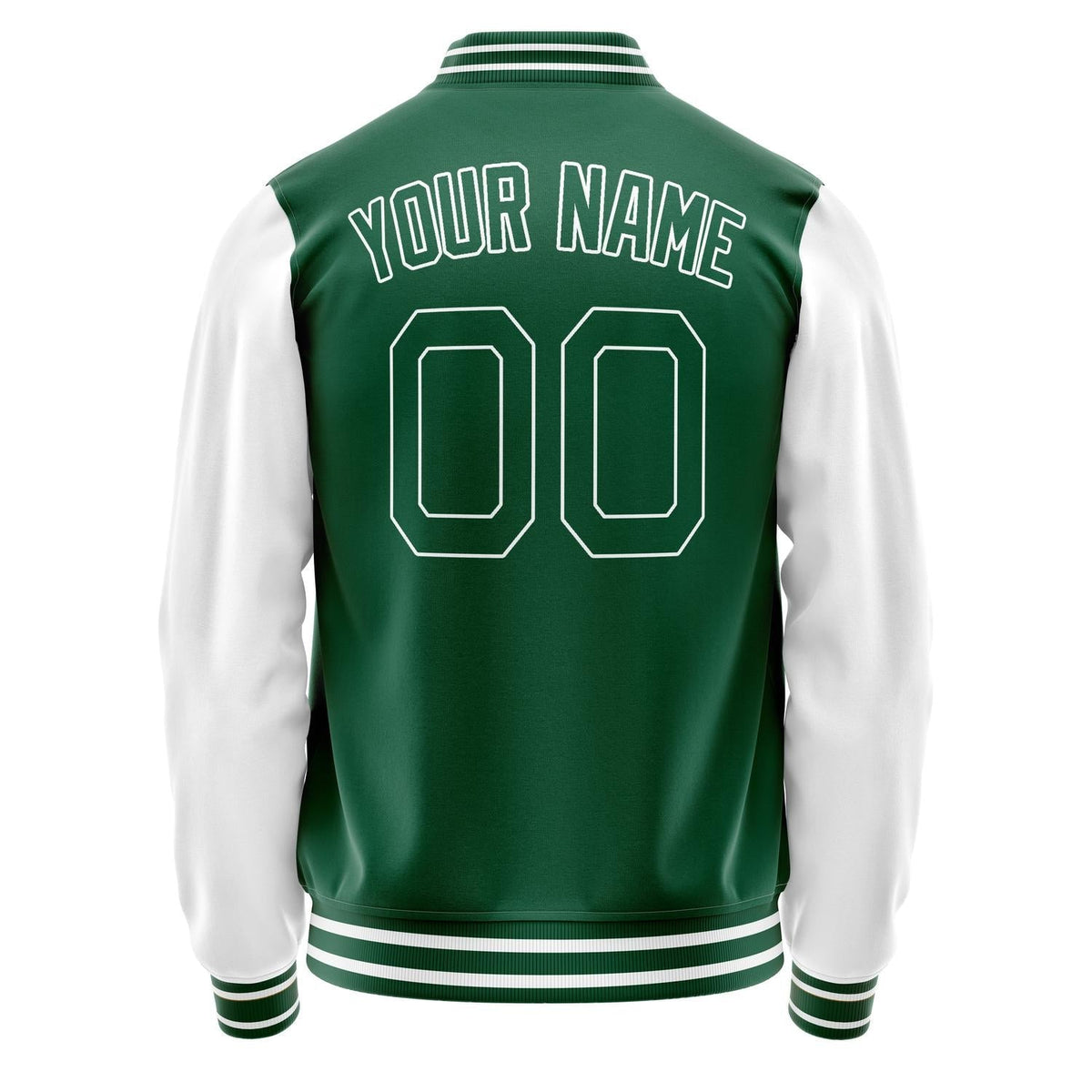 Custom Kelly-Green White Solid Color Varsity Letterman Jacket