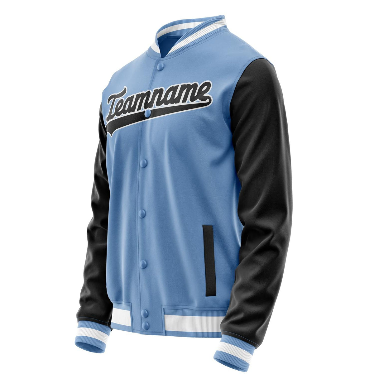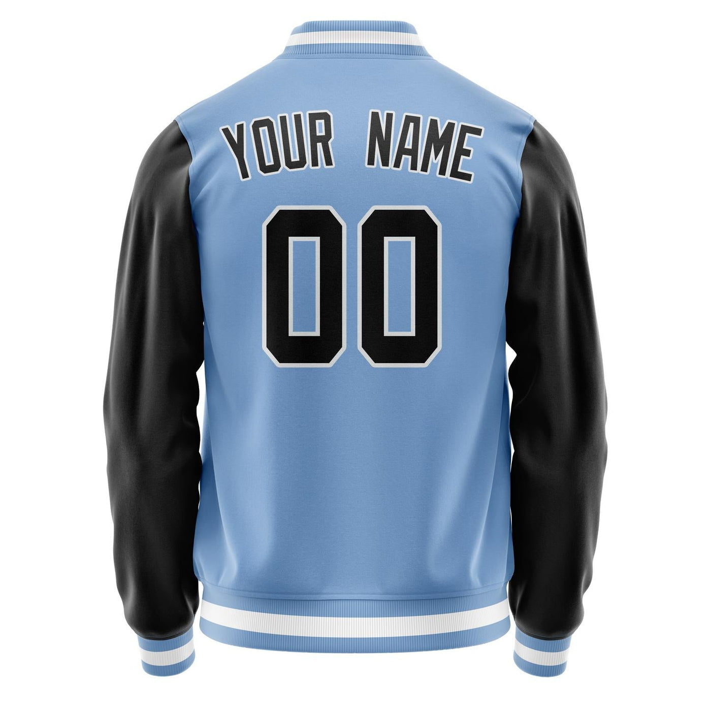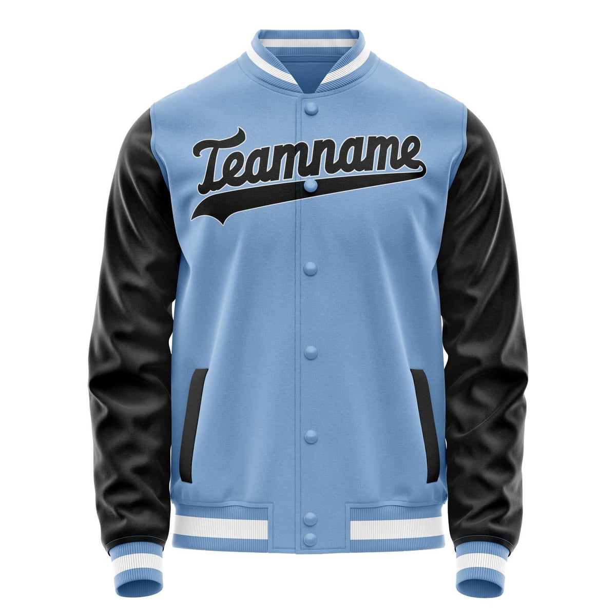 Custom Light-Blue Black Solid Color Varsity Letterman Jacket