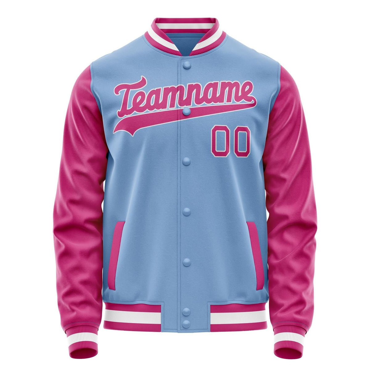 Custom Light-Blue Pink Solid Color Varsity Letterman Jacket