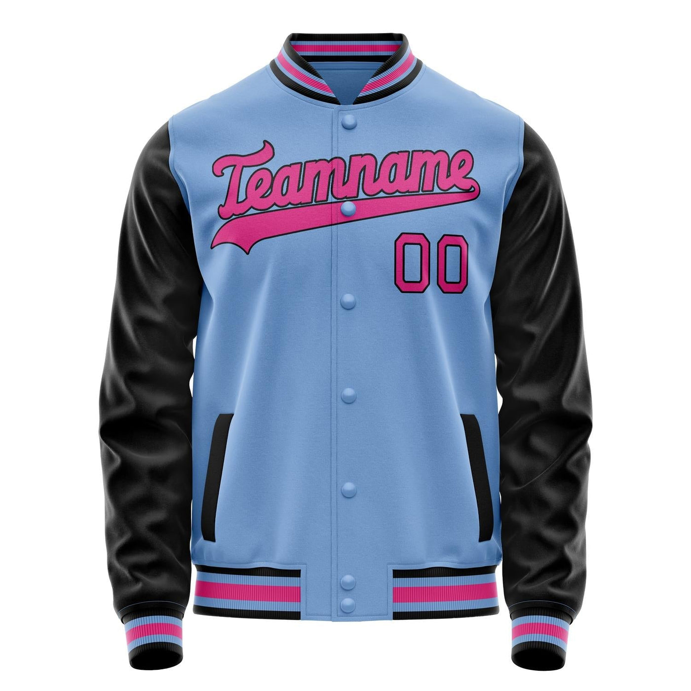 Custom Light-Blue Pink Solid Color Varsity Letterman Jacket