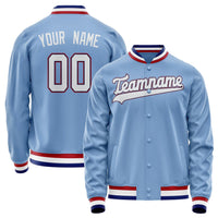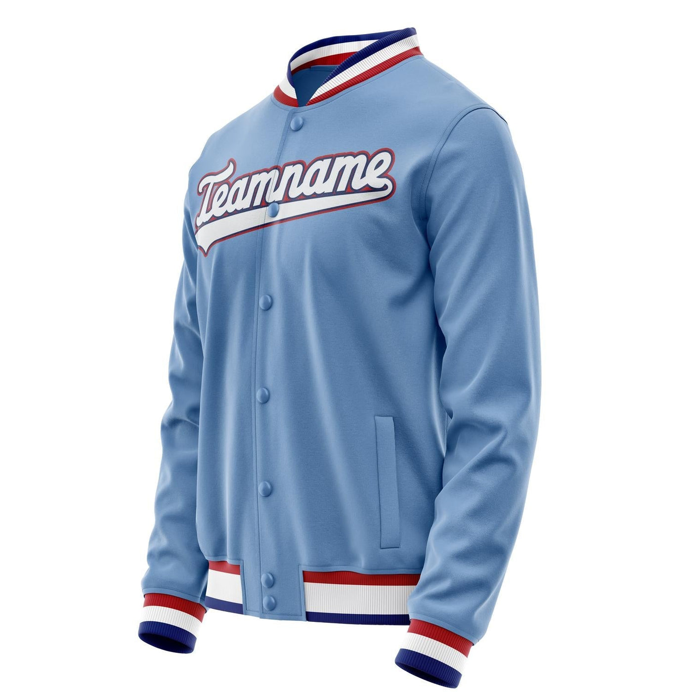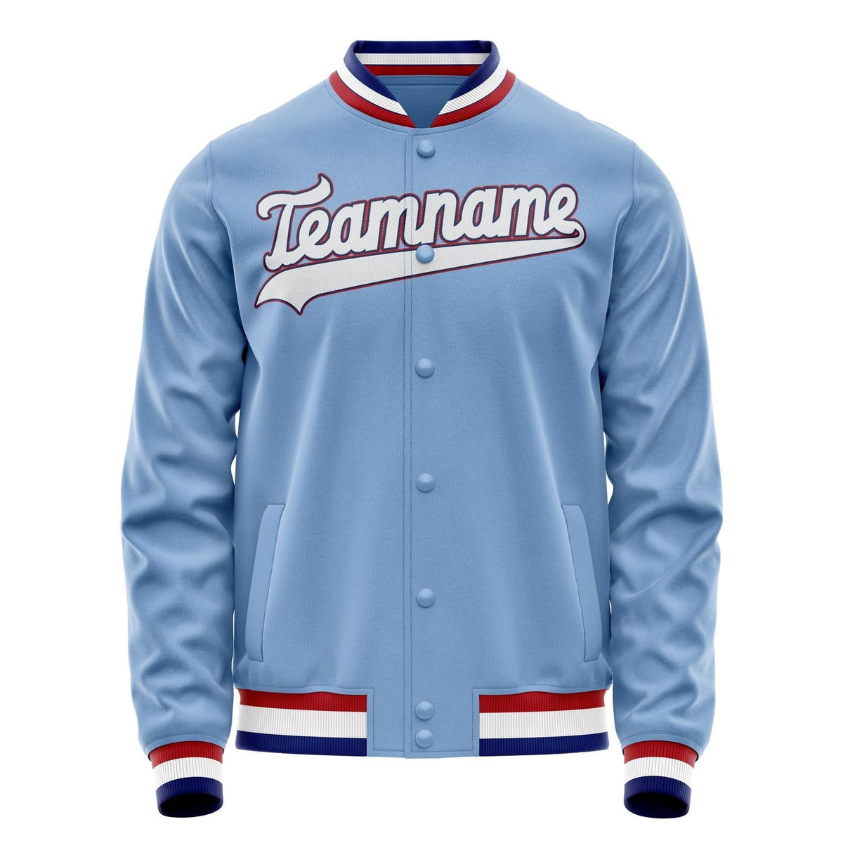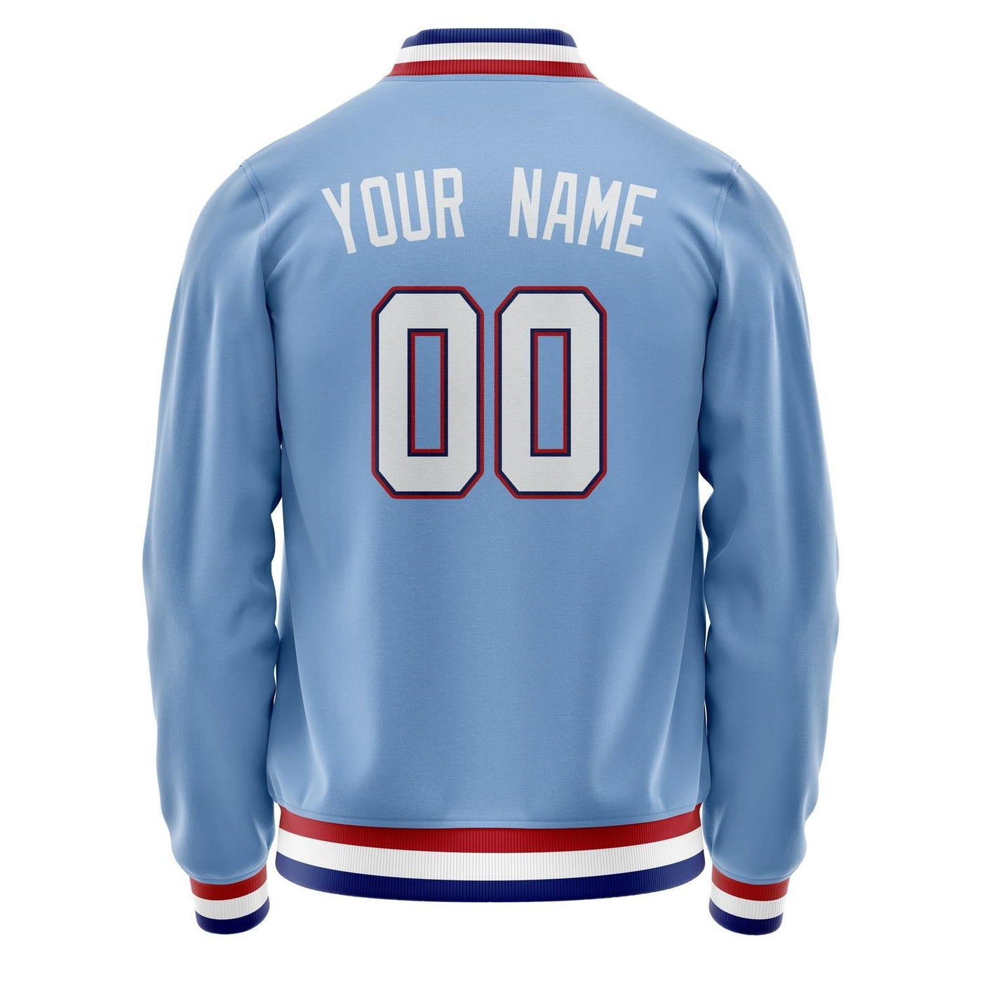 Custom Light-Blue White Solid Color Varsity Letterman Jacket
