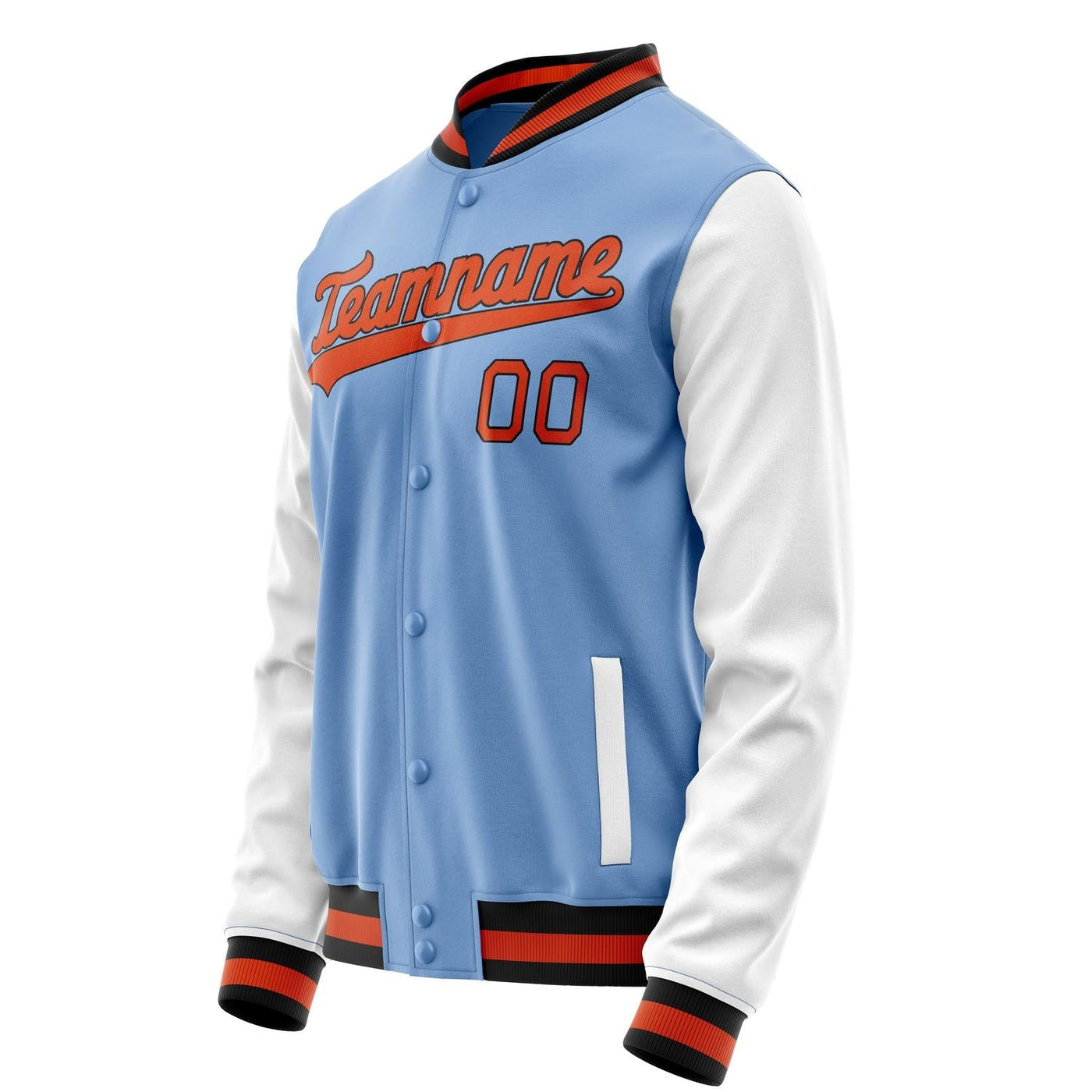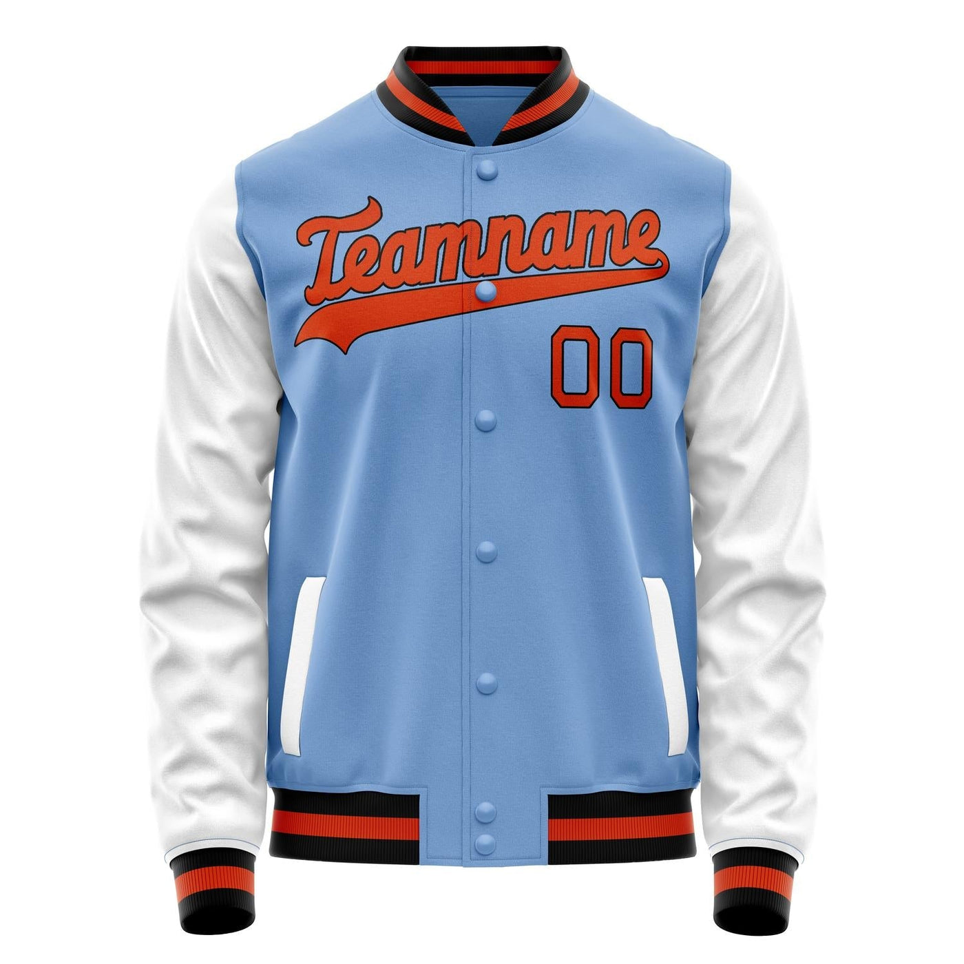 Custom Light-Blue White Solid Color Varsity Letterman Jacket