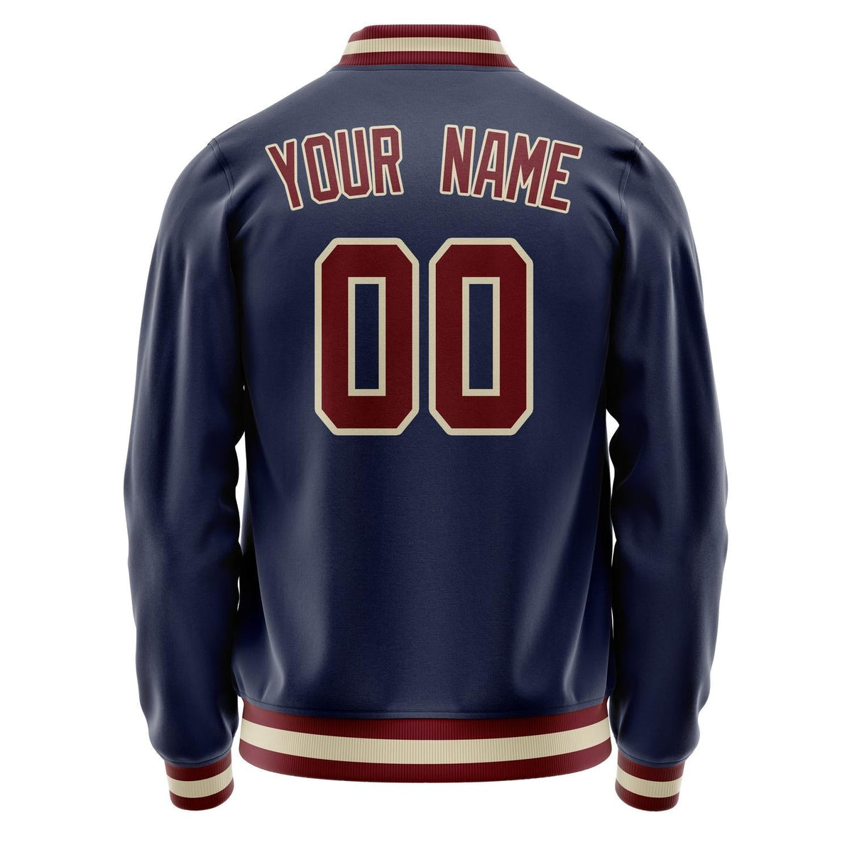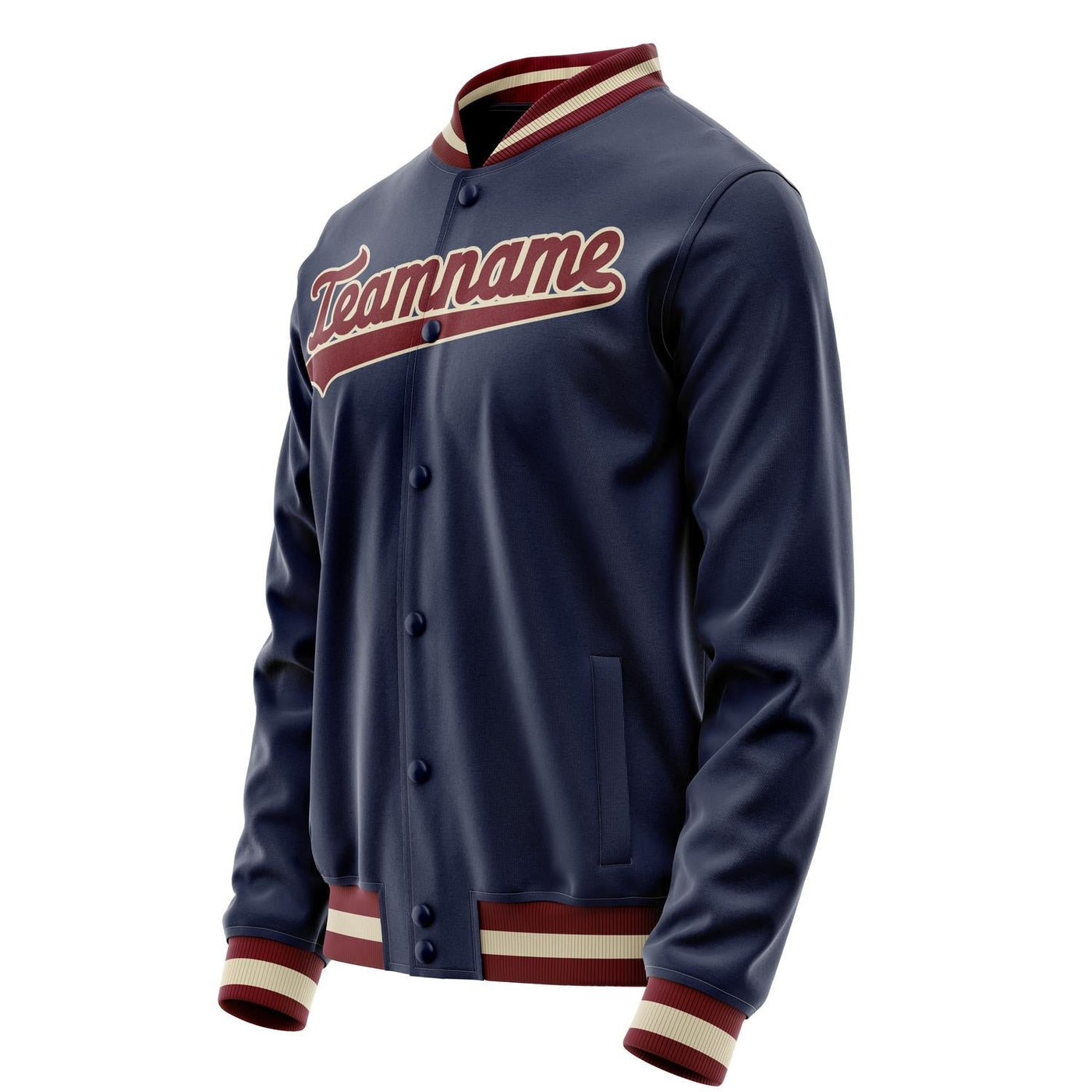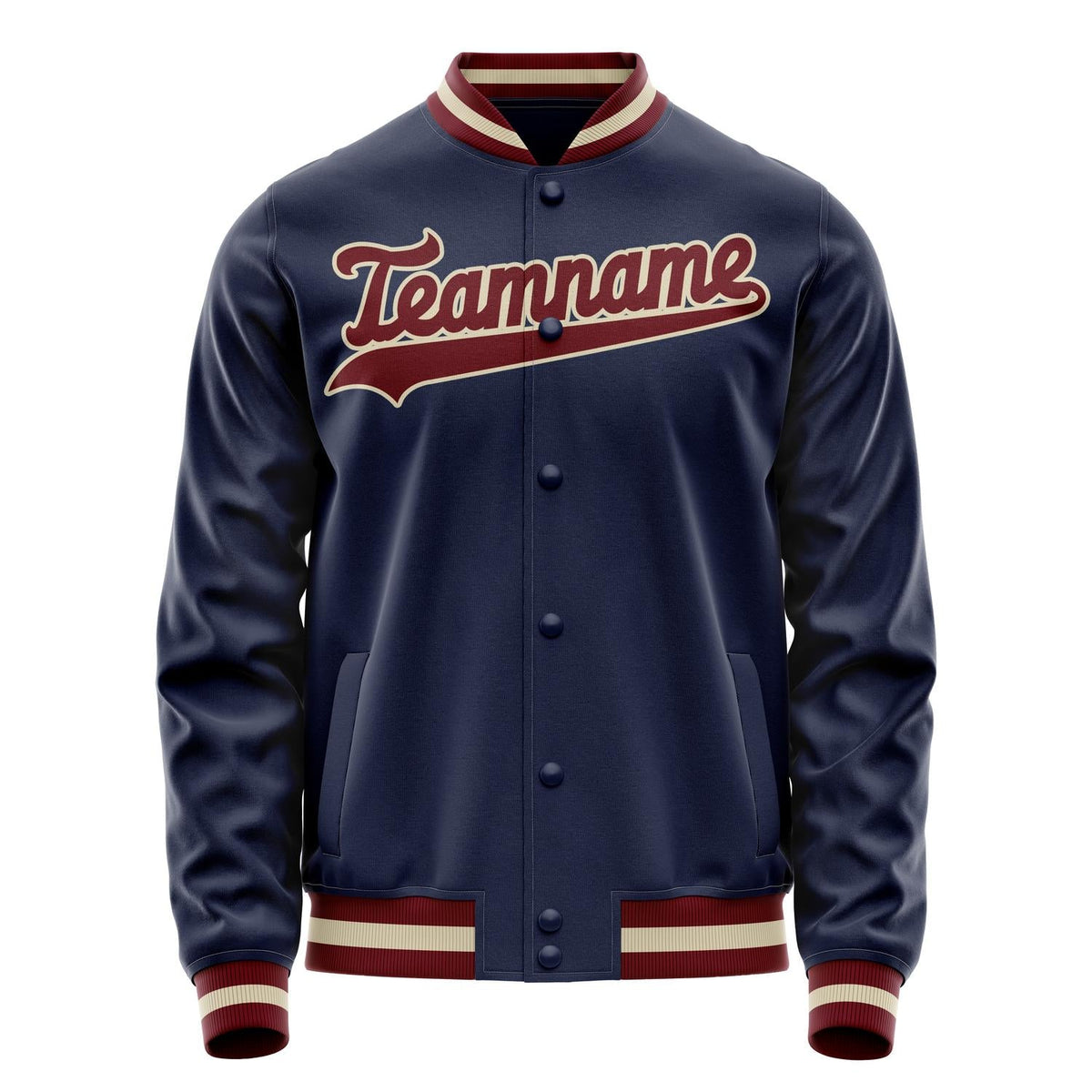 Custom Navy Crimson Solid Color Varsity Letterman Jacket