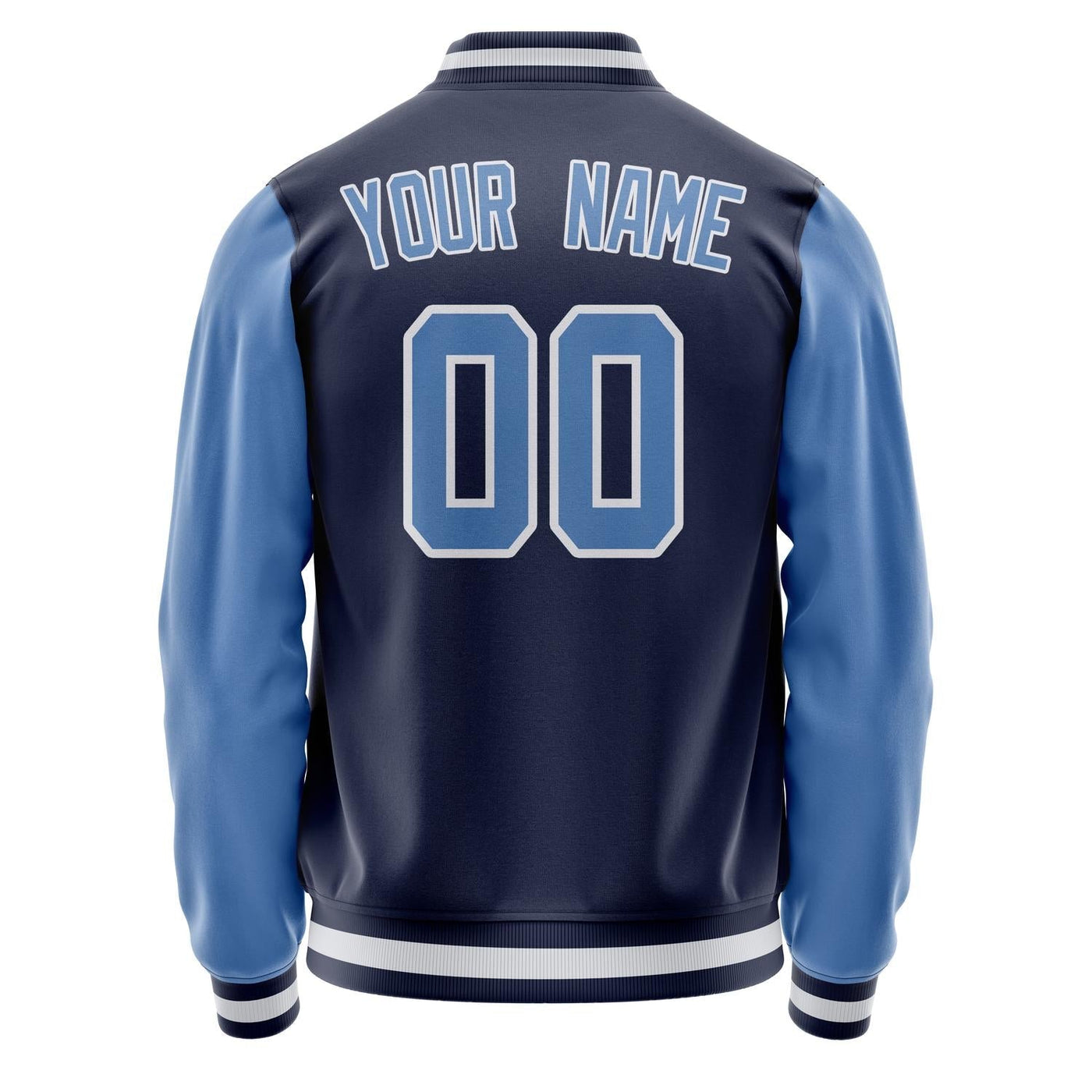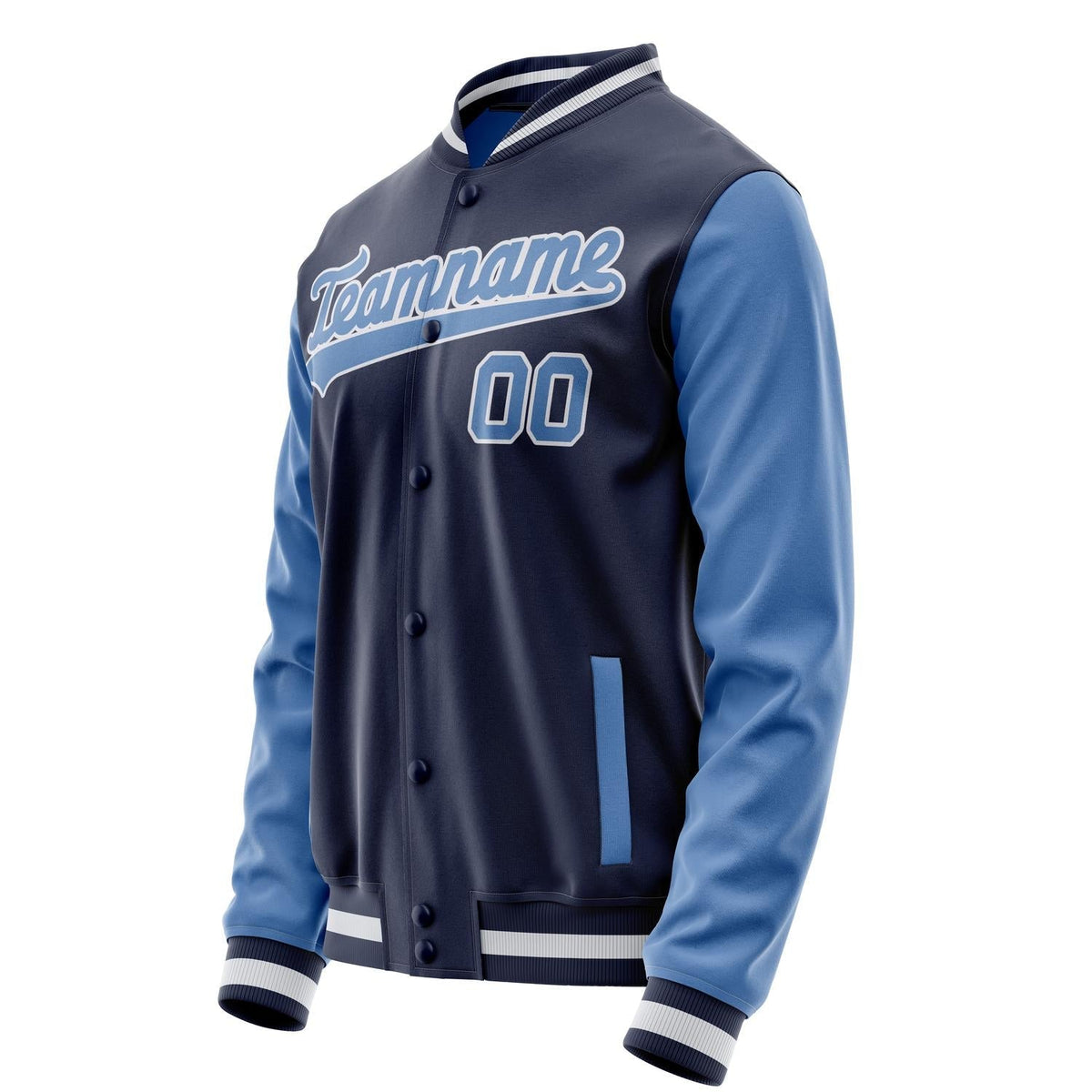 Custom Navy Light-Blue Solid Color Varsity Letterman Jacket