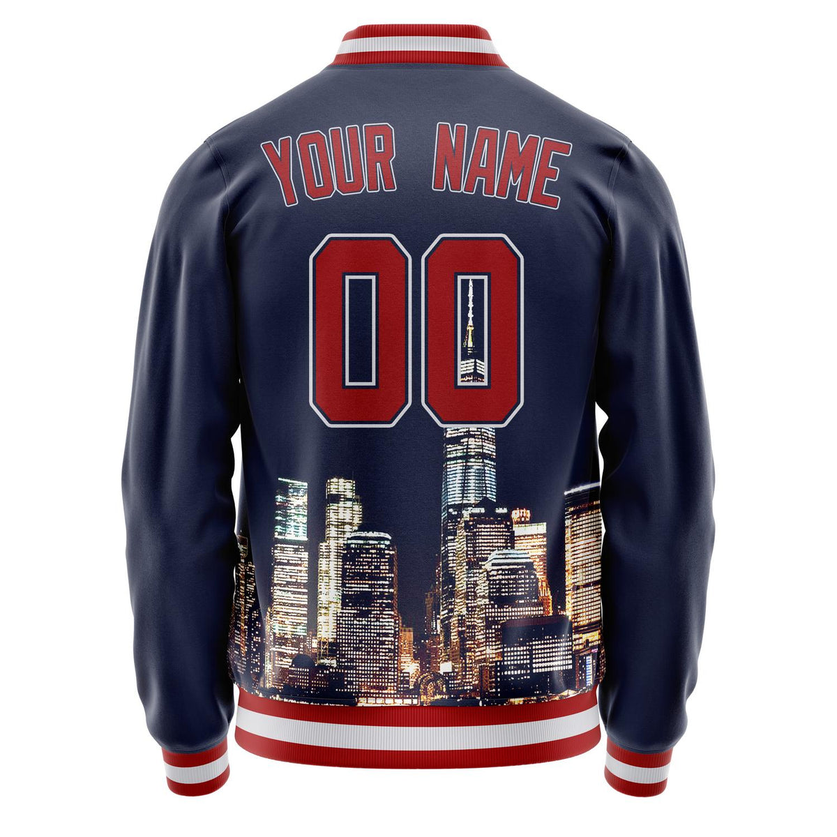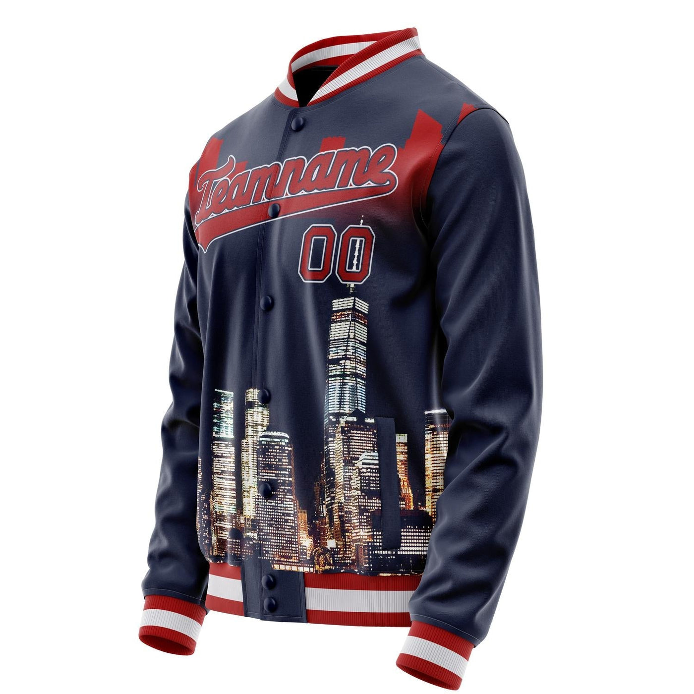 Custom Navy Red 3D Boston Massachusetts City Edition Varsity Letterman Jacket