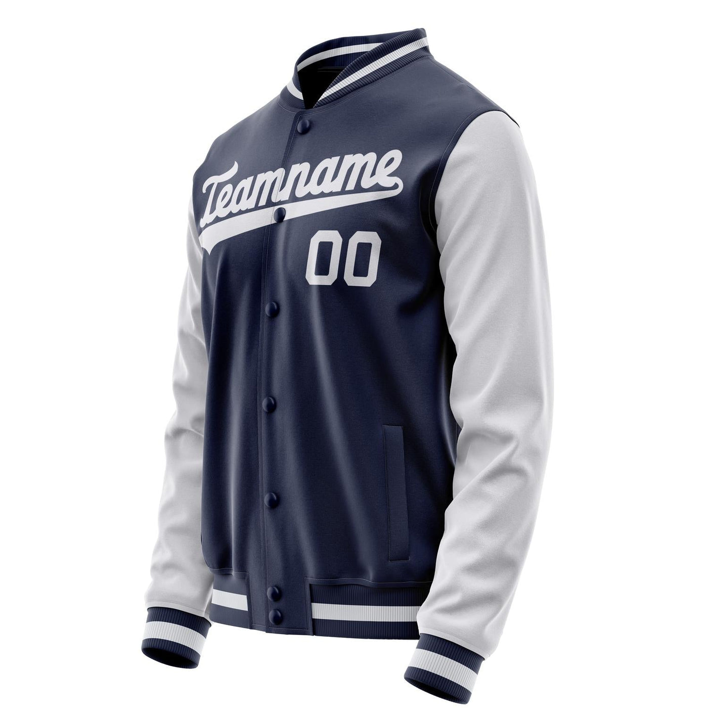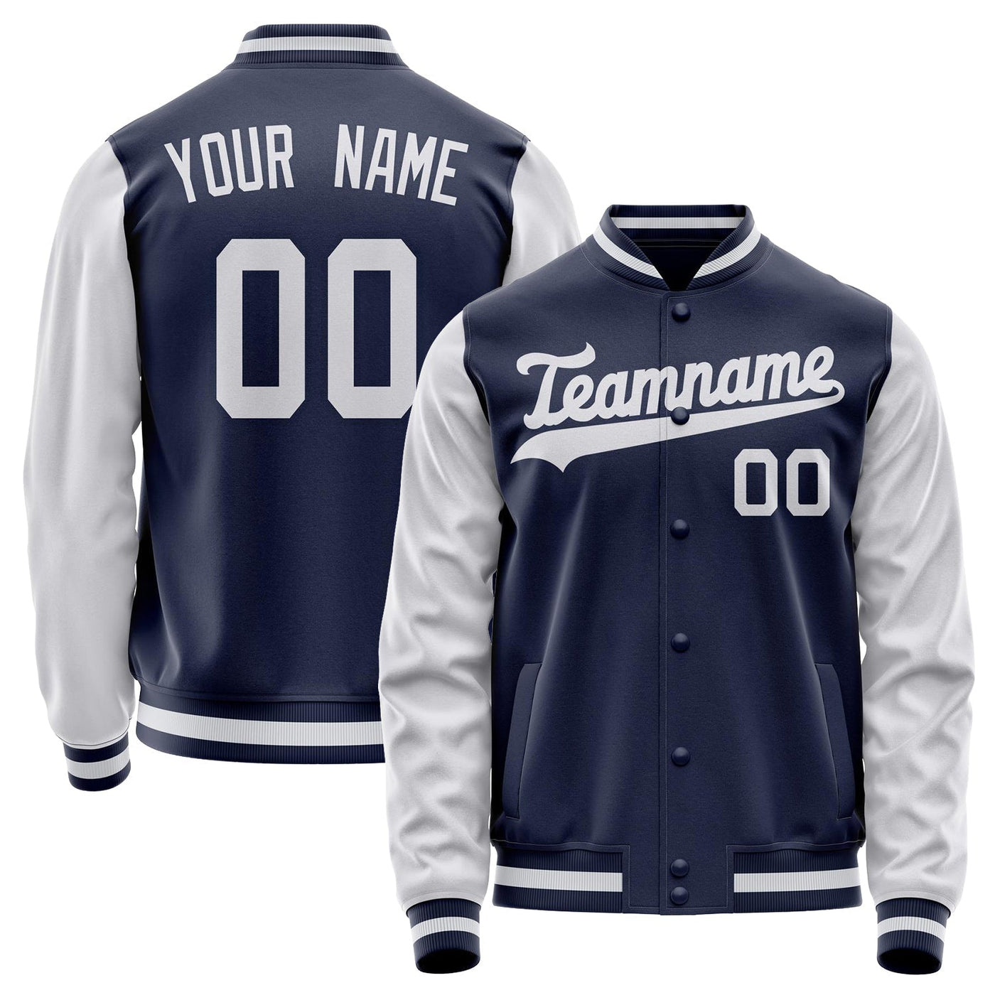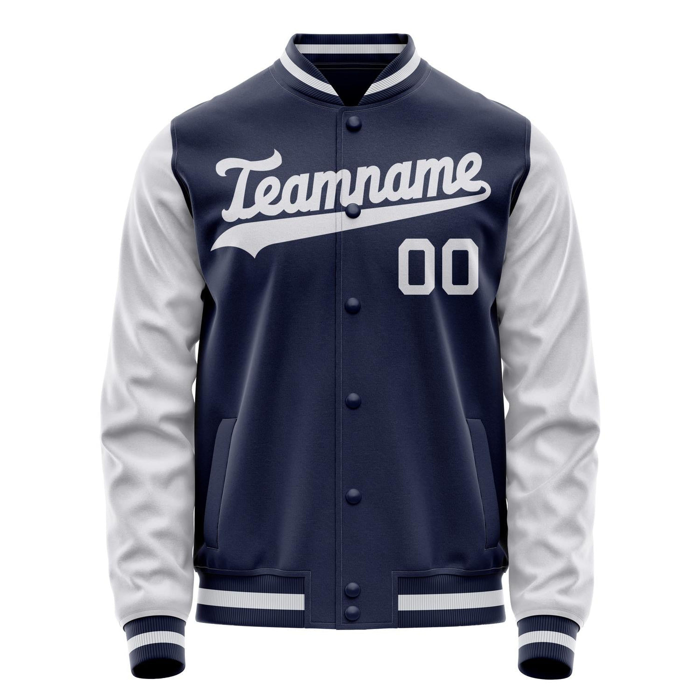 Custom Navy White Solid Color Varsity Letterman Jacket