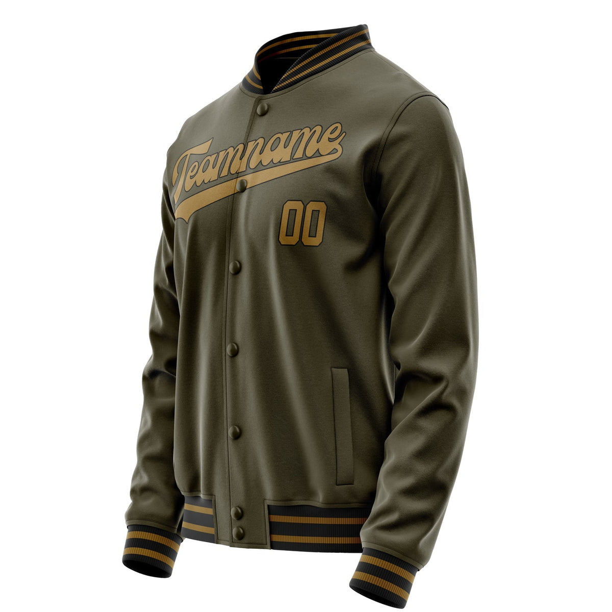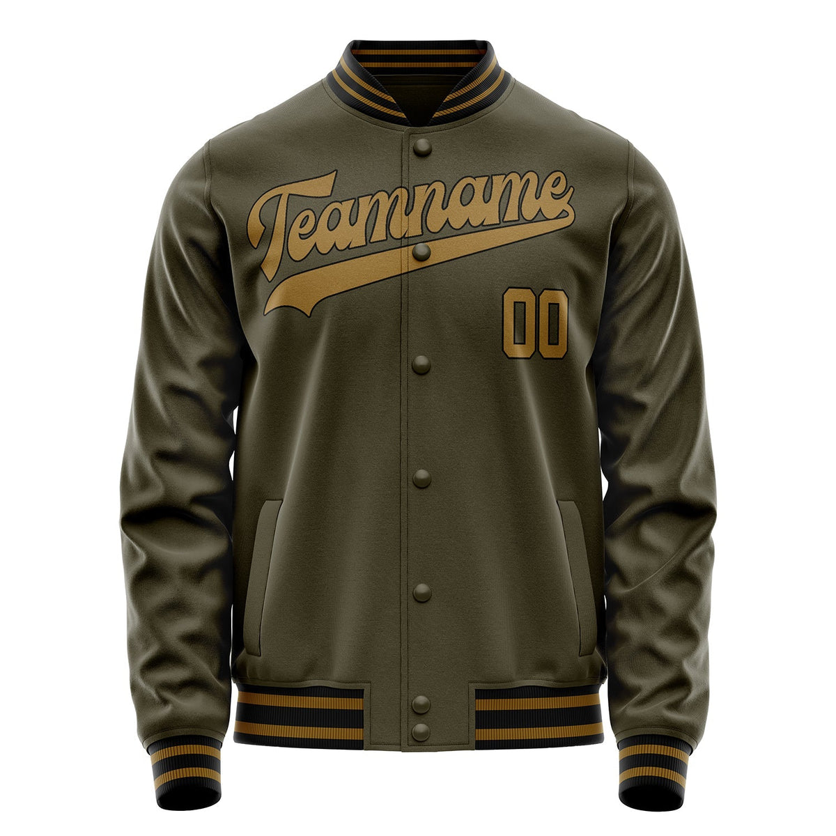 Custom Olive Brown Solid Color Varsity Letterman Jacket