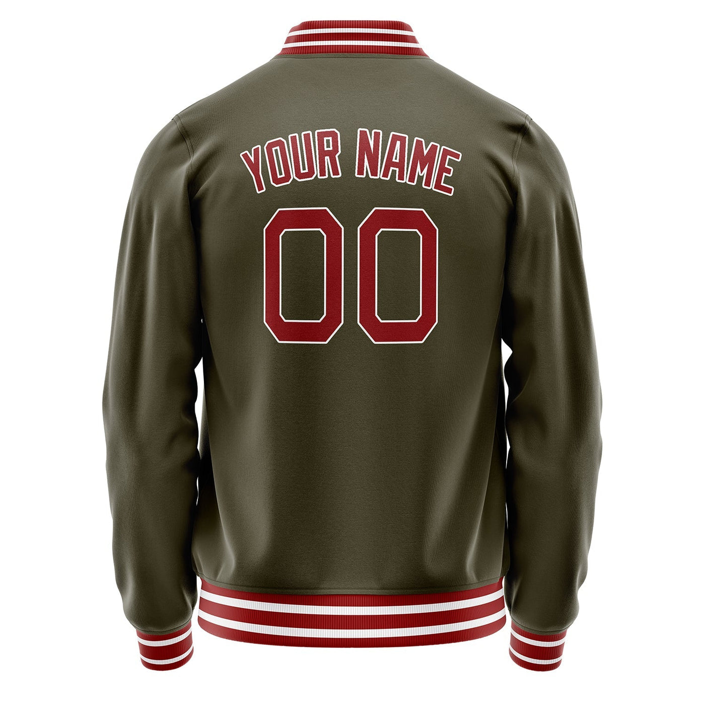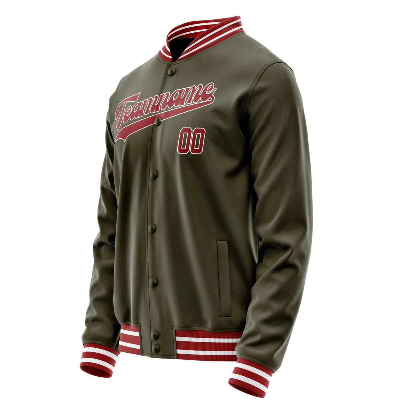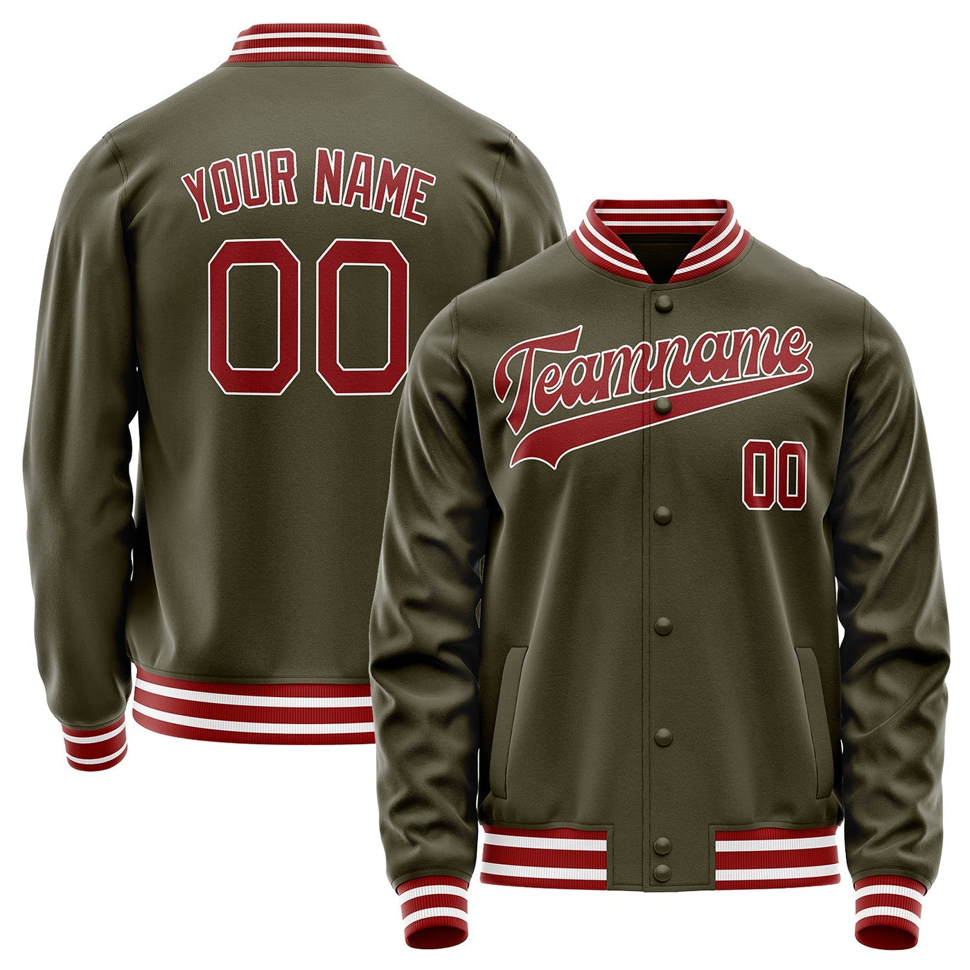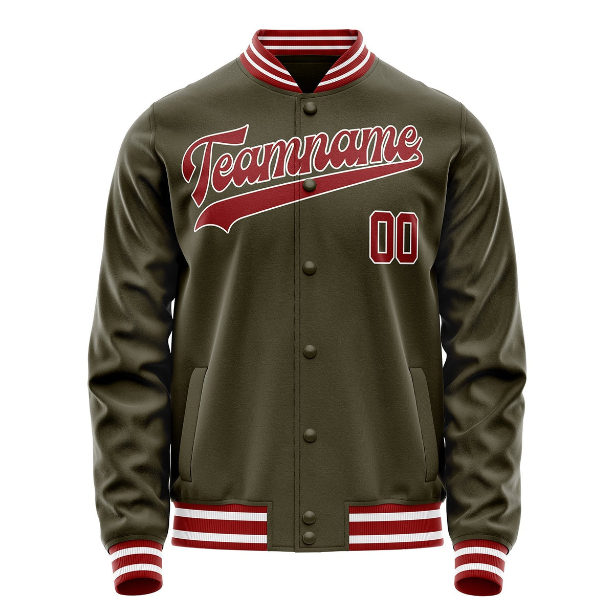 Custom Olive Red Solid Color Varsity Letterman Jacket