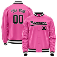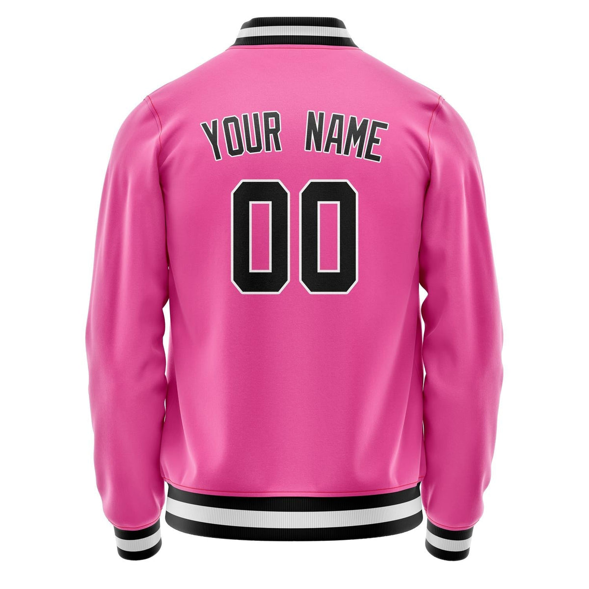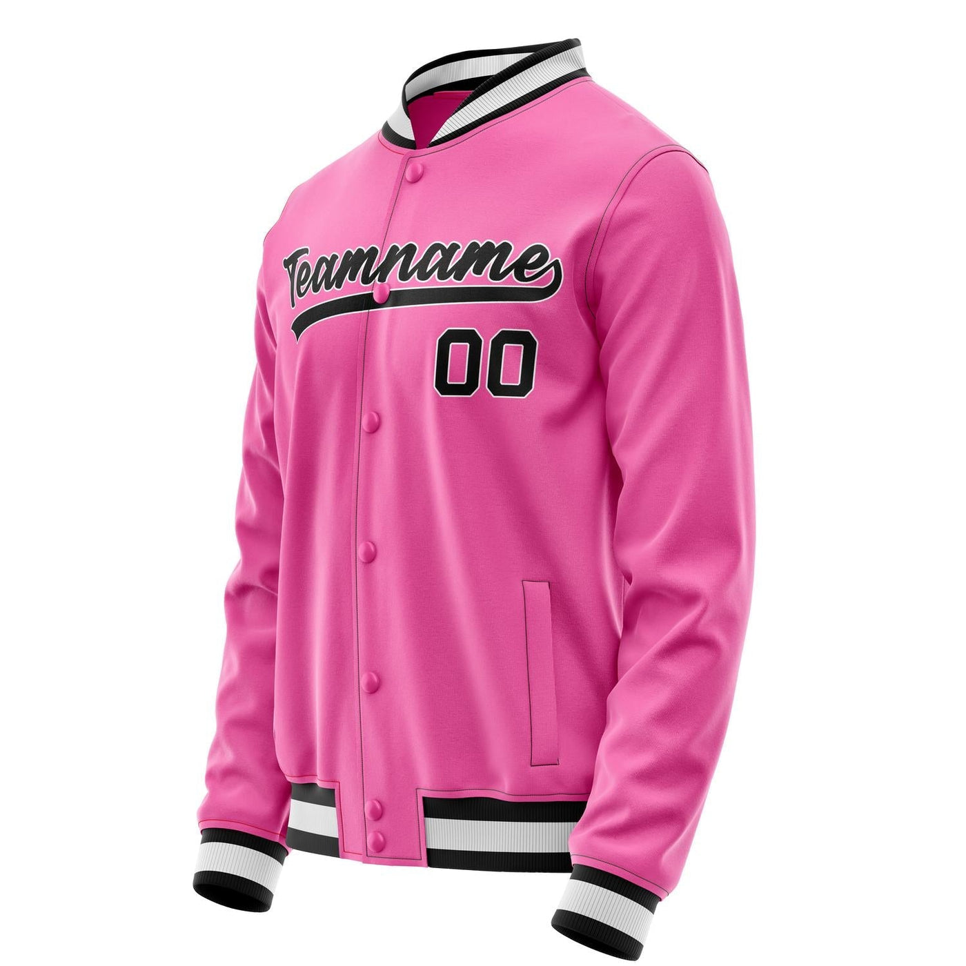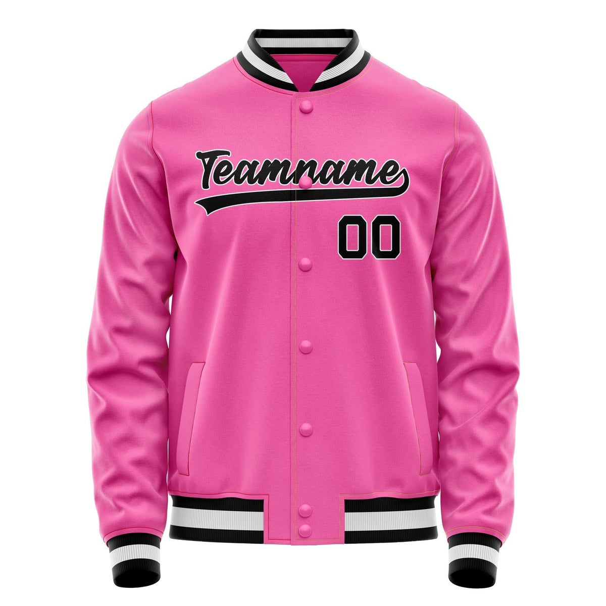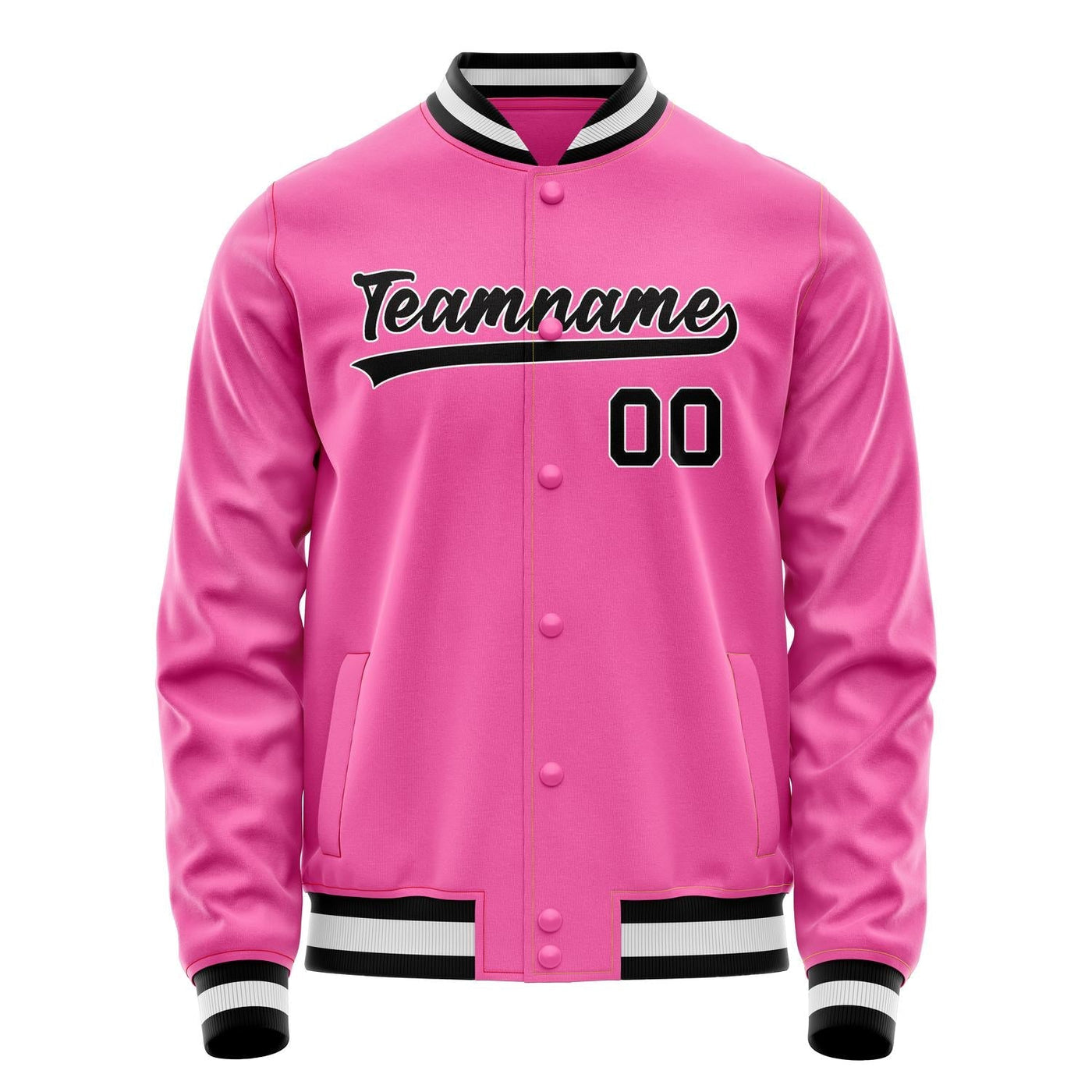 Custom Pink Black Solid Color Varsity Letterman Jacket