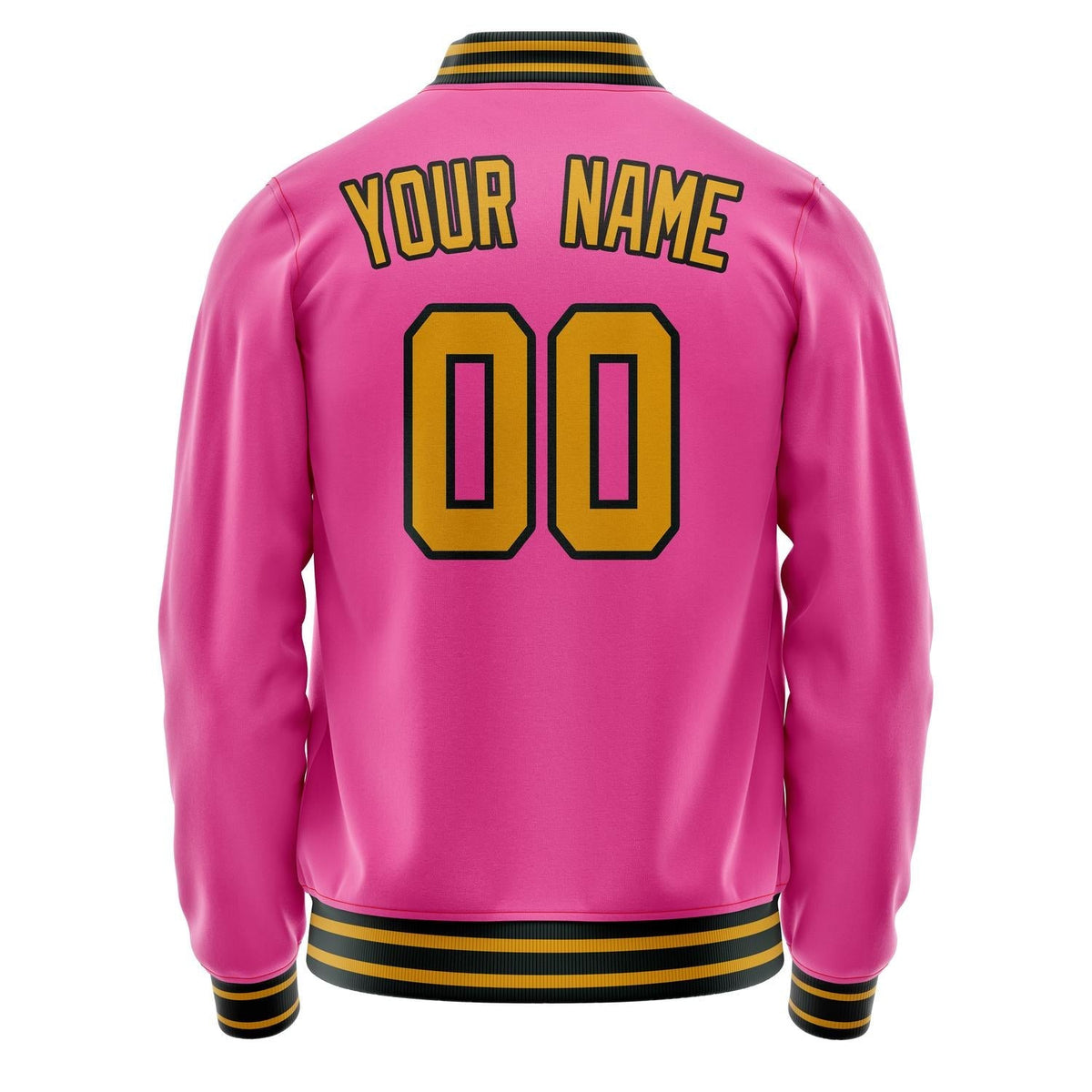 Custom Pink Old-Gold Solid Color Varsity Letterman Jacket