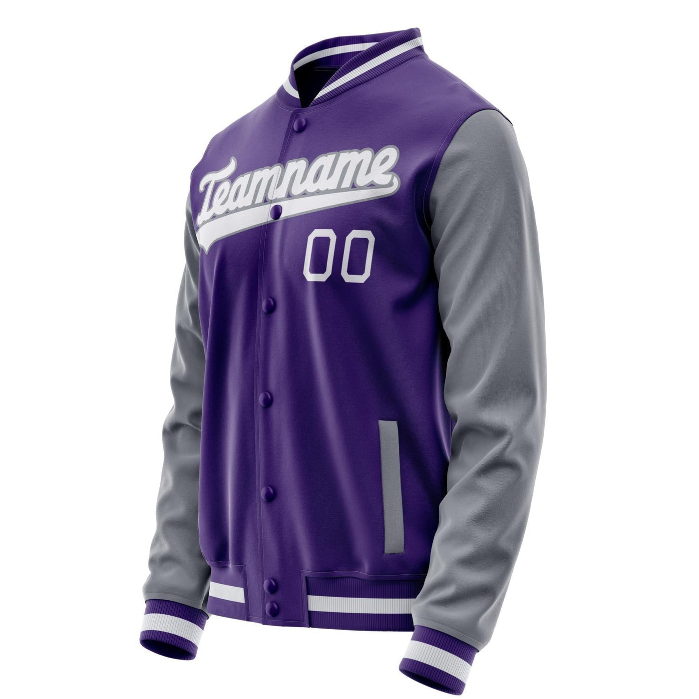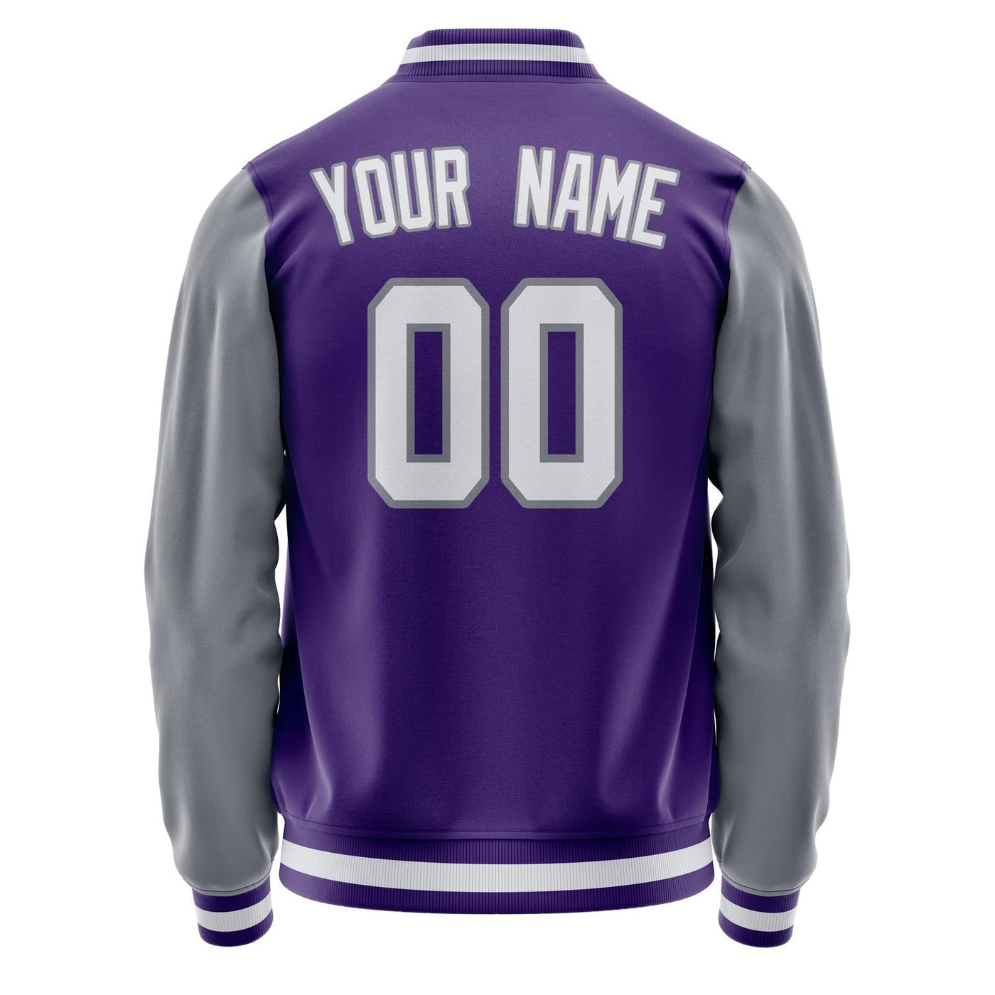 Custom Purple Gray Solid Color Varsity Letterman Jacket