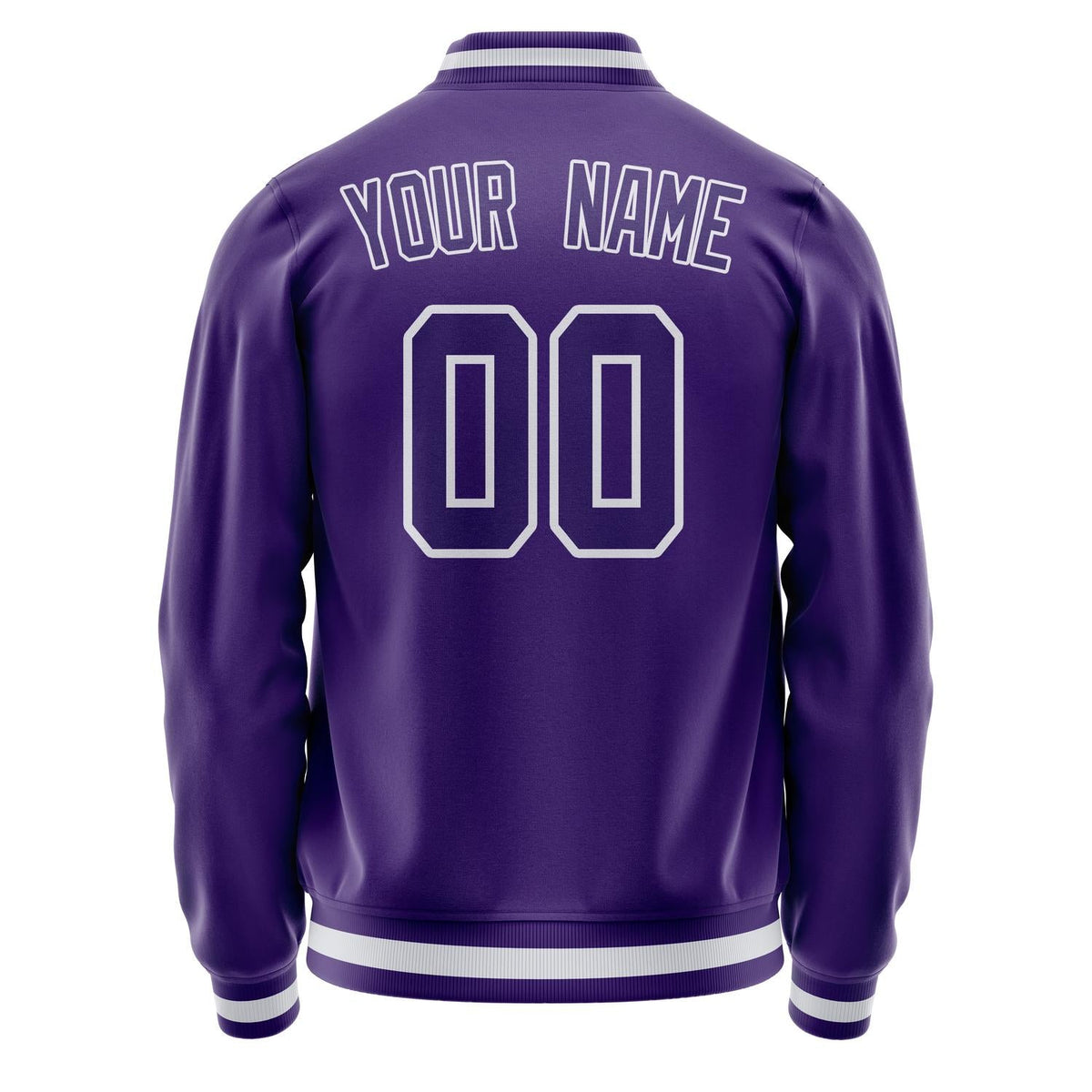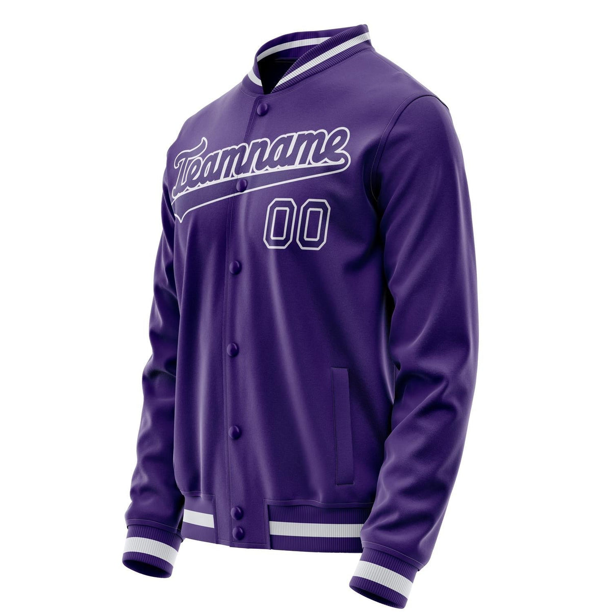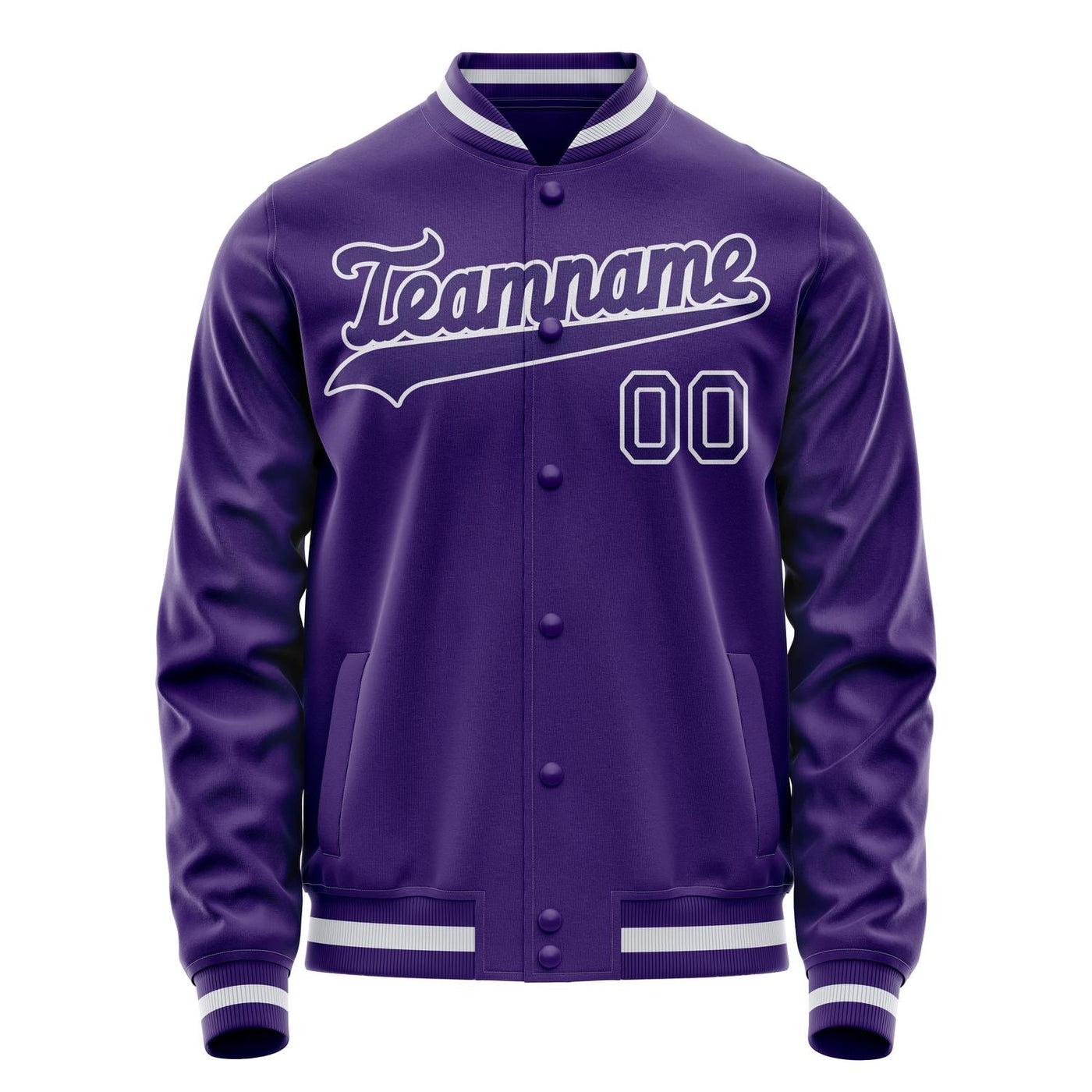 Custom Purple White Solid Color Varsity Letterman Jacket